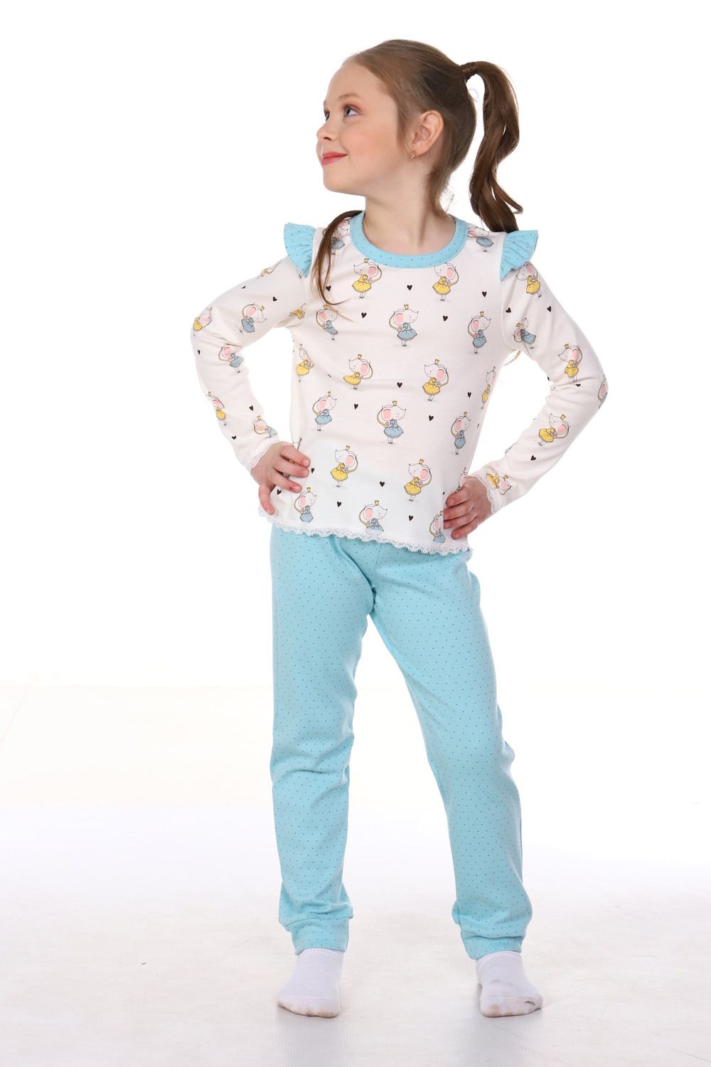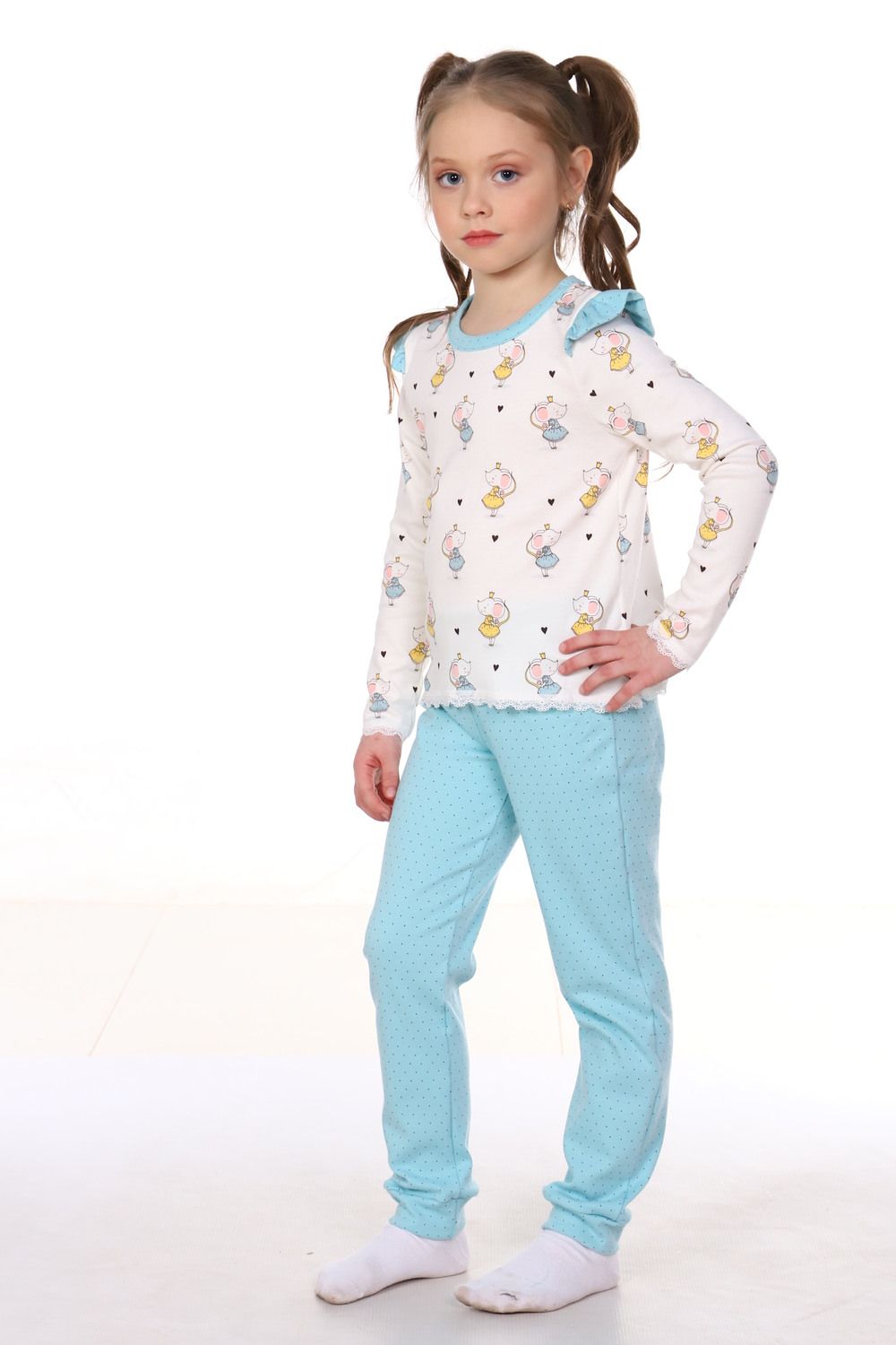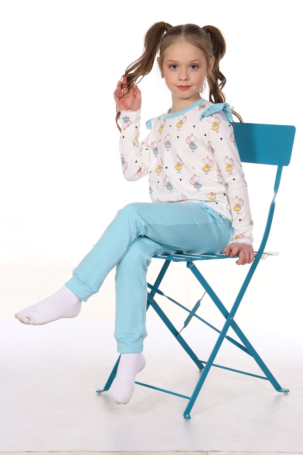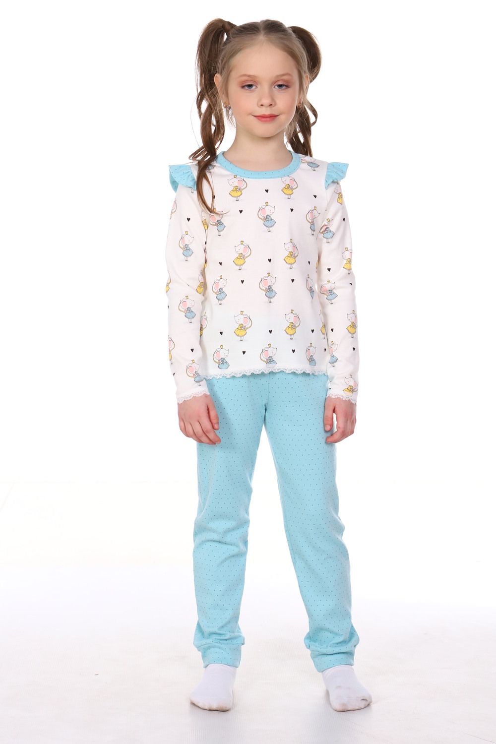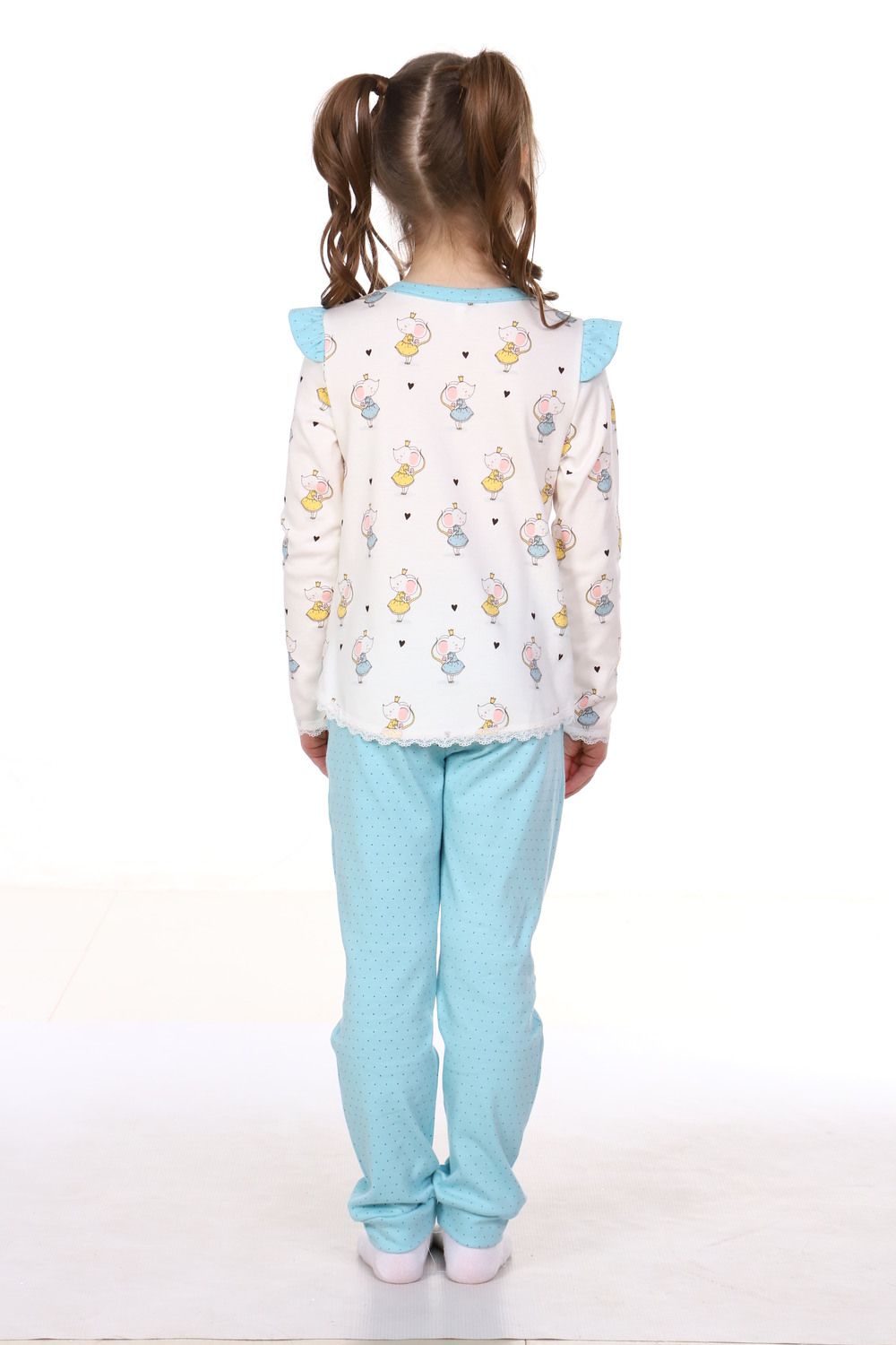 Комфортная пижама с длинным рукавом для девочки с милым принтом «Мышки», низ рукавов и изделия обрамлен кружевом. Спинка кофточки имеет фигурное удлинение. Брючки на мягкой манжете. Материал очень мягкий и в тоже время износостойкий, не скатывается и не вытягивается. Идеальный подарок на день рождения или 8 марта дочке, внучке.