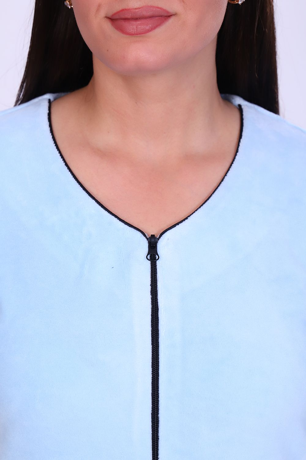 Халат женский, длиной ниже колена, свободного кроя. Рукав ниже локтя. Накладные карманы. Идеально подойдет на любую фигуру.