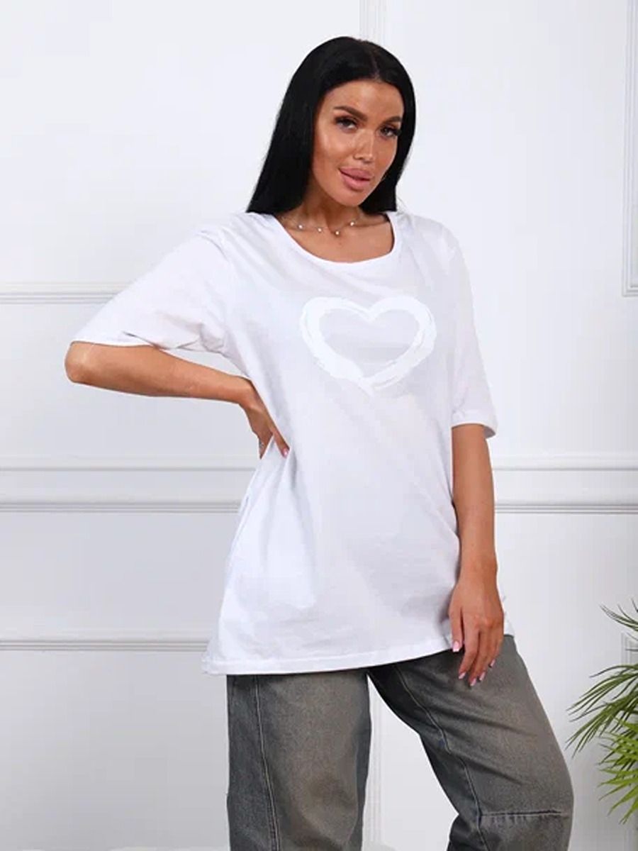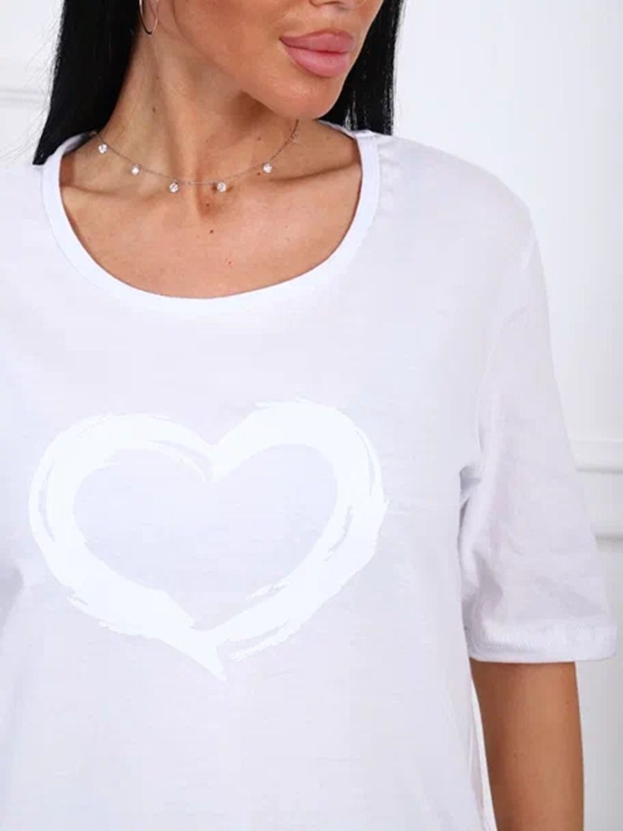 Футбола удлиненная с рисунком сердце и карманами, 785 - белый с белым сердцем