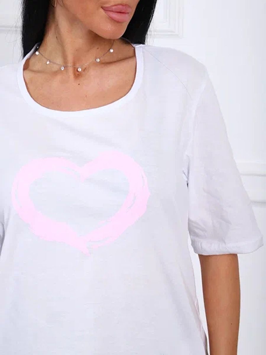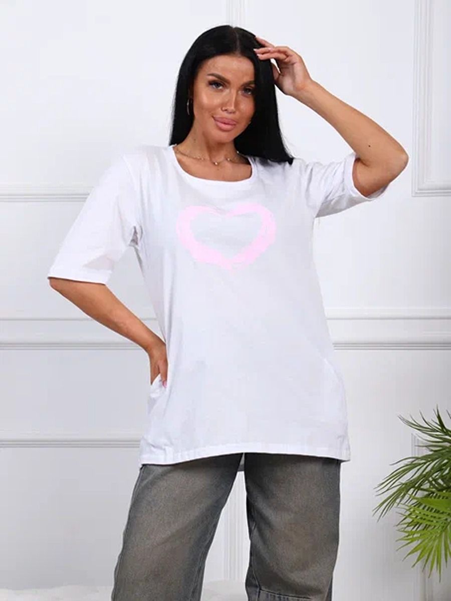 Футбола удлиненная с рисунком сердце и карманами, 785 - белый с розовым сердцем