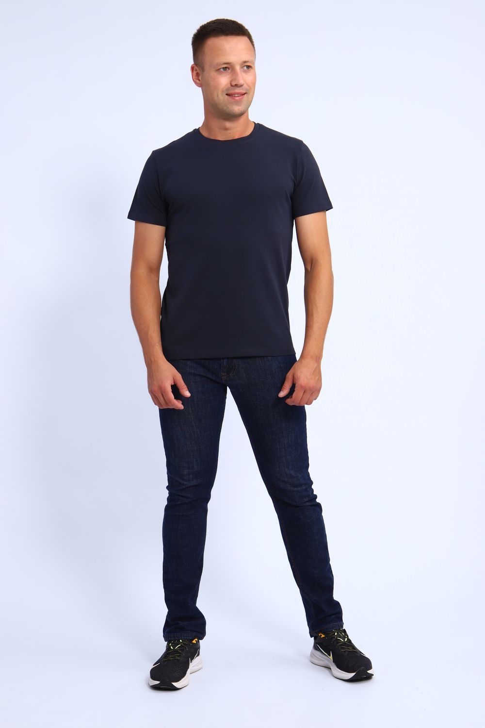 Футболка мужская однотонная базовая с коротким рукавом. Футболка подходит для отдыха, туризма и занятий спортом: фитнеса, йоги, бега и тренировок в зале. В ней можно отправиться на прогулку в город. Ее можно носить дома или надеть в школу и на работу в офис под пиджак.