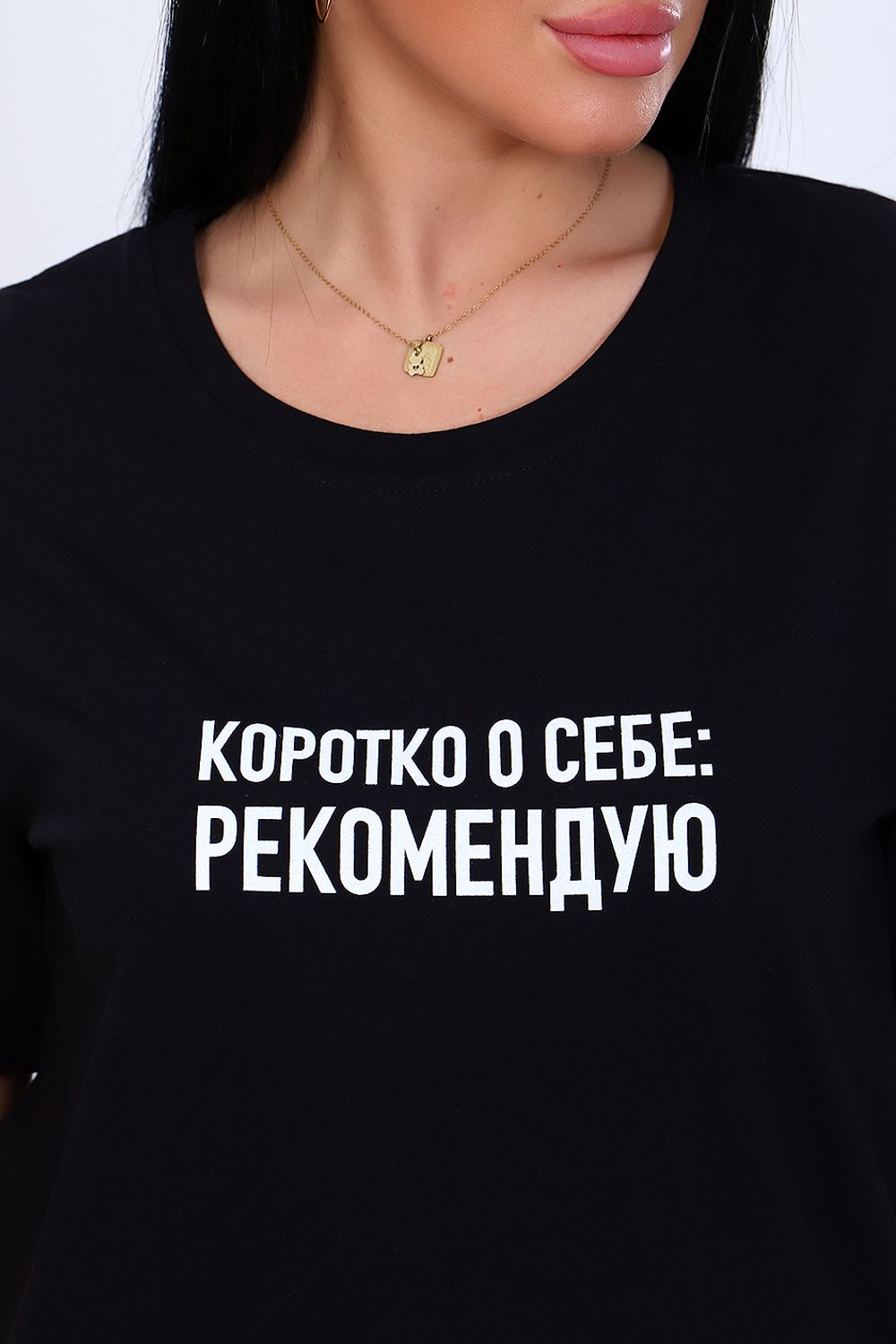 Женская футболка с интересным принтом "Коротко о себе: рекомендую" выполнена из 100% натурального хлопка. Качественная, стильная, необычная футболка. Футболка прямого кроя с оптимальной плотностью на любой сезон. Хорошо сидит на фигуре, комбинируются с любой повседневной одеждой. Подходит для занятий спортом, для дома, а также как подарок на праздник, день рождения, юбилей, 8 марта, новый год. Принт сохраняется после множества стирок, ткань приятна к телу.