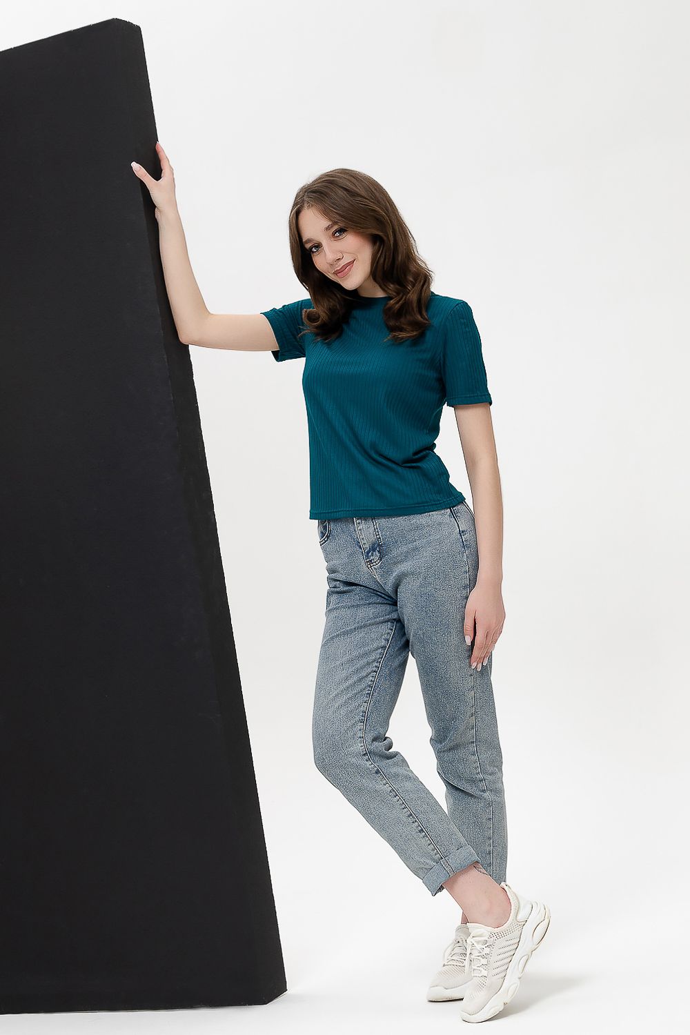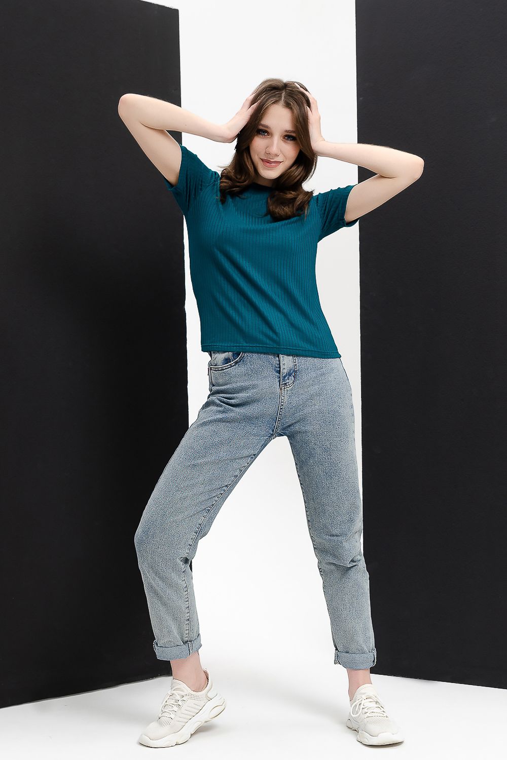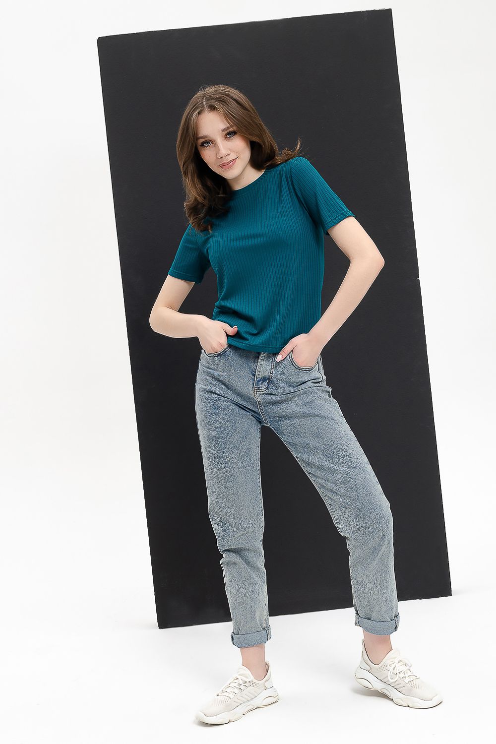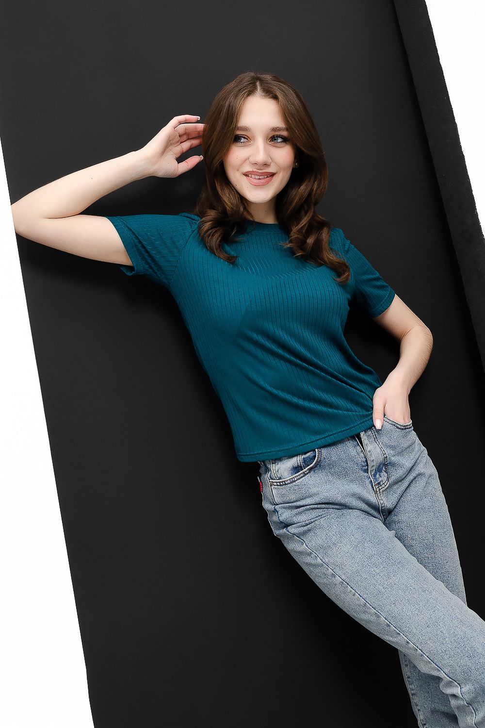 Невероятно комфортная, приятная к телу футболка удобной длины. Отлично сочетается с джинсами, брюками, юбкой, можно надеть под пиджак или жакет. Особая фактура ткани ввиде параллельных полос, называемая лапшой, придает изделию стильный вид. Широкий выбор расцветок позволит разнообразить ваш гардероб.