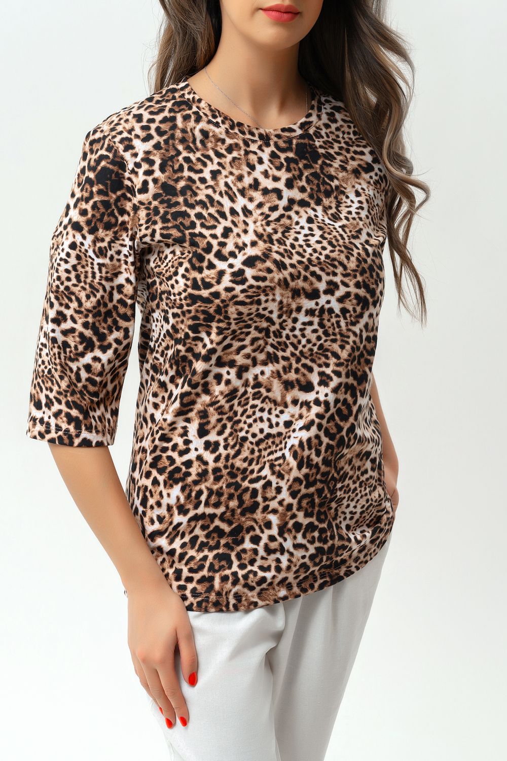 Футболка Raposa - идеальный выбор для стильных и модных женщин. Женская футболка обладает всеми необходимыми чертами, чтобы стать любимой в вашем гардеробе. Она выполнена из 100% хлопка, что делает ее максимально комфортной в носке. Одним из ключевых преимуществ является ее универсальность. Благодаря своему прекрасному качеству, она будет выглядеть привлекательно и стильно в любой ситуации. Вырез горловины в этой модели округлый, что делает футболку еще более элегантной и женственной. Она идеально подчеркнет вашу нежность и изящность. Рукава имеют длину 3/4, что добавляет ей особой изюминки и придает образу легкость и элегантность. Яркий и красочный леопардовый принт сделает ваш образ неповторимым. Благодаря футболке с принтом вы будете выделяться из толпы и привлекать восторженные взгляды окружающих. Модель станет прекрасным выбором для подростков, идеально подойдет для активного образа жизни, обеспечивая максимальный комфорт и свободу движений. Универсальная футболка – идеальный выбор для современных и модных женщин, сочетает в себе стильный дизайн и превосходное качество материала. Закажите ее прямо сейчас и наслаждайтесь комфортом и стилем каждый день. Будьте уверены, эта базовая футболка сделает ваш образ неповторимым и привлекательным.