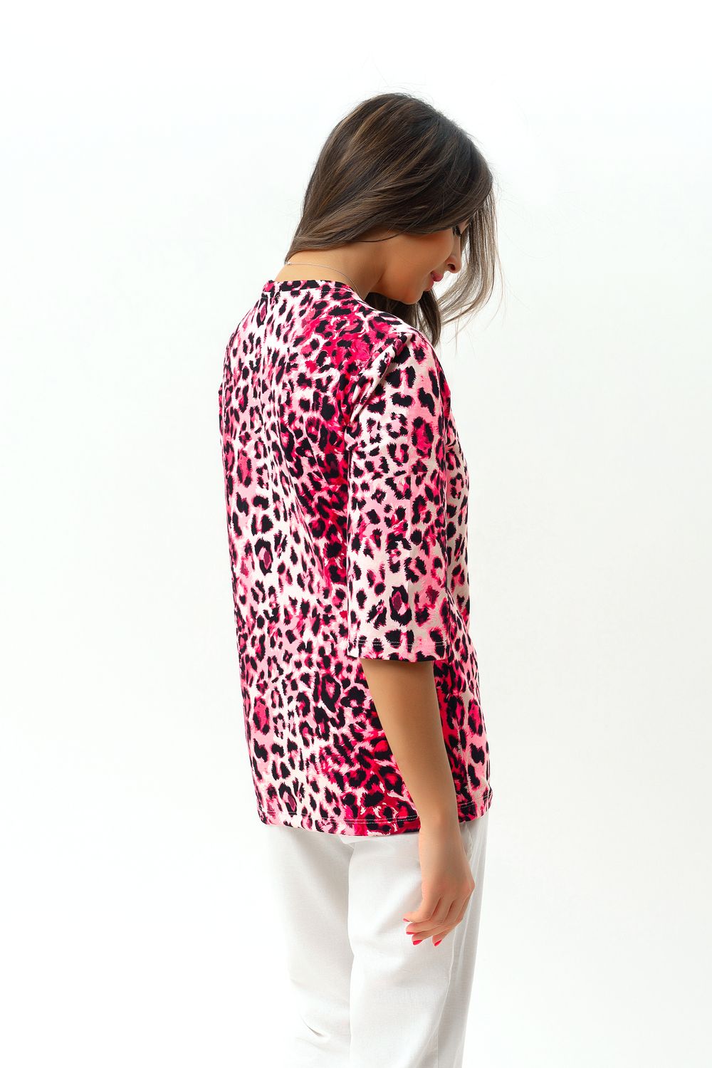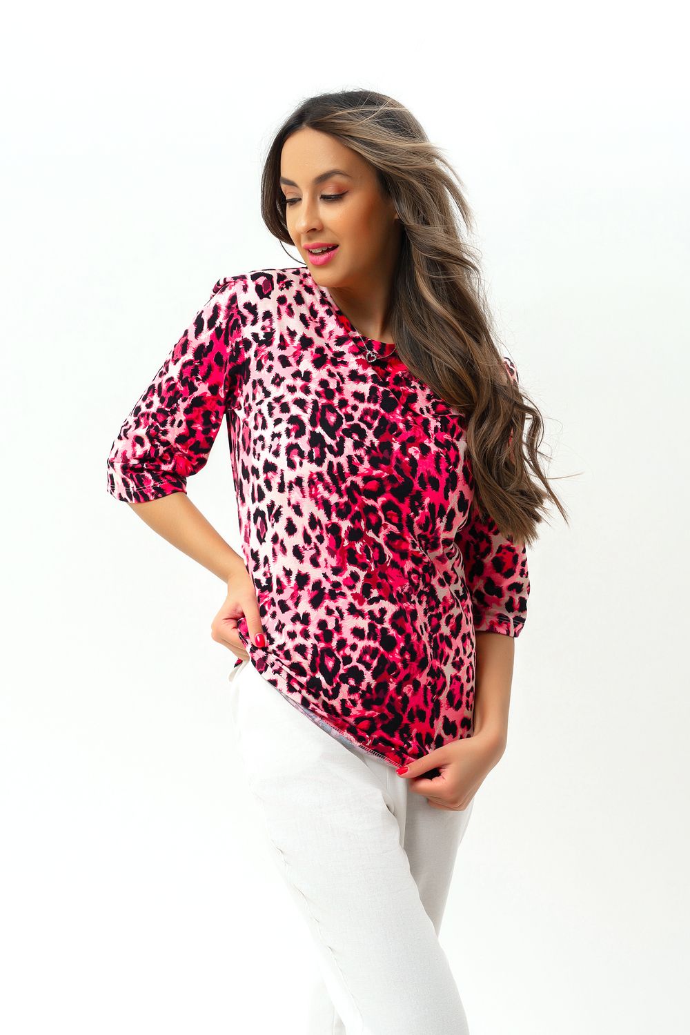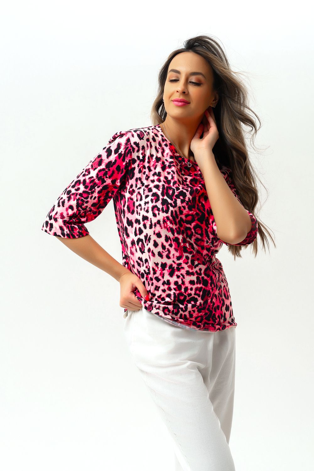Леопардовая блузка подойдет как для создания нарядных образов, так и для повседневной носки. Эта летняя футболка станет отличным дополнением вашего гардероба и придаст вам неповторимый шарм и стиль.