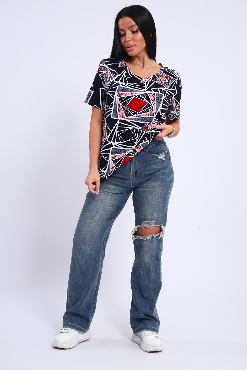 Футболка женская с V образным вырезом горловины и коротким рукавом.