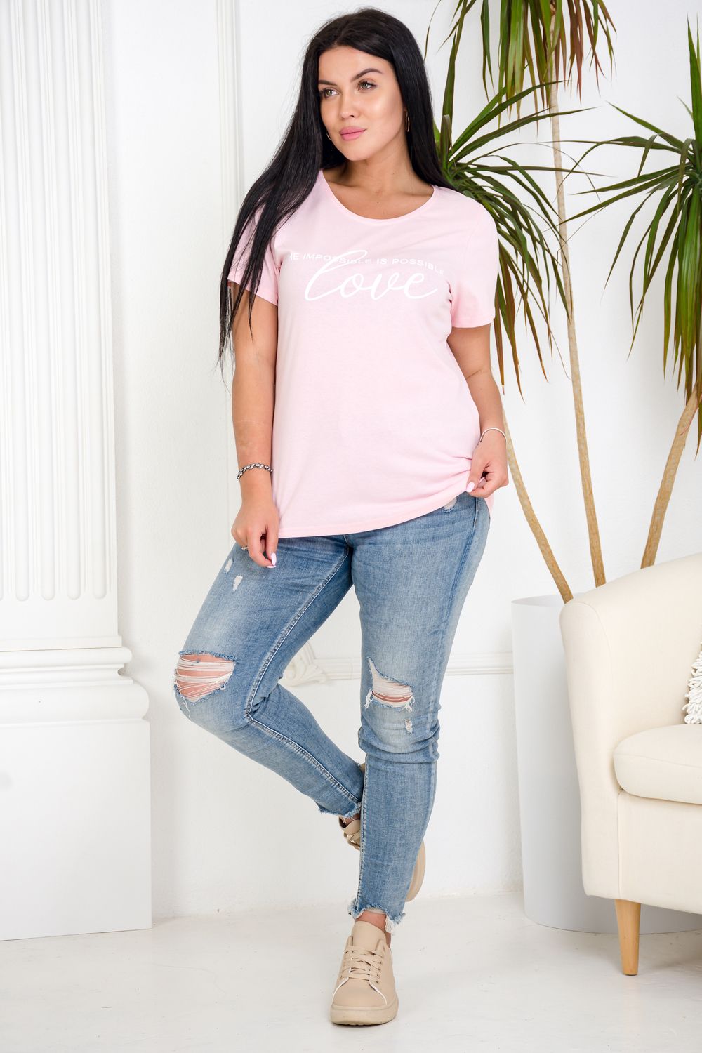 Футболка с нежным принтом изготовлена из мягкого 100% хлопка. Горловина обработана двойным кантом. Рукава и низ вподгибку.