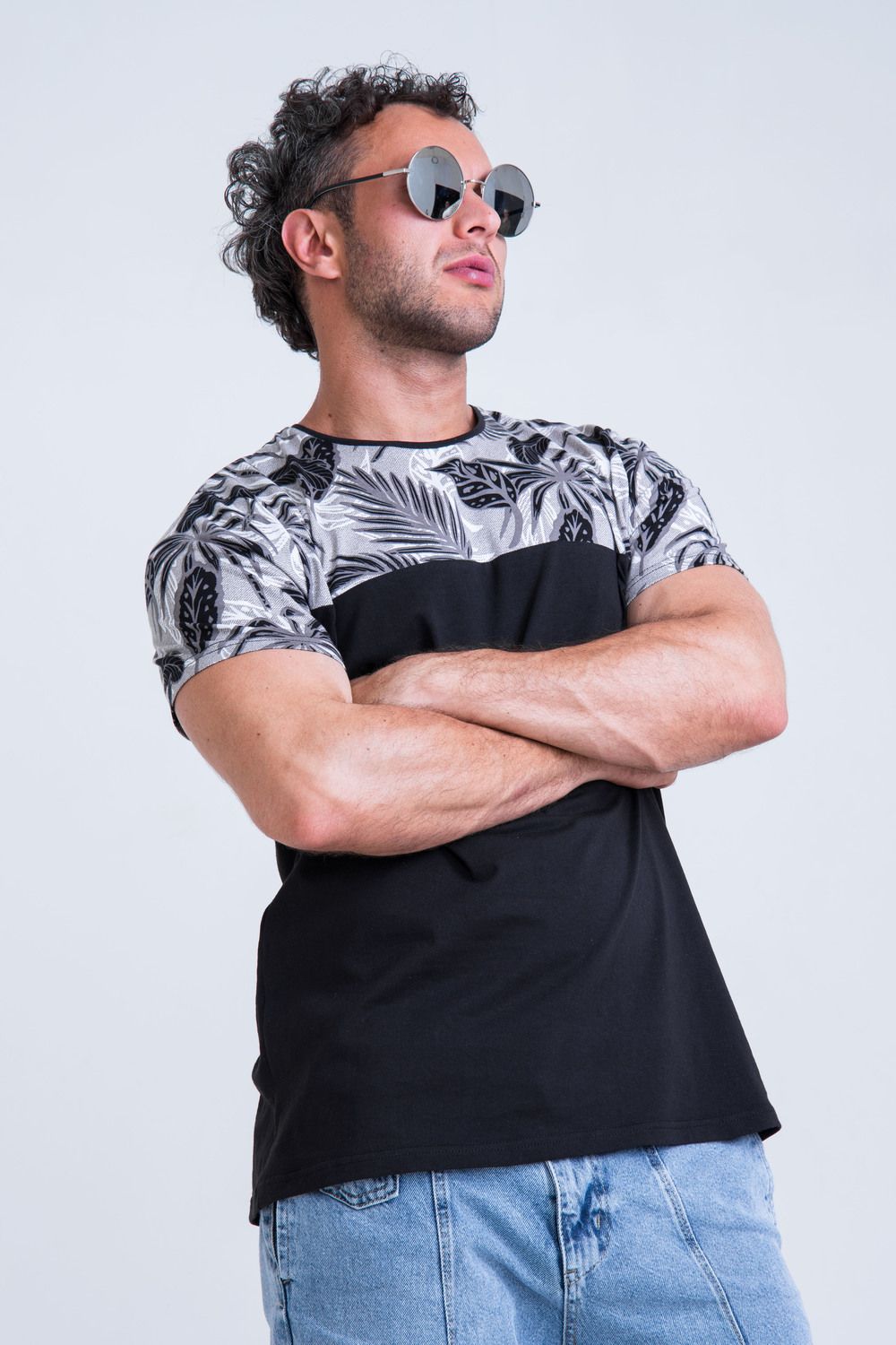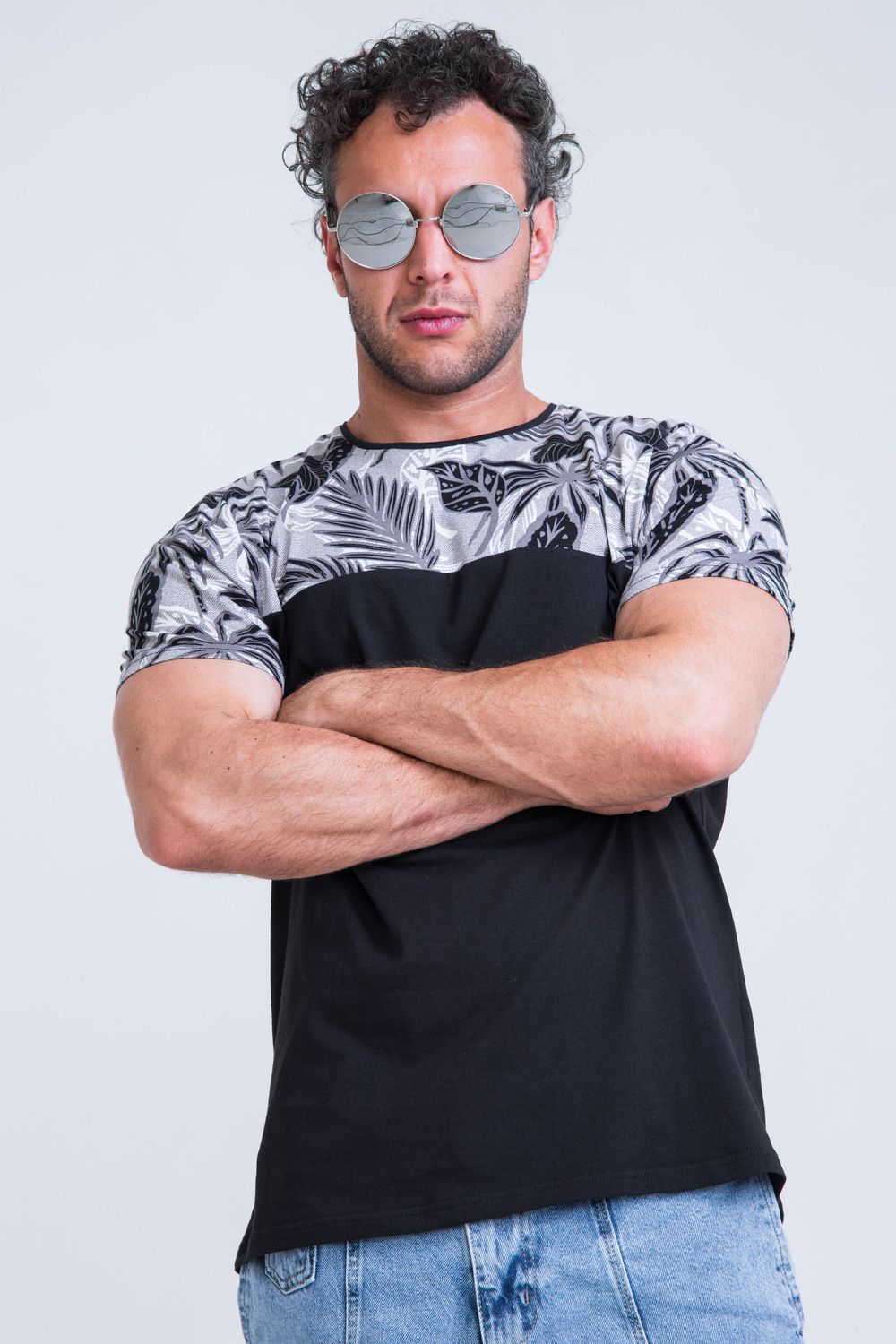 Мужская футболка с круглым вырезом горловины. Выполнена в двух расцветах. Спинка горловины усилена бейкой из основного полотна. Вырез горловины закрыт декоративной обтачкой.