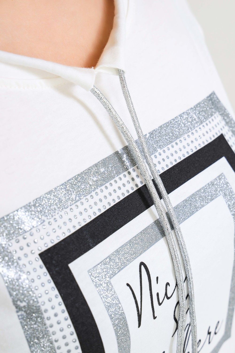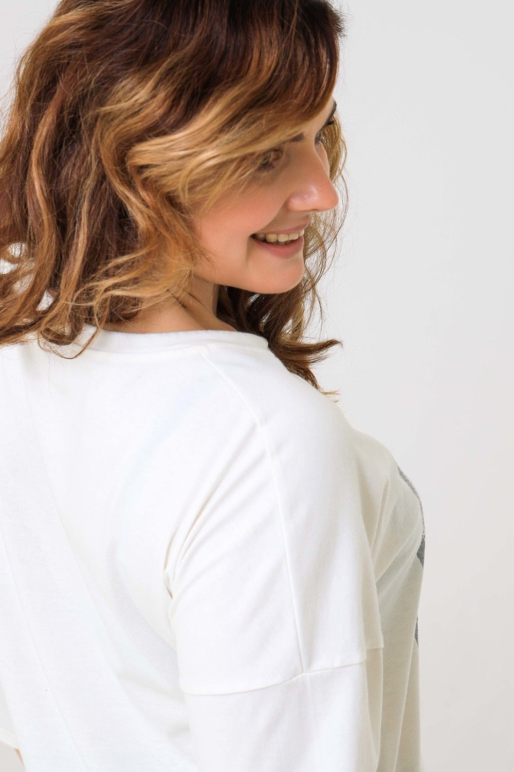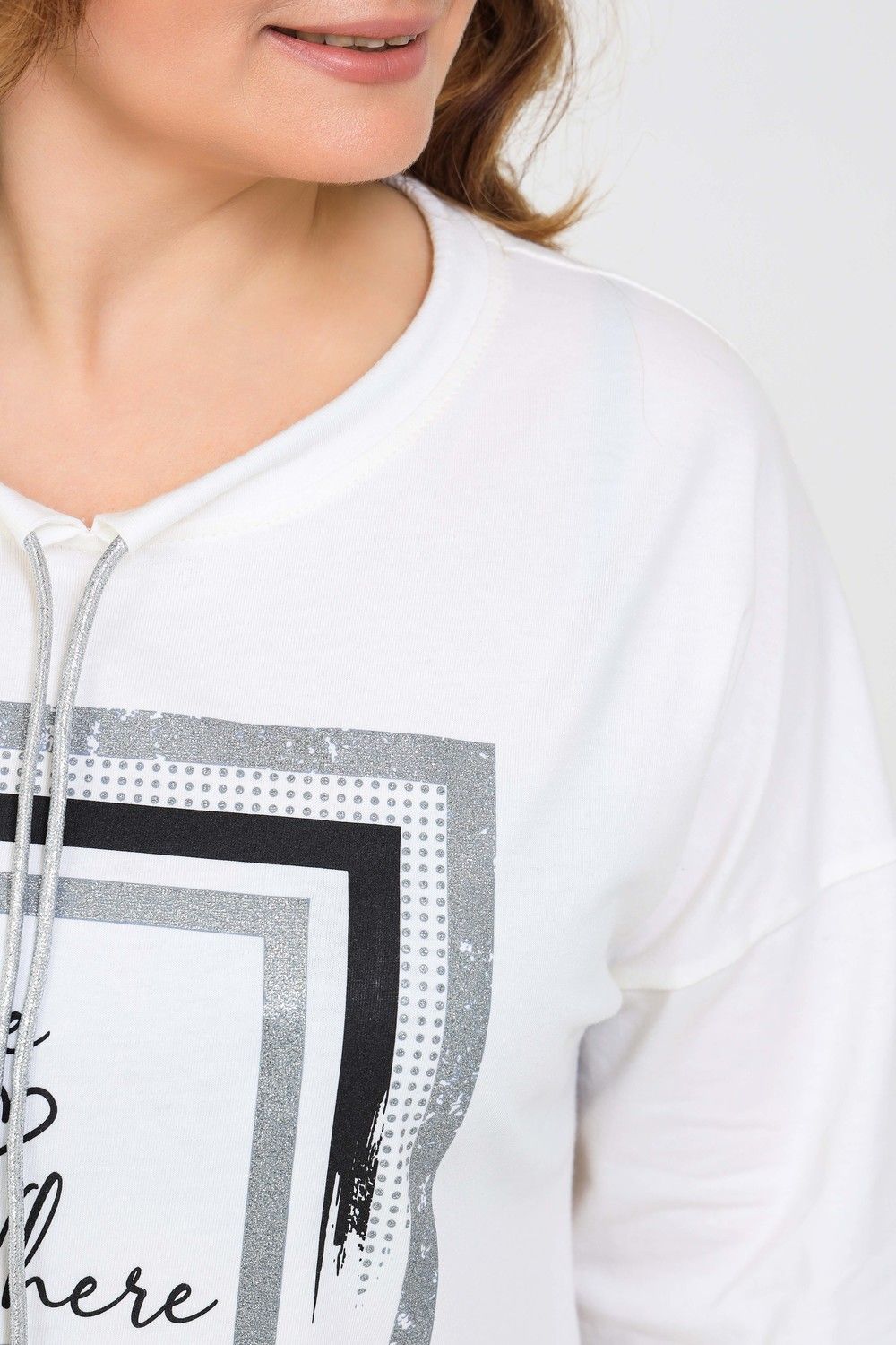 Удлиненная женская футболка длиной до середины бедра с округлым вырезом горловины. Классические красный, зеленый, черный и, конечно же, белый цвета не утратят своей актуальности. Модели средней длины прекрасно смотрятся с брюками-дудочками или облегающими джинсами. В прохладную погоду хорошо будет смотреться в паре с утепленной жилеткой или курткой. Принт из блестящего глиттера прекрасно гармонирует с серебристым шнурком. Модель выполнена из хлопка высшего качества.