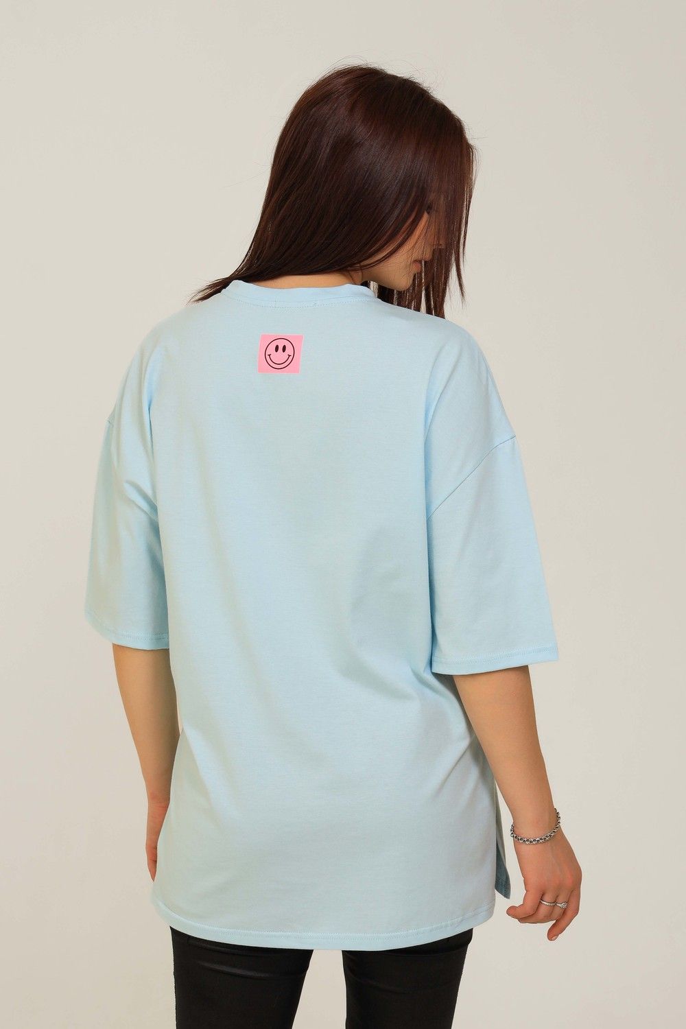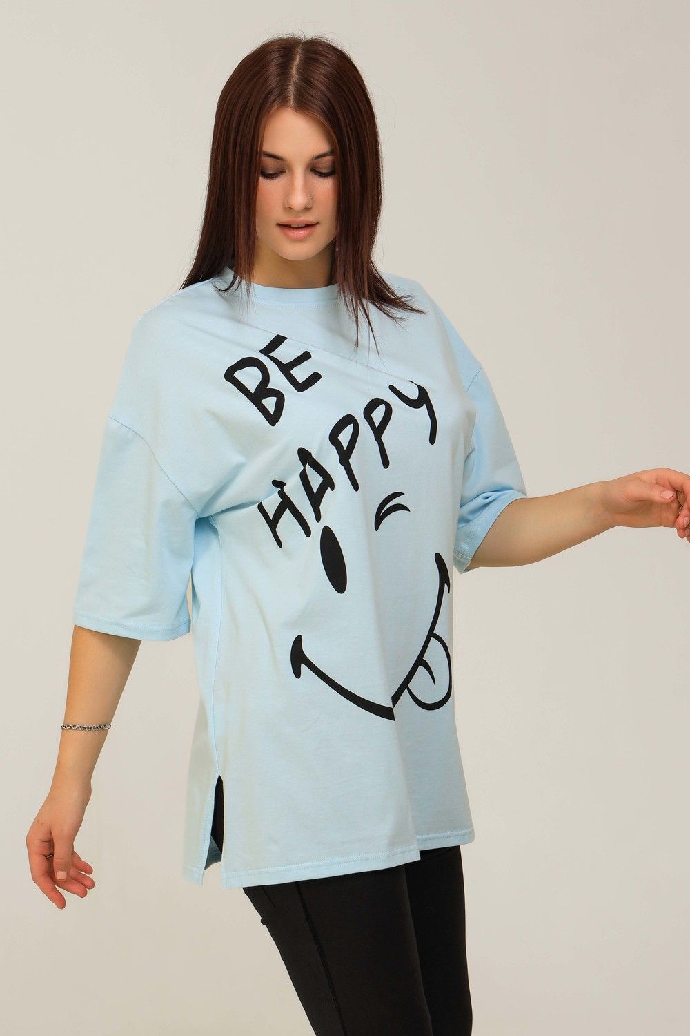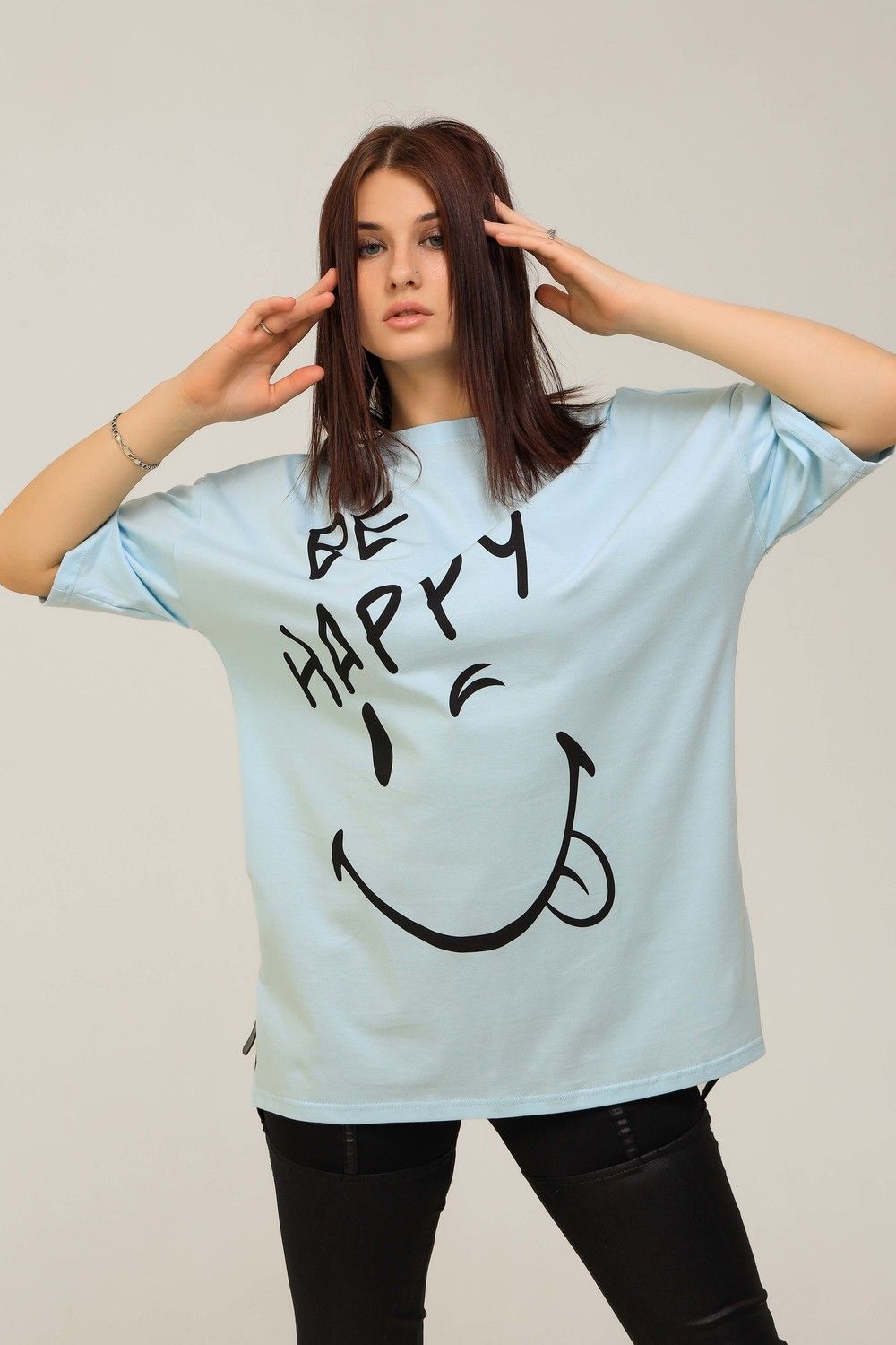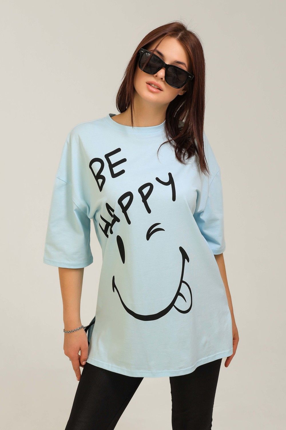Удлиненная женская футболка длинной до середины бедра представлена в 5 расцветках - яркие жёлтый, голубой и розовый цвета выделят Вас и прекрасно подчеркнет Вашу женственность, а базовые черный и, конечно же, белый цвета не утратят своей актуальности. Модели такой длины прекрасно смотрятся с брюками-дудочками, велосипедками или облегающими джинсами. В прохладную погоду хорошо будет смотреться в паре с утепленной жилеткой или курткой. На модели черного цвета нанесена печать глитером, который сверкает на солнце как алмазы, на остальных цветах печать в черном цвете, которая прекрасно контрастирует со светлыми тонами изделия. Модель выполнена из хлопка высшего качества плотность хлопка 170гр/м2. Это качество ткани люксовых изделий. Размер на модели - 48,
