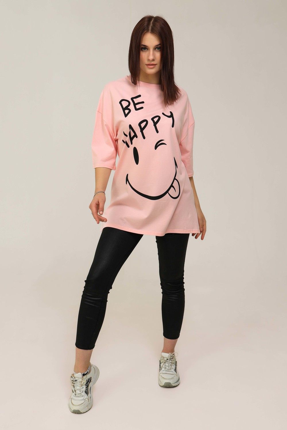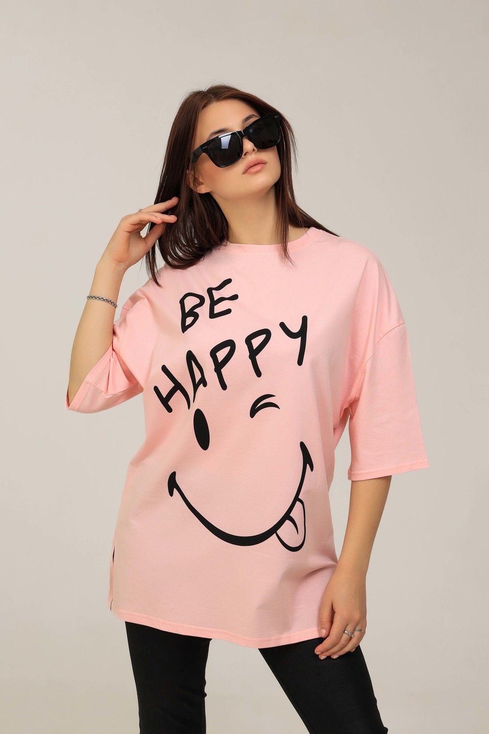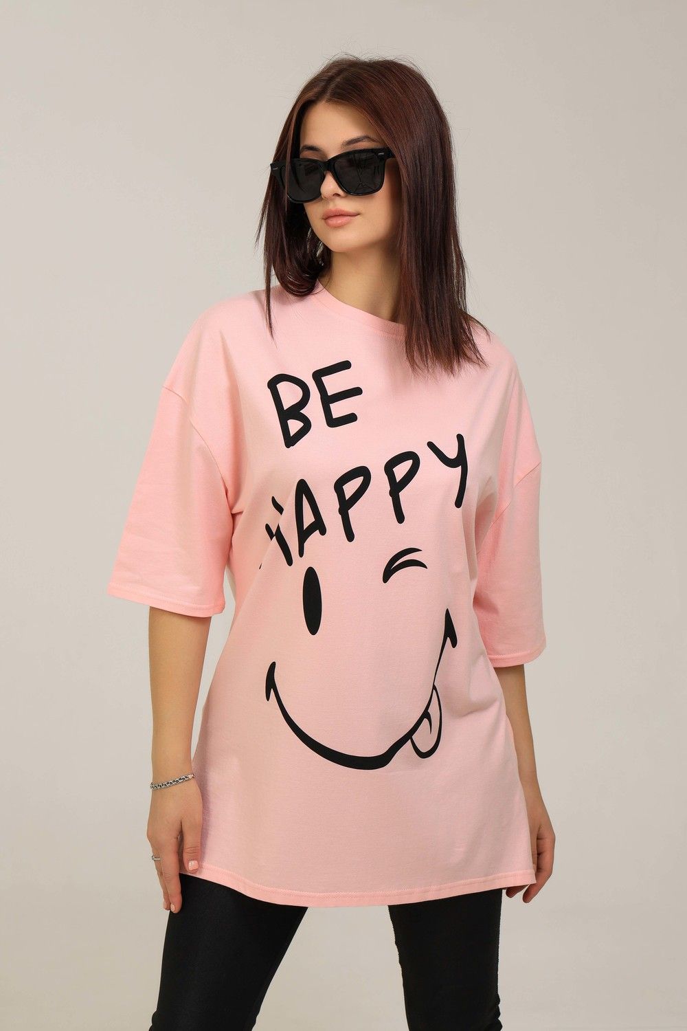 Удлиненная женская футболка длинной до середины бедра представлена в 5 расцветках - яркие жёлтый, голубой и розовый цвета выделят Вас и прекрасно подчеркнет Вашу женственность, а базовые черный и, конечно же, белый цвета не утратят своей актуальности. Модели такой длины прекрасно смотрятся с брюками-дудочками, велосипедками или облегающими джинсами. В прохладную погоду хорошо будет смотреться в паре с утепленной жилеткой или курткой. На модели черного цвета нанесена печать глитером, который сверкает на солнце как алмазы, на остальных цветах печать в черном цвете, которая прекрасно контрастирует со светлыми тонами изделия. Модель выполнена из хлопка высшего качества плотность хлопка 170гр/м2. Это качество ткани люксовых изделий. Размер на модели - 48,
