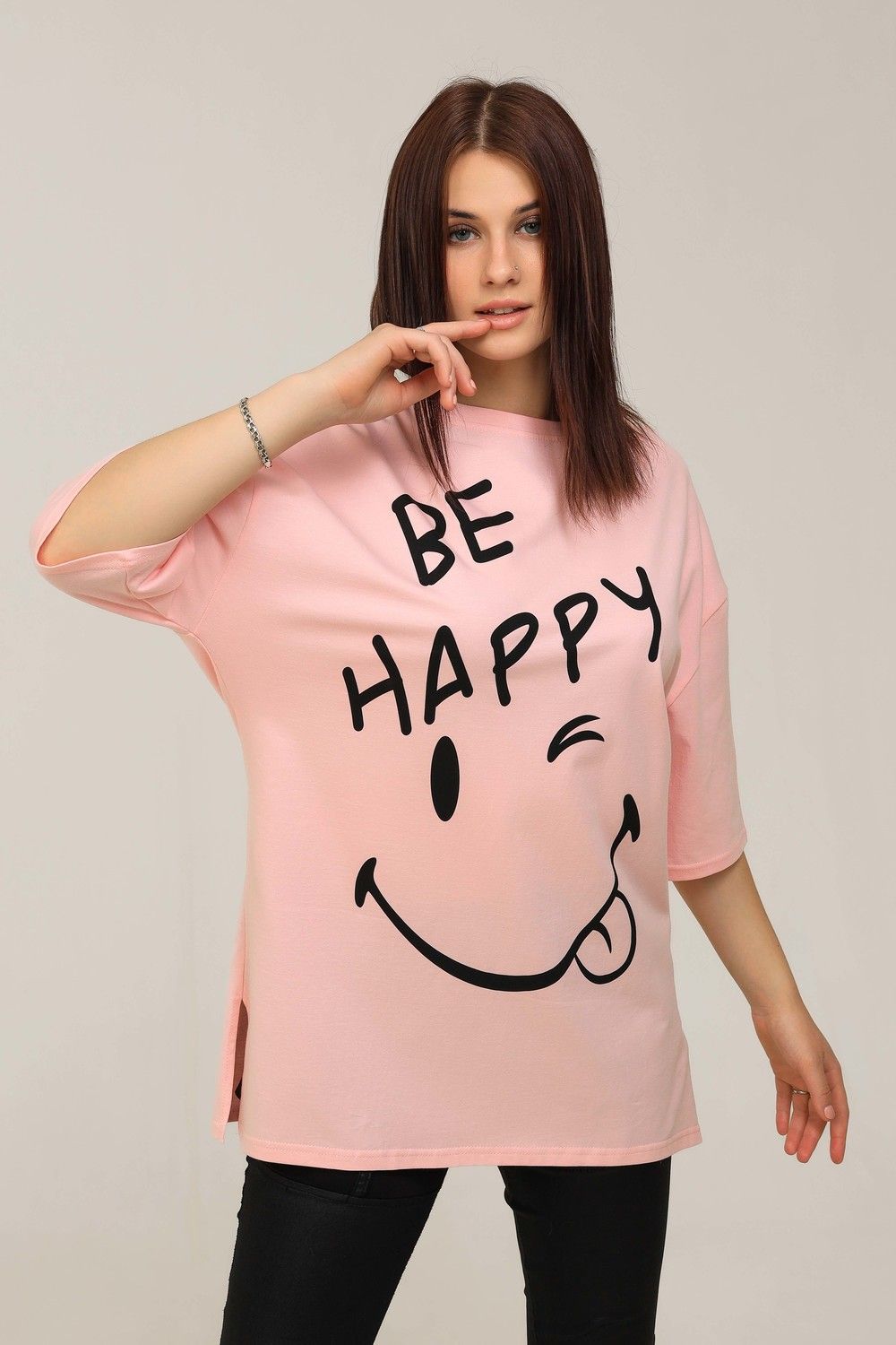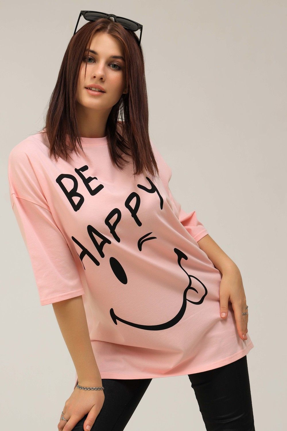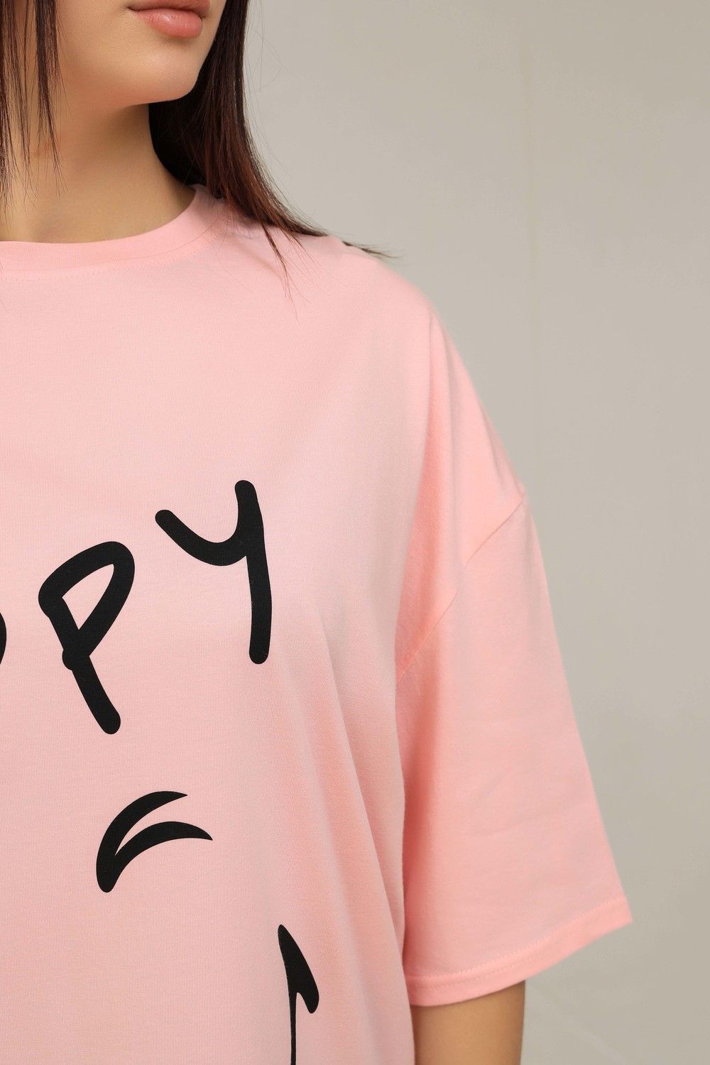 Удлиненная женская футболка длинной до середины бедра представлена в 5 расцветках - яркие жёлтый, голубой и розовый цвета выделят Вас и прекрасно подчеркнет Вашу женственность, а базовые черный и, конечно же, белый цвета не утратят своей актуальности. Модели такой длины прекрасно смотрятся с брюками-дудочками, велосипедками или облегающими джинсами. В прохладную погоду хорошо будет смотреться в паре с утепленной жилеткой или курткой. На модели черного цвета нанесена печать глитером, который сверкает на солнце как алмазы, на остальных цветах печать в черном цвете, которая прекрасно контрастирует со светлыми тонами изделия. Модель выполнена из хлопка высшего качества плотность хлопка 170гр/м2. Это качество ткани люксовых изделий. Размер на модели - 48,