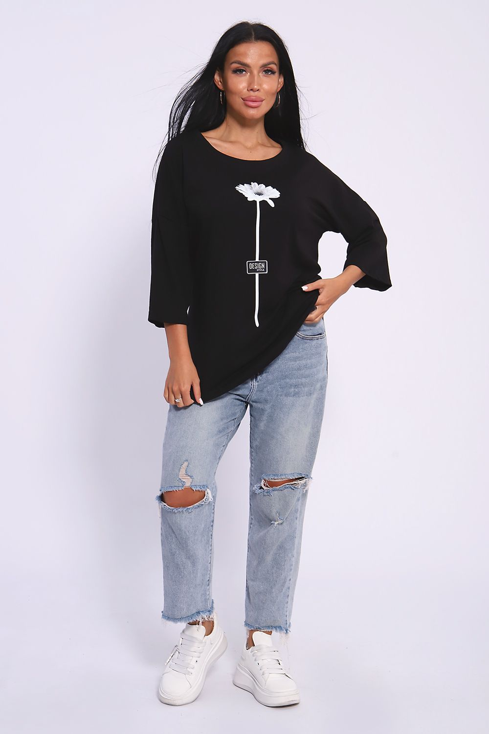 Женская футболка длиной до середины бедра комфортная посадка круглый вырез горловины. Модель представлена в широкой цветовой гамме, Классическая футболка средней длинны прекрасно гармонирует со многими вещами гардероба, Ткань для этой модели выполнена из хлопка высшего качества. Размер на модели 50, Параметры 92-66-97,5; рост 165см.