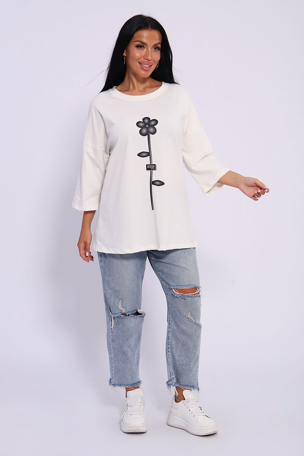 Женская футболка длиной до середины бедра комфортная посадка круглый вырез горловины. Модель представлена в широкой цветовой гамме, Классическая футболка средней длинны прекрасно гармонирует со многими вещами гардероба, Ткань для этой модели выполнена из хлопка высшего качества. Размер на модели 50, Параметры 92-66-97,5; рост 165см.