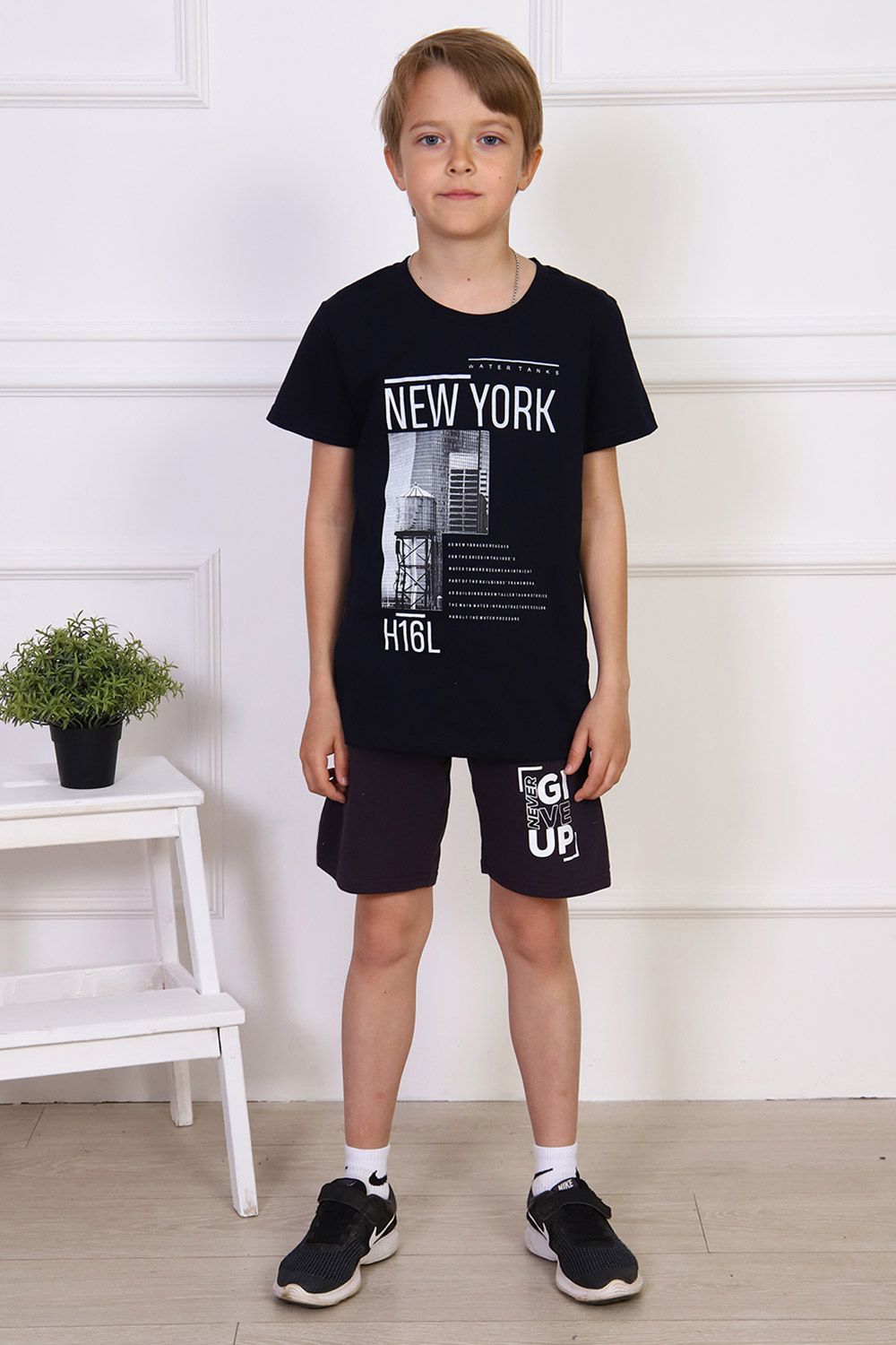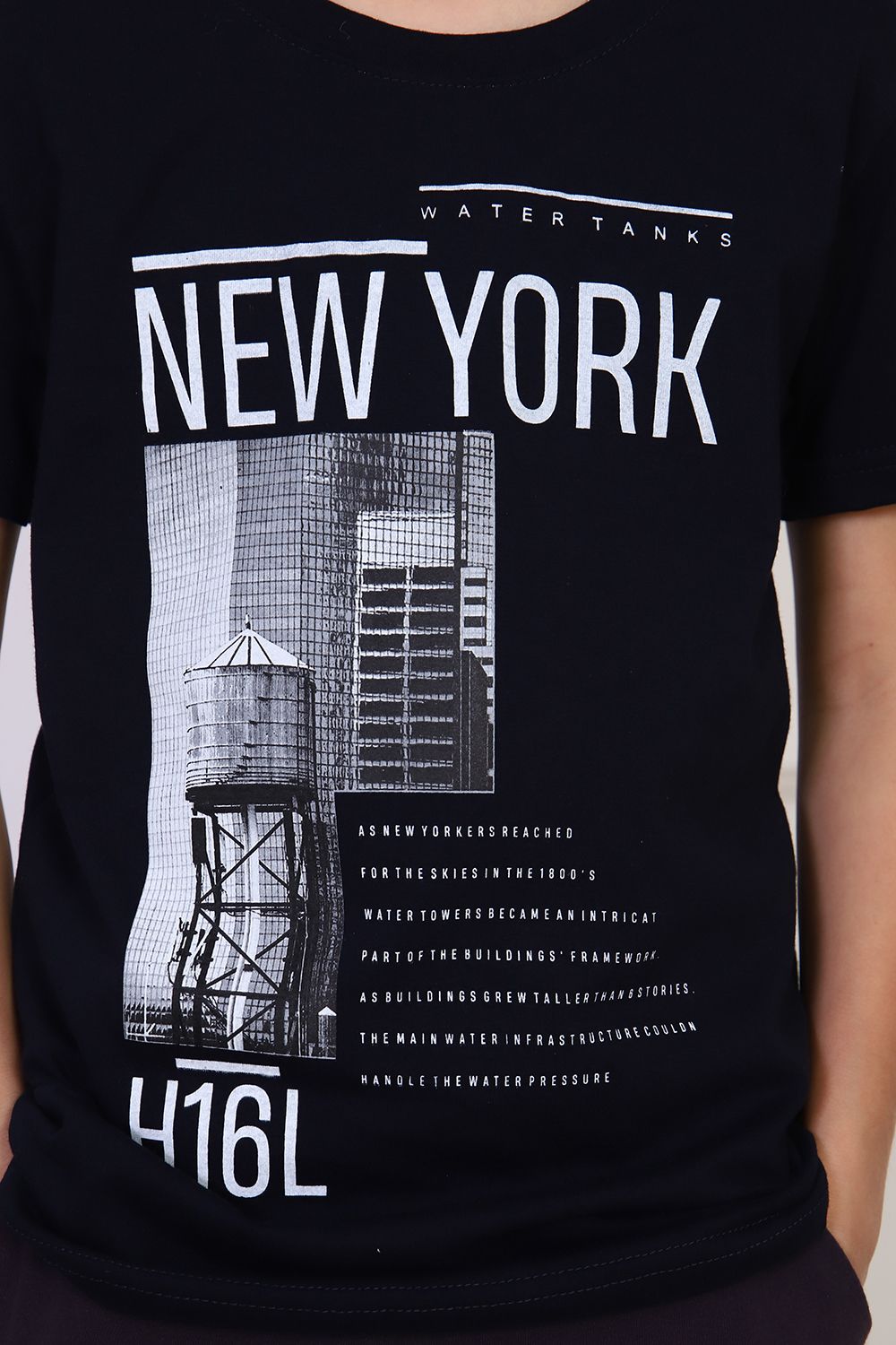 Футболка из хлопковой трикотажной кулирки с принтом. Принт в стиле урбанизм, очень эффектный. Рукав короткий.