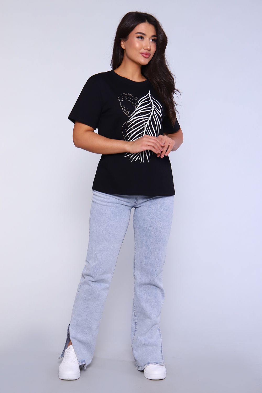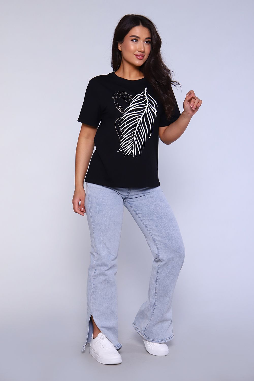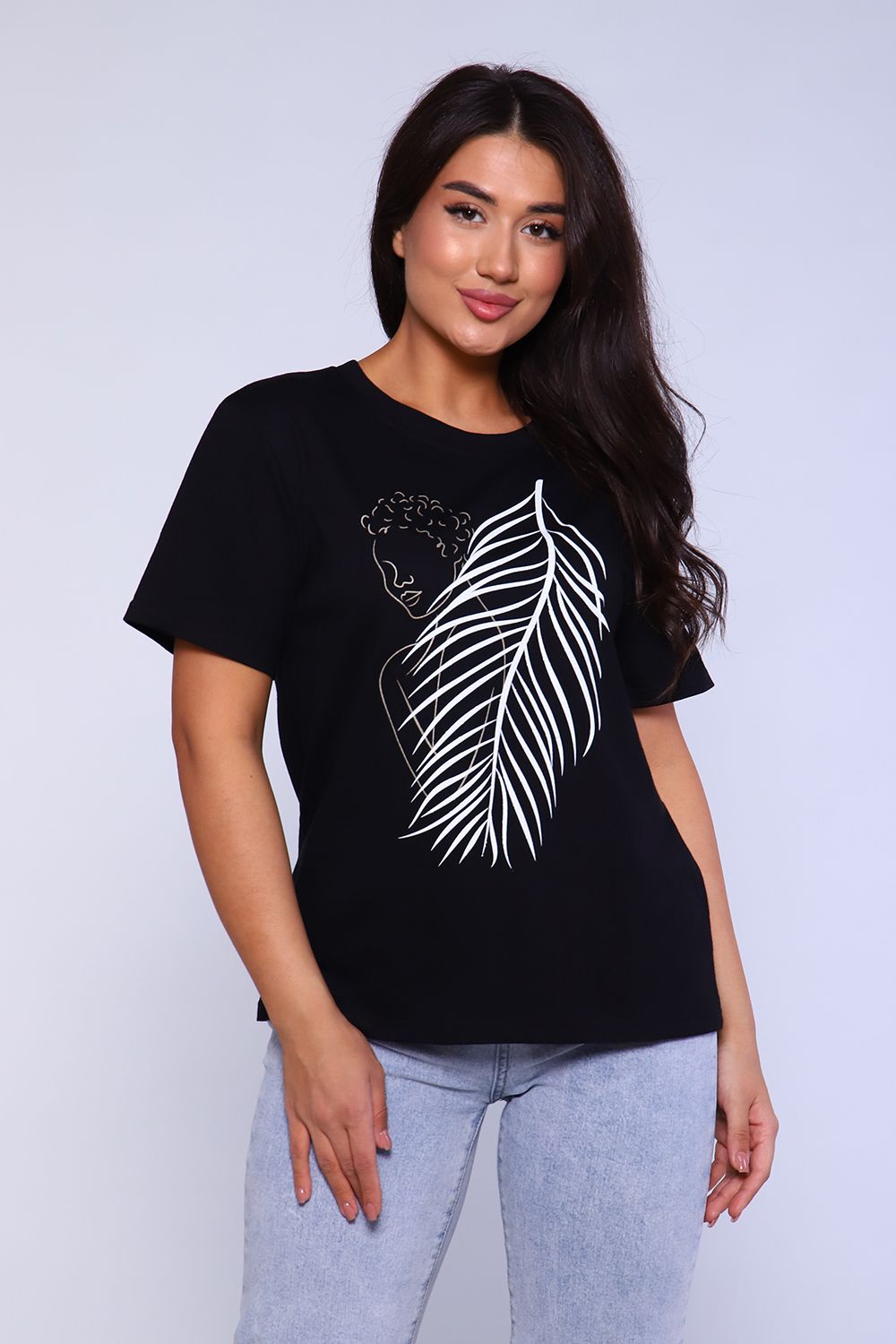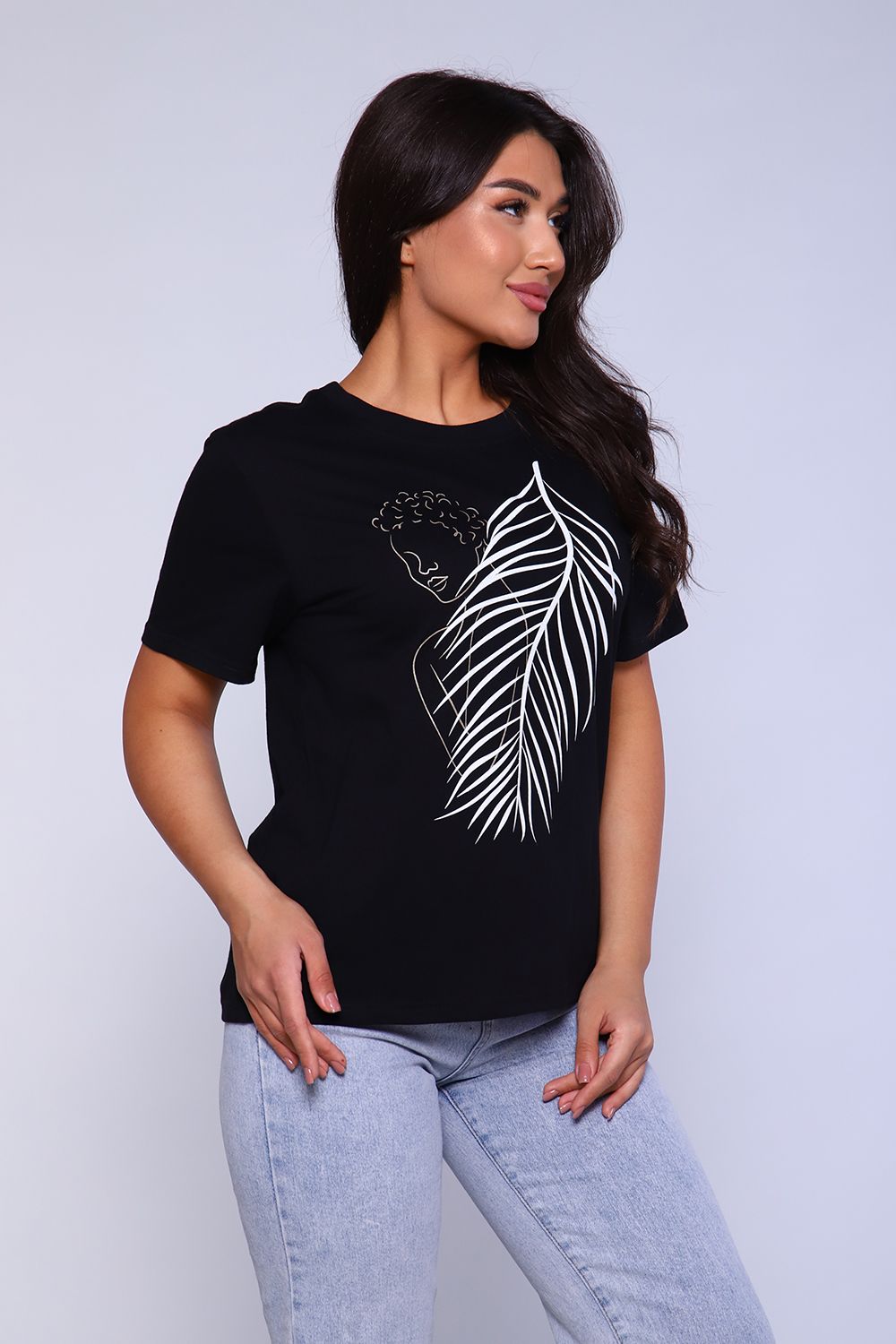 Женская футболка классического прямого кроя с округлой горловиной (с усилителем), коротким рукавом. Стильная футболка с принтом, выполнена из мягкого трикотажного полотна приятного к телу. Отличный вариант на каждый день для девочек и женщин.