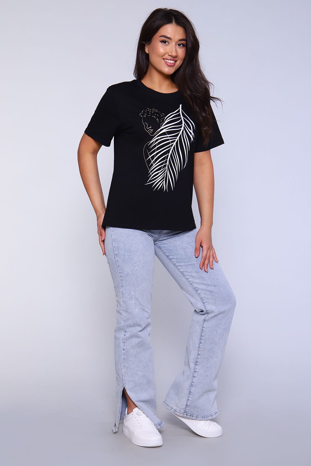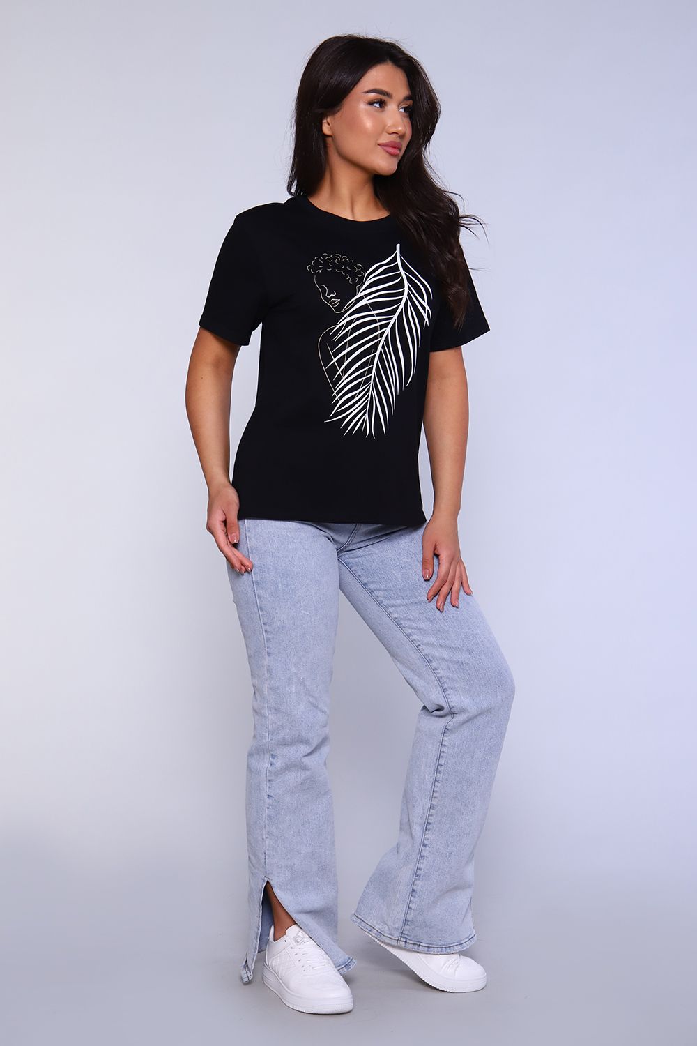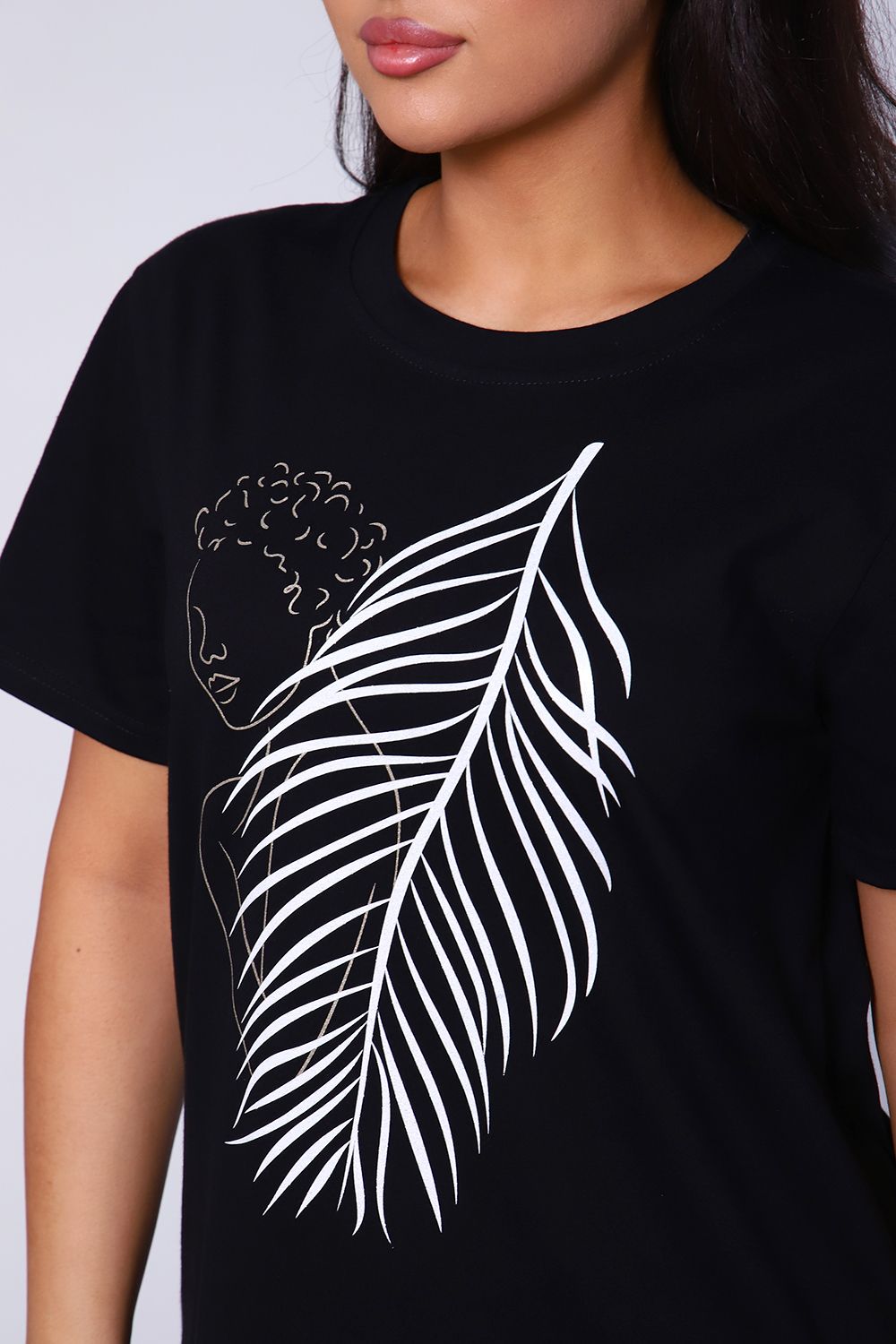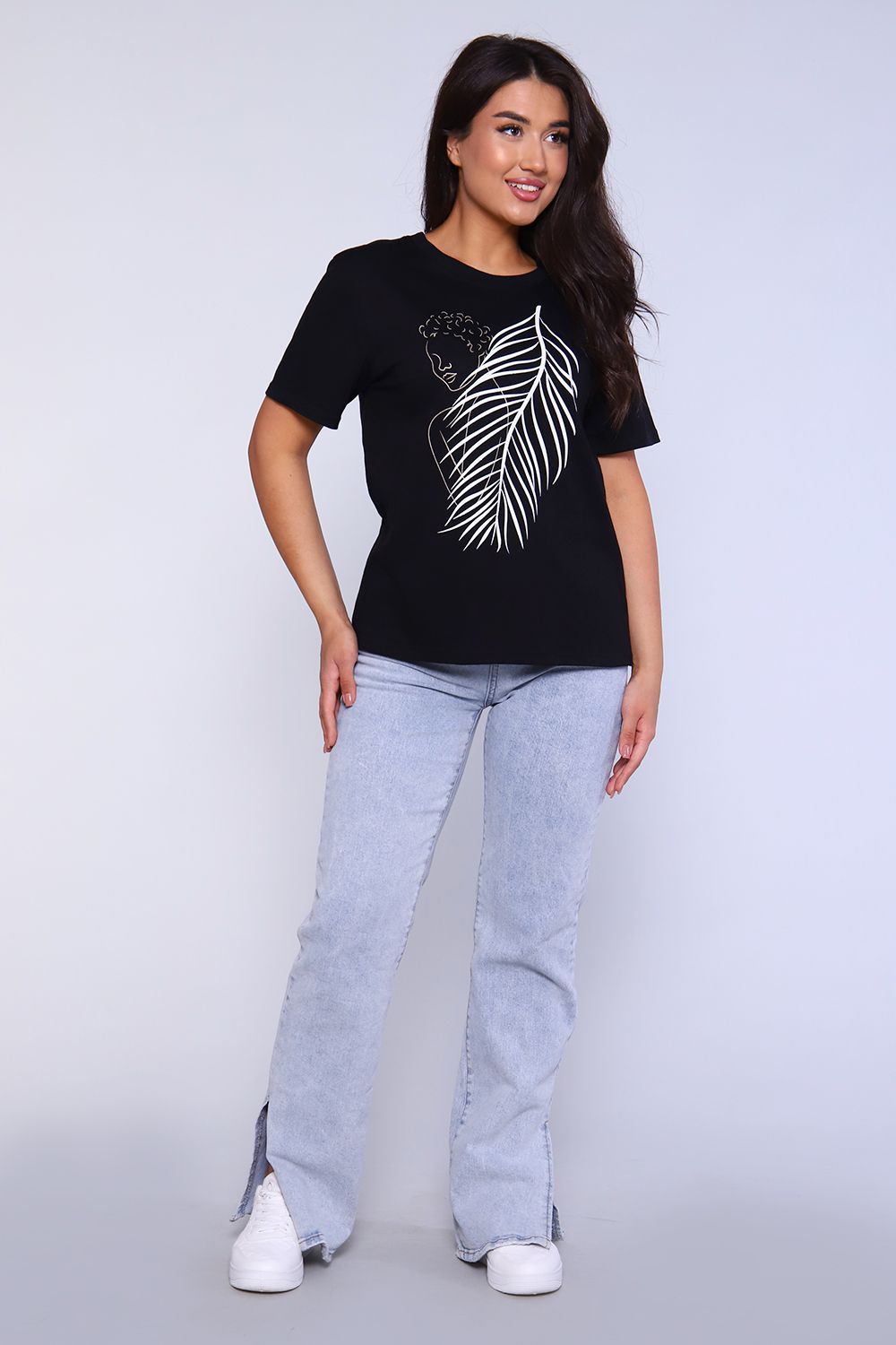 Женская футболка классического прямого кроя с округлой горловиной (с усилителем), коротким рукавом. Стильная футболка с принтом, выполнена из мягкого трикотажного полотна приятного к телу. Отличный вариант на каждый день для девочек и женщин.
