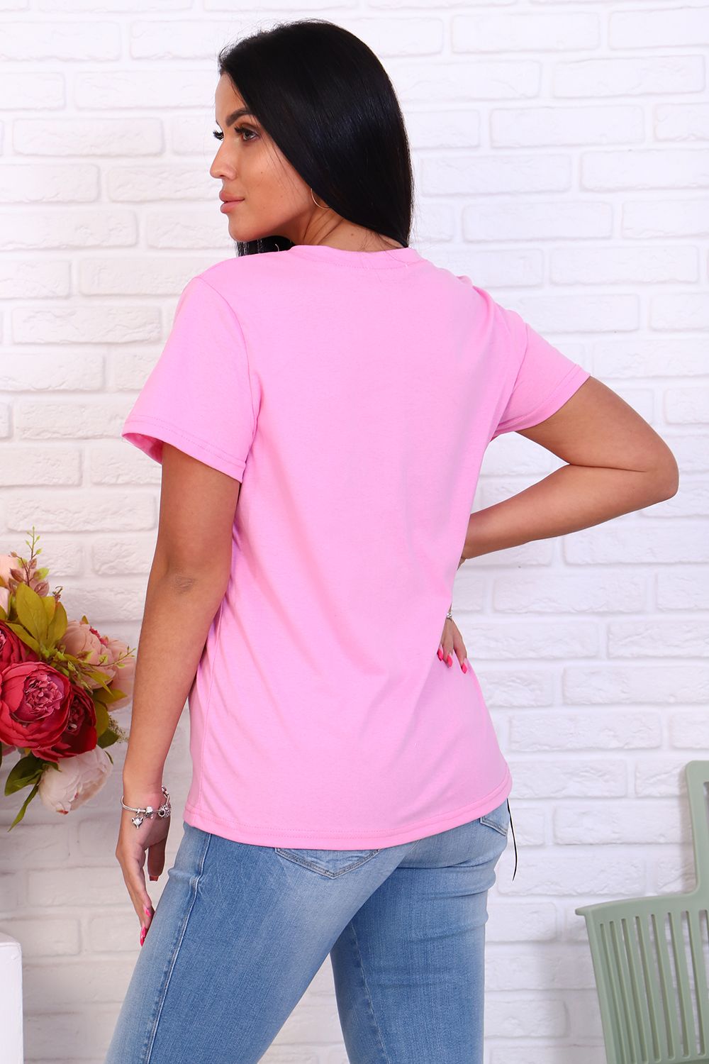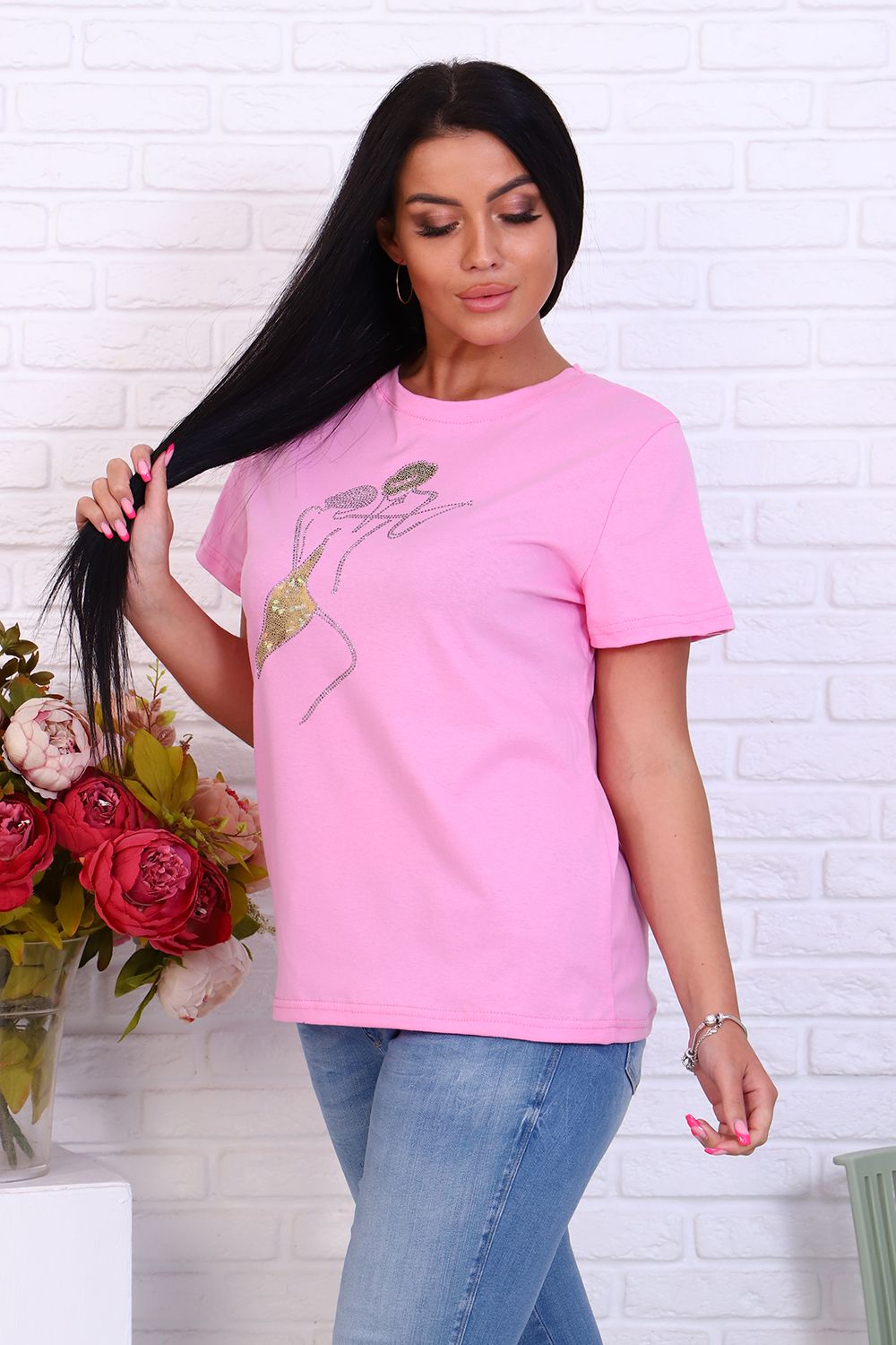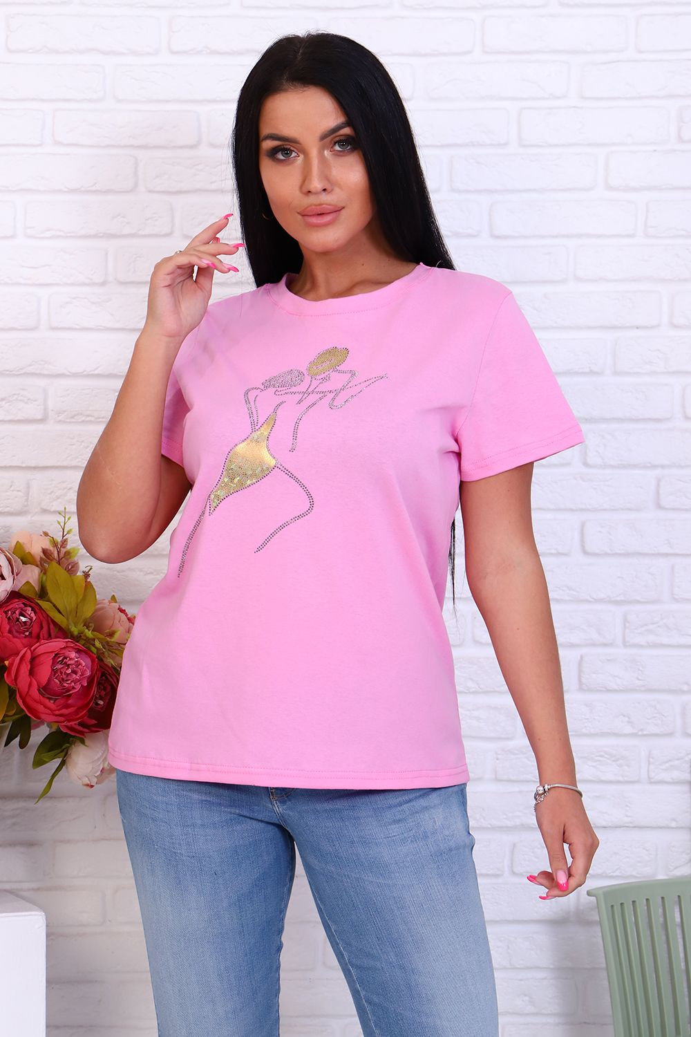 Футболка обычного кроя. Короткий рукав. Имеется декоративный элемент в виде страз: мужчина с женщиной танцуют танго. Выполнена футболка из кулирки: 100% хлопок, плотностью 140 гр