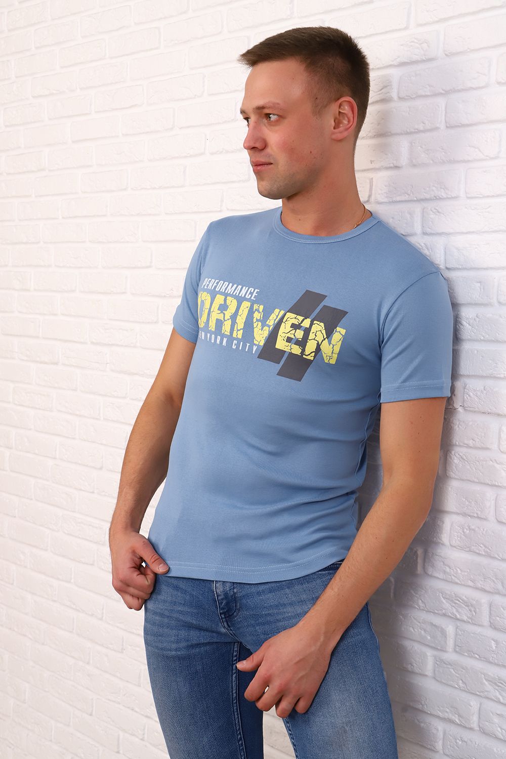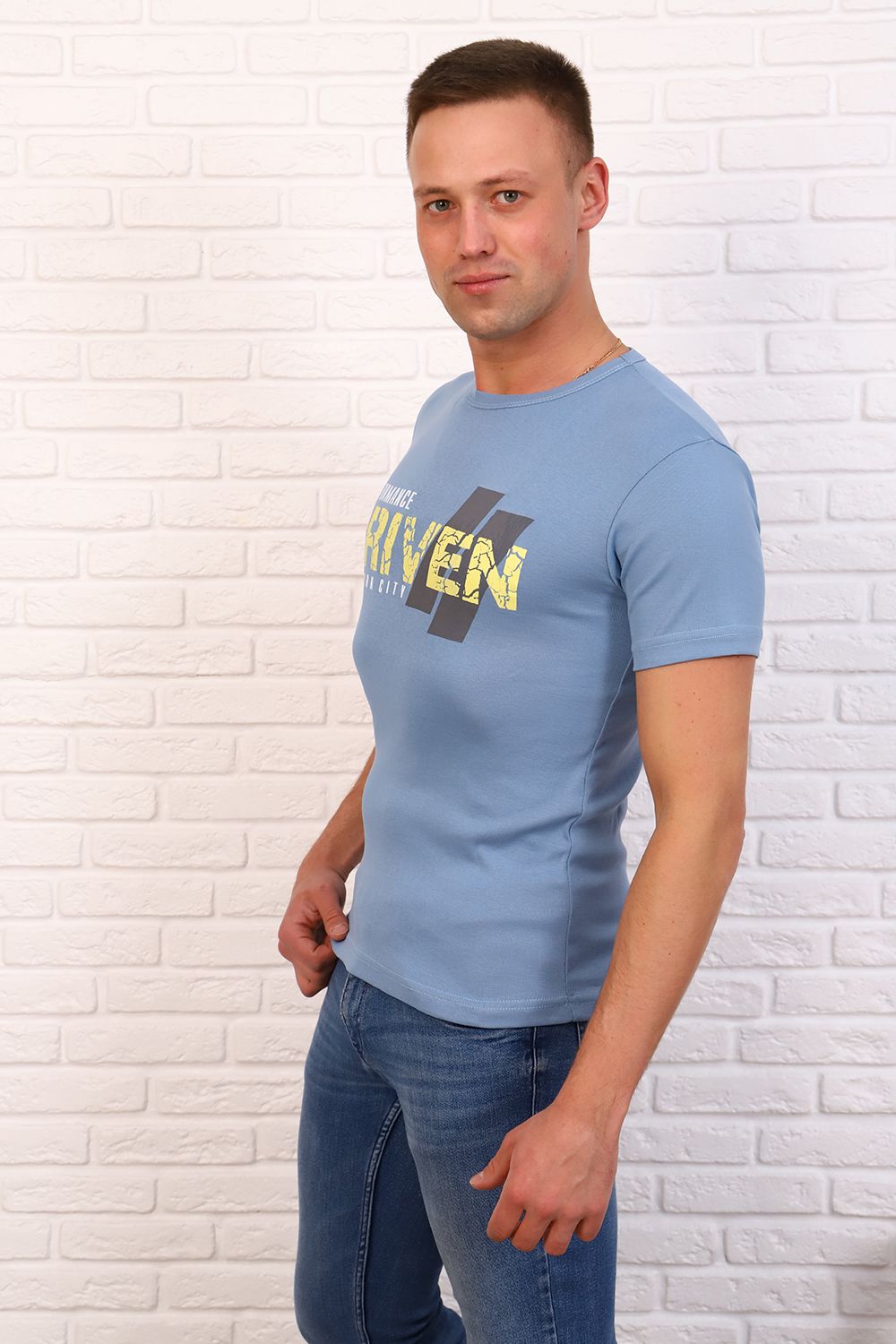 Мужская футболка из кулирки. Короткие рукава, круглая горловина, прямой силуэт. Полочка украшена печатью. Подойдет на любой случай жизни.