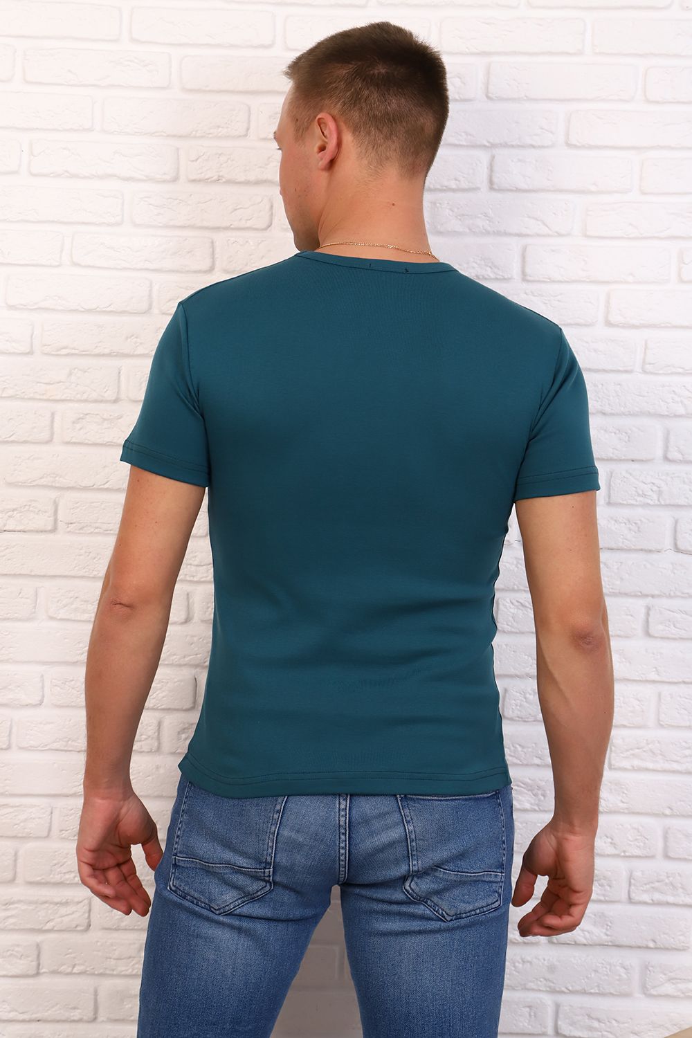 Мужская футболка из кулирки. Короткие рукава, круглая горловина, прямой силуэт. Полочка украшена печатью. Подойдет на любой случай жизни.