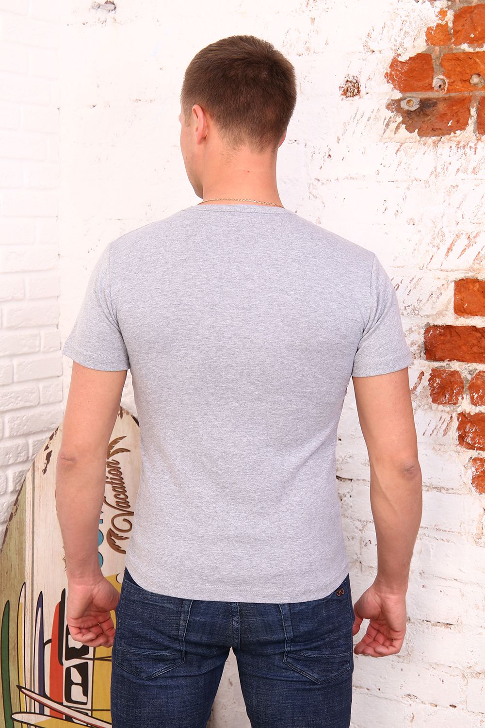 Мужская футболка из кулирки. Короткие рукава, круглая горловина, прямой силуэт. Полочка украшена печатью. Подойдет на любой случай жизни.