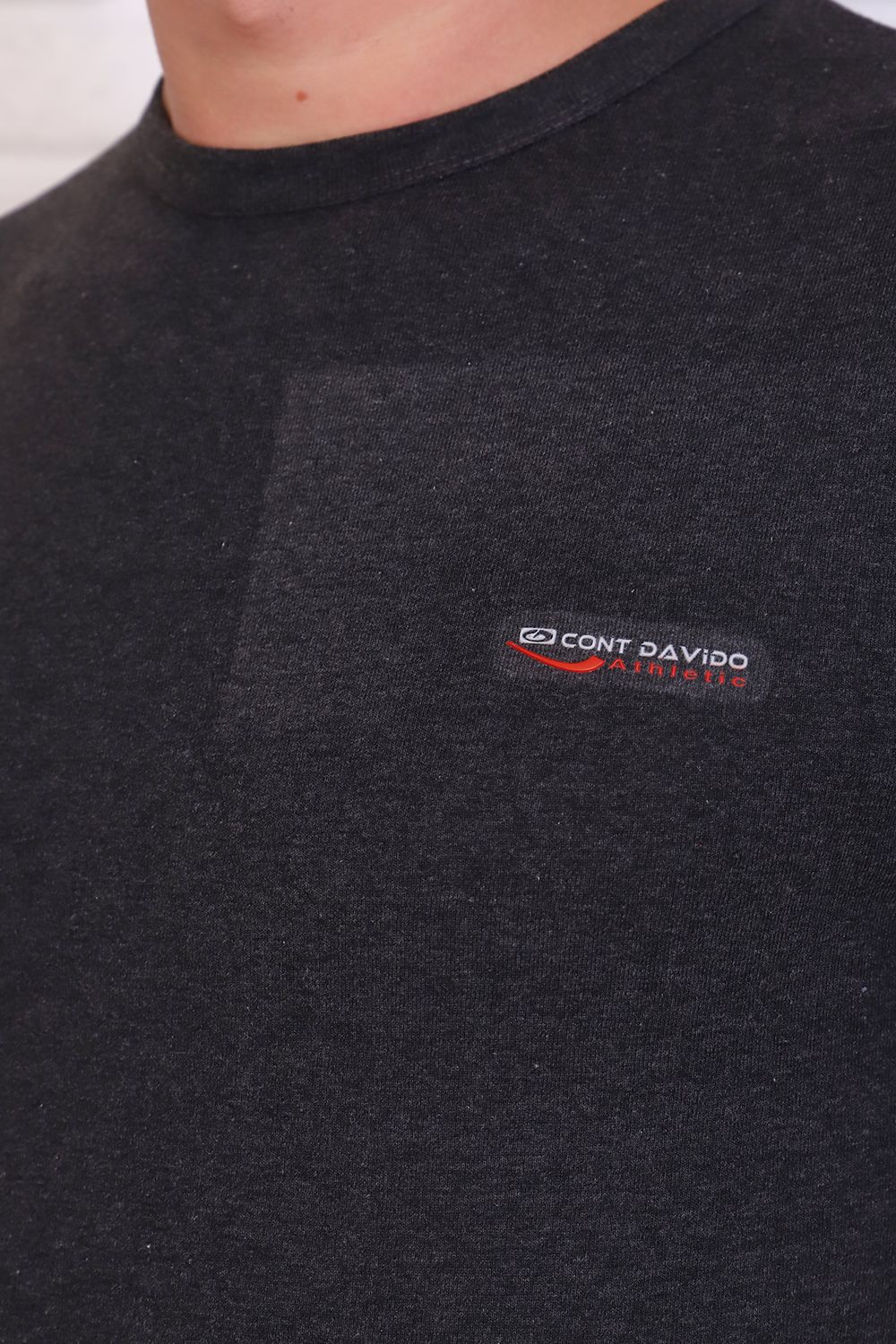 Мужская футболка из кулирки. Короткие рукава, круглая горловина, украшена печатью, прямой силуэт.