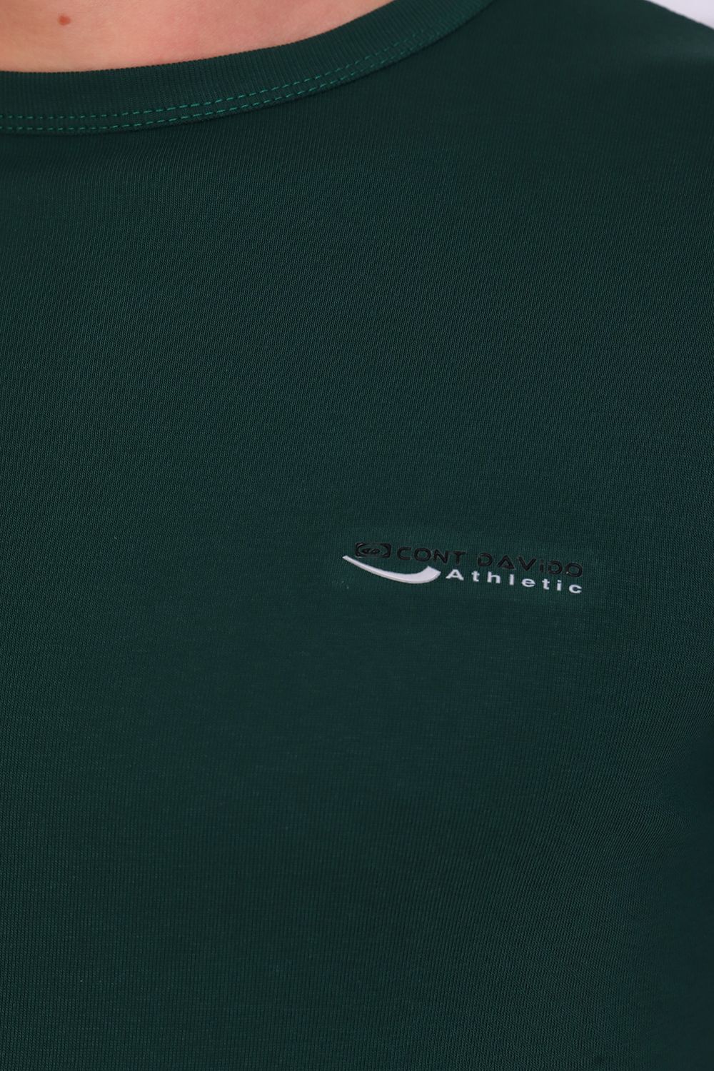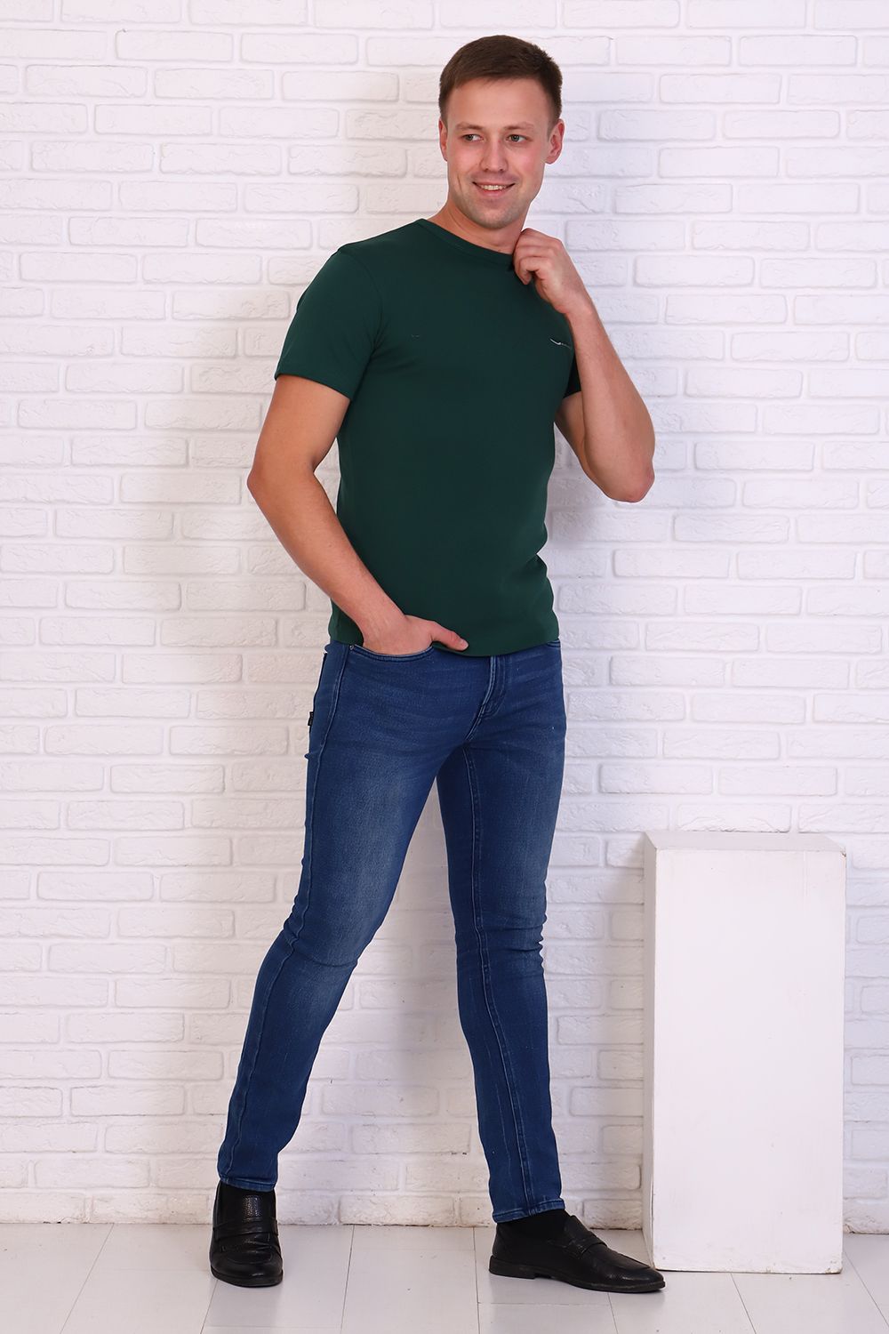Мужская футболка из кулирки. Короткие рукава, круглая горловина, украшена печатью, прямой силуэт.