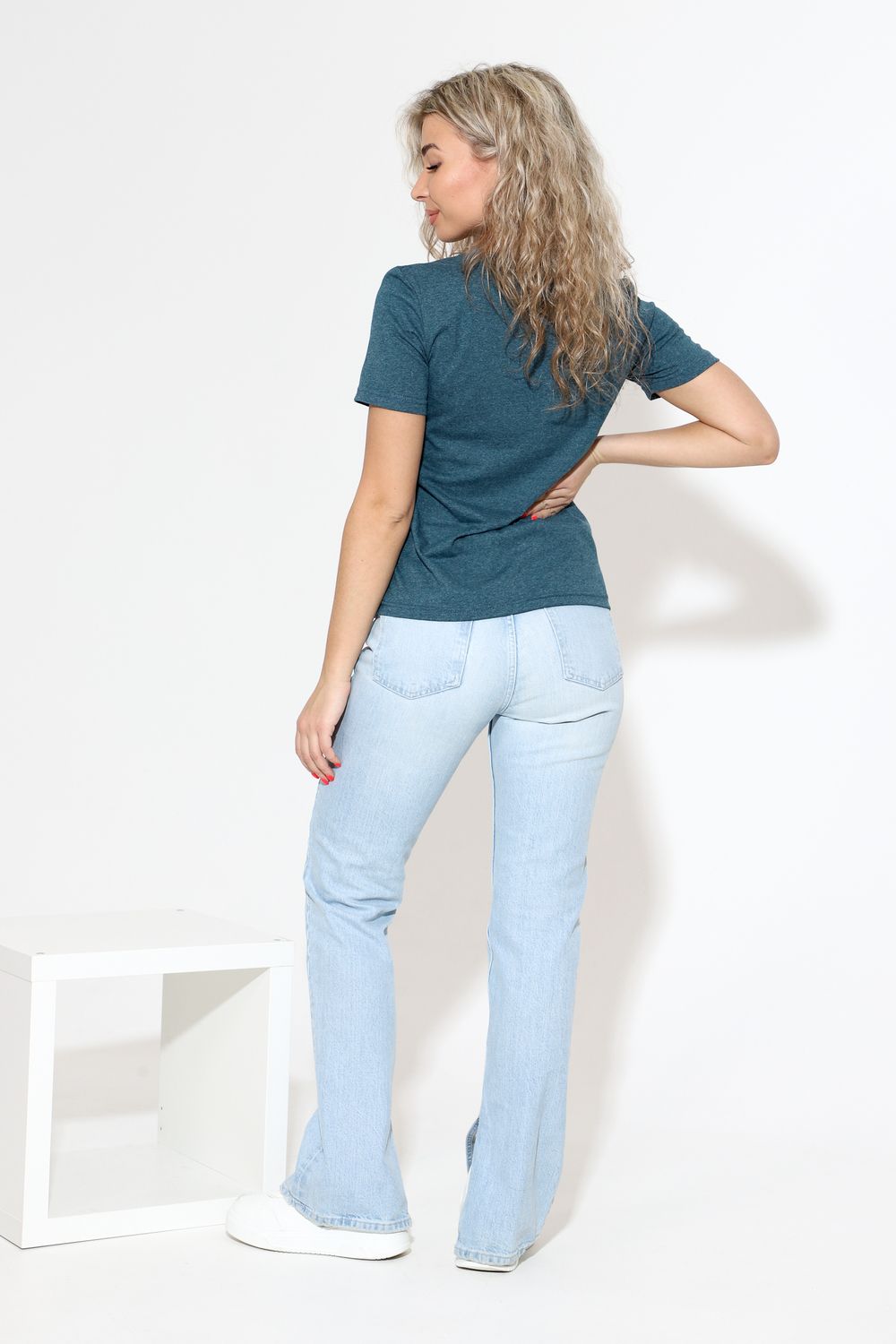 Футболка женская, короткий рукав, ткань кулирка. Полуприлегающий силуэт, вырез горловины углом. Подходит для ежедневного гардероба. Может сочетаться с брюками, джинсами и юбками.