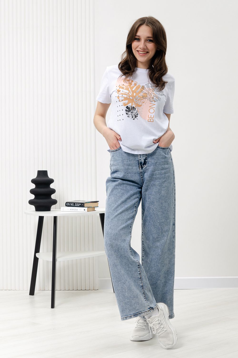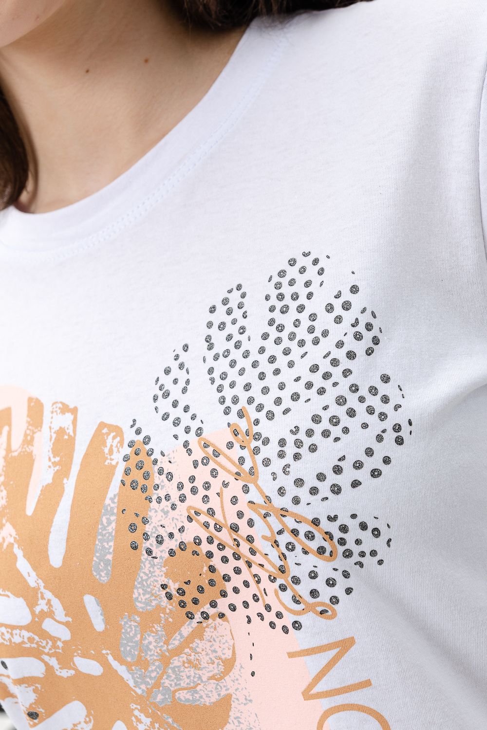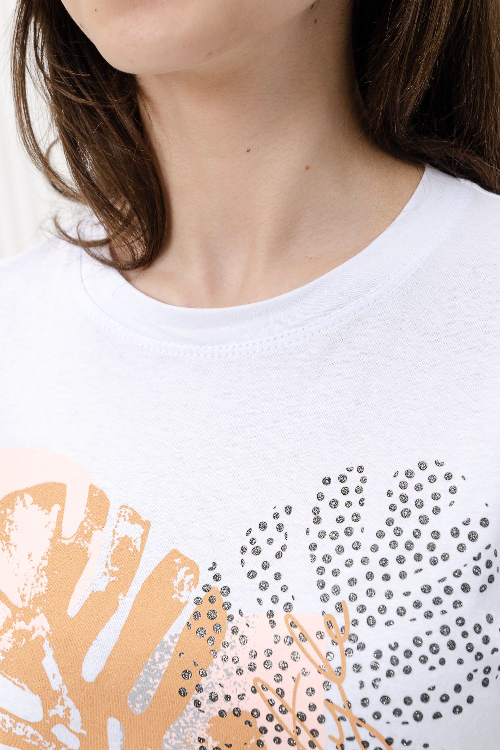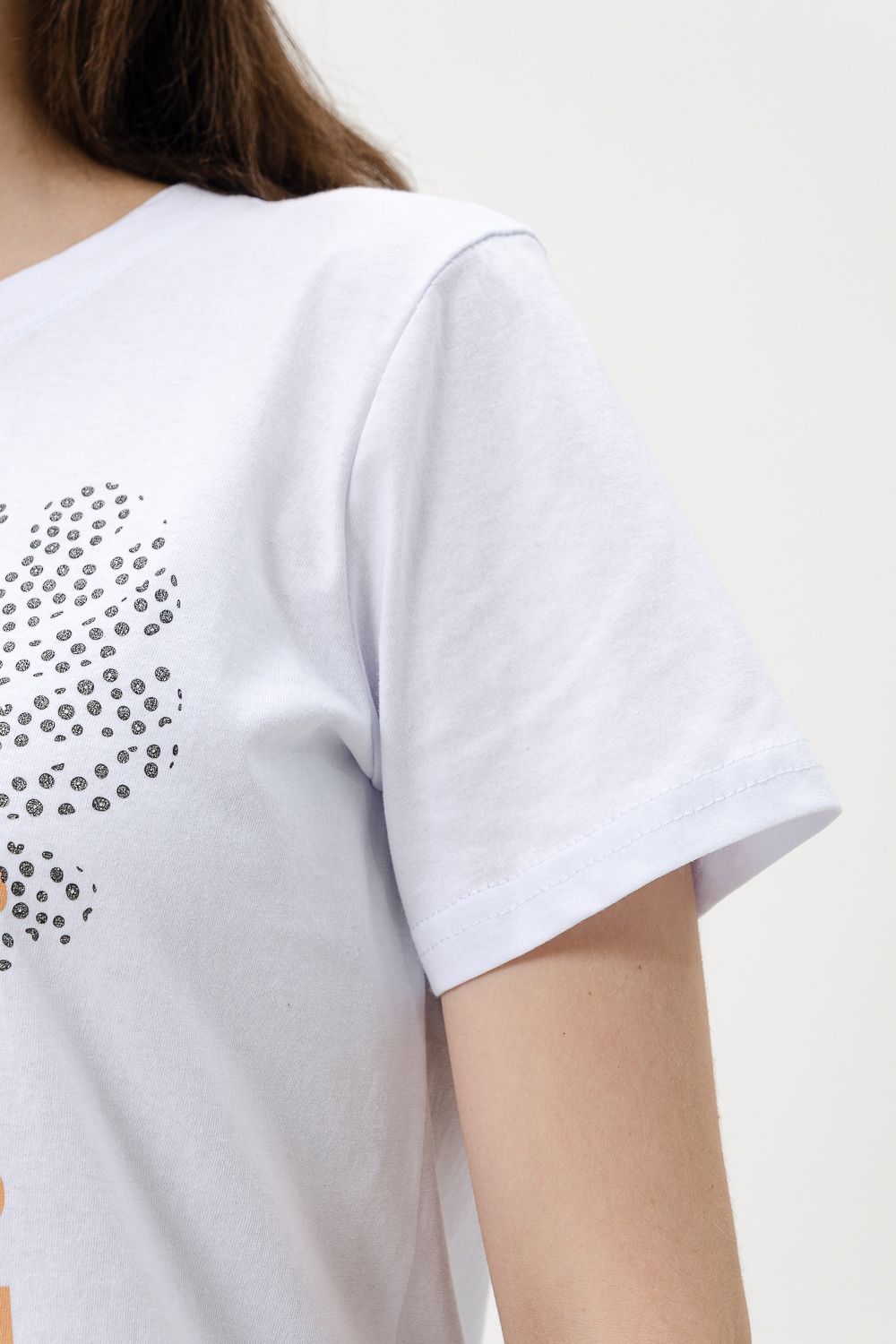 Футболка женская - это классика женского гардероба любой девушки. Это базовая модель с ярким принтом отлично смотрится с джинсами, юбками, брюками. Прямой силуэт, втачной рукав, горловина округлой формы обработана обтачкой из основного полотна.