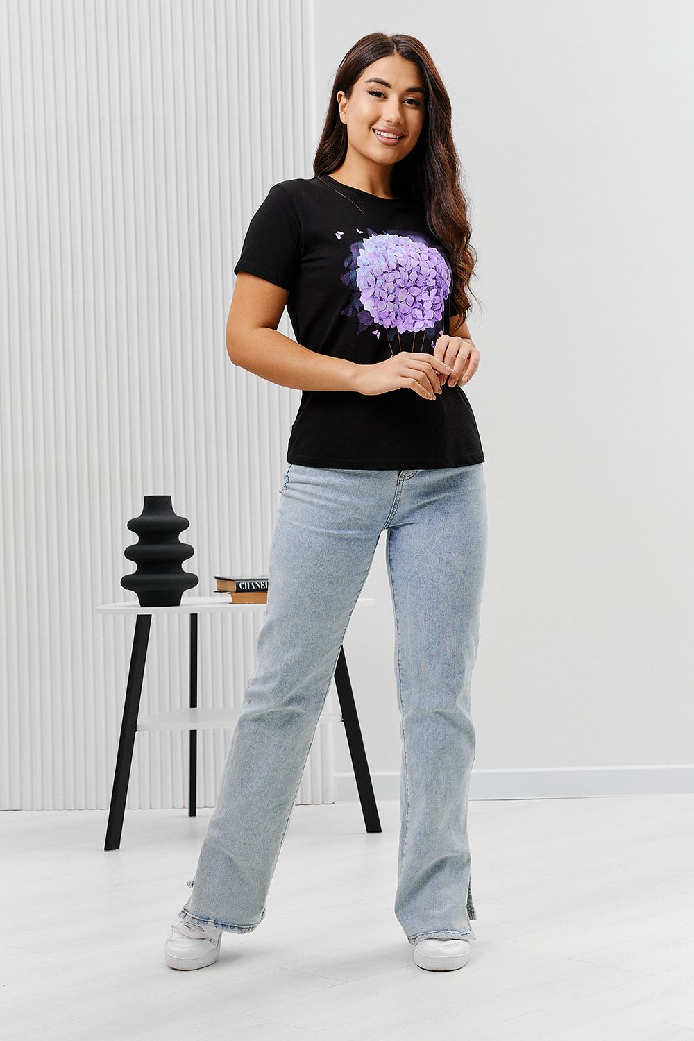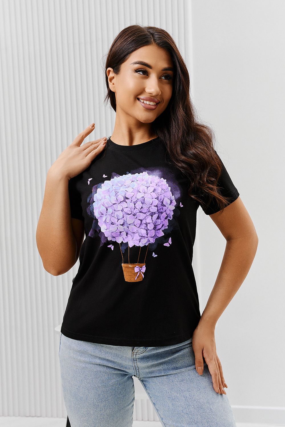 Футболка 67079 - черный+букет