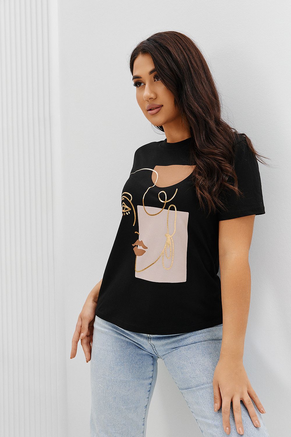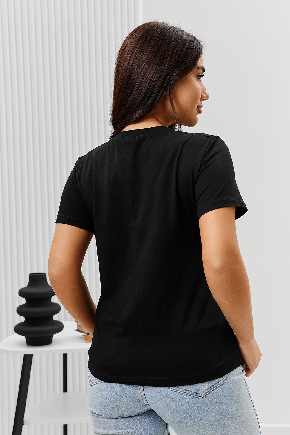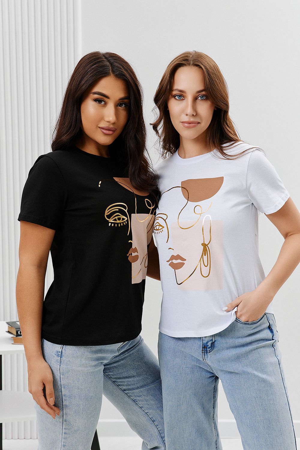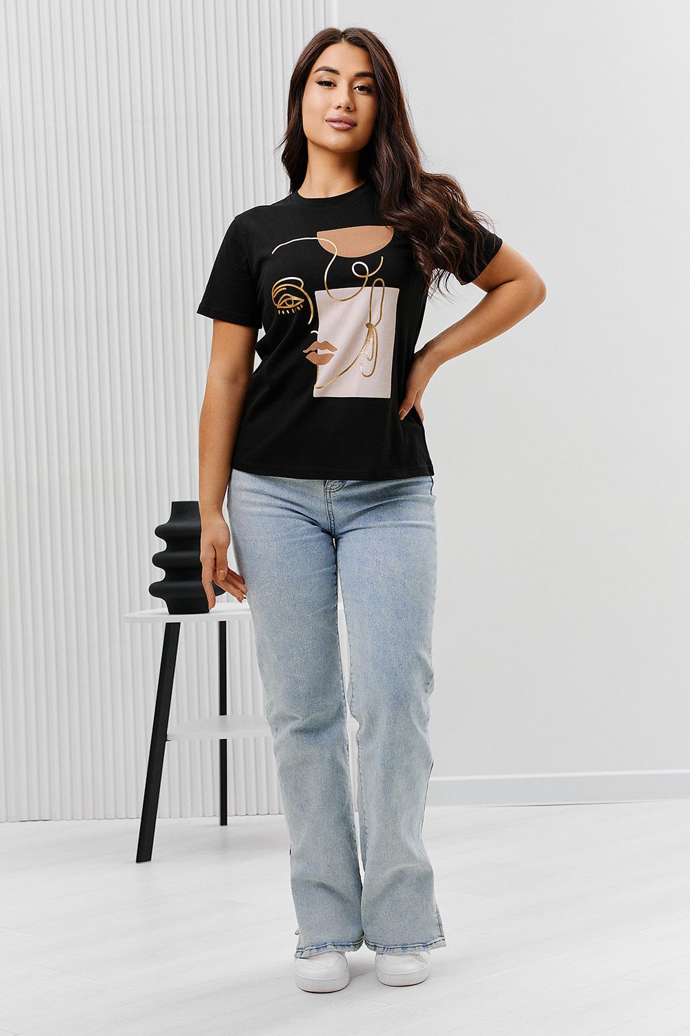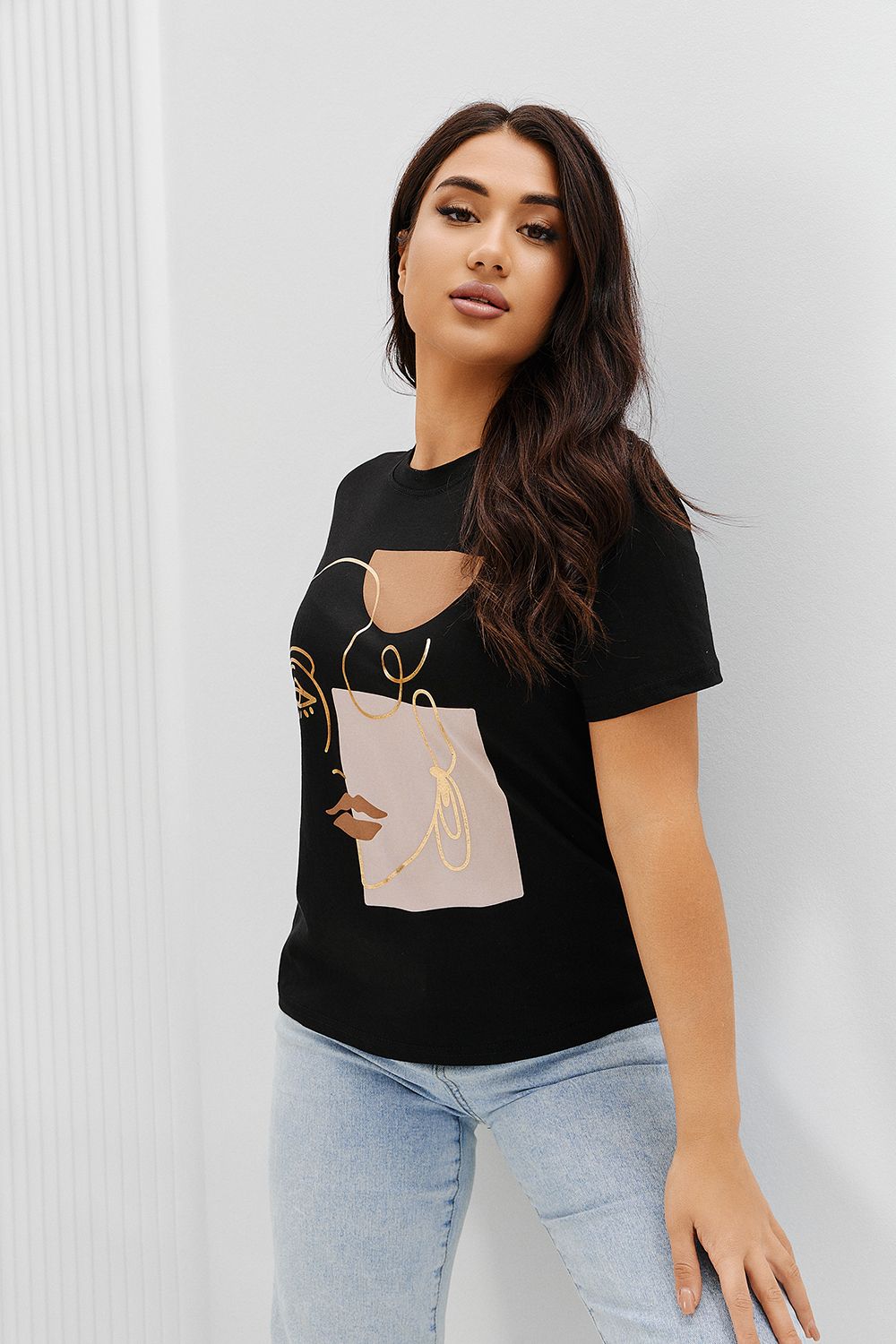 Футболка женская - это классика женского гардероба любой девушки. Это базовая модель с ярким принтом отлично смотрится с джинсами, юбками, брюками. Прямой силуэт, втачной рукав, горловина округлой формы обработана обтачкой из основного полотна.