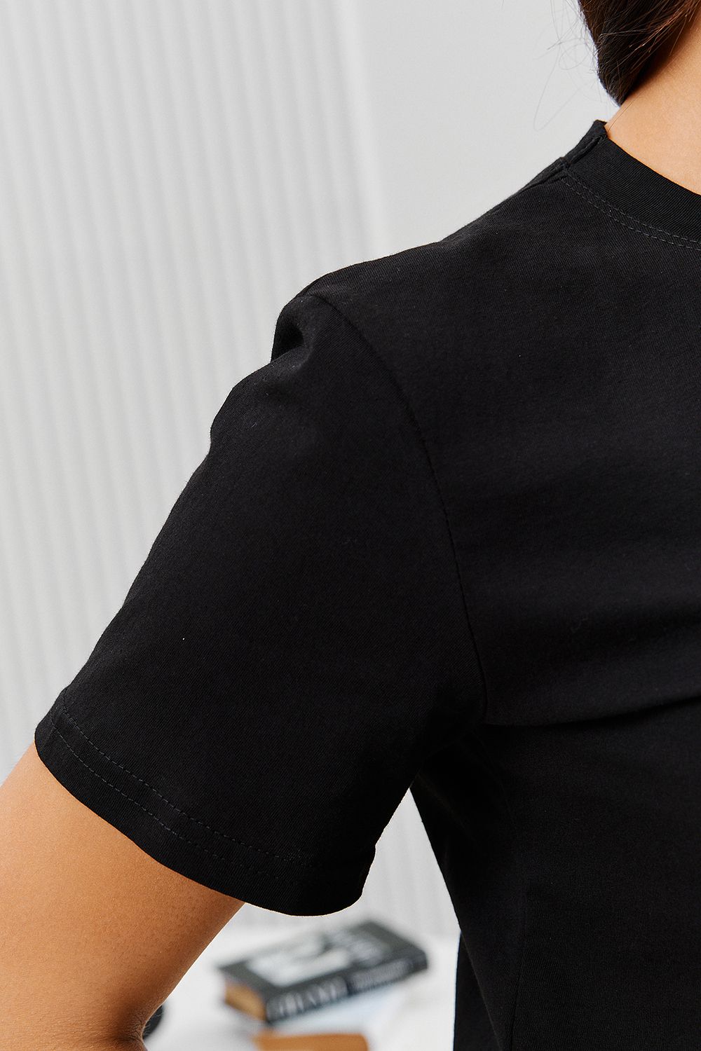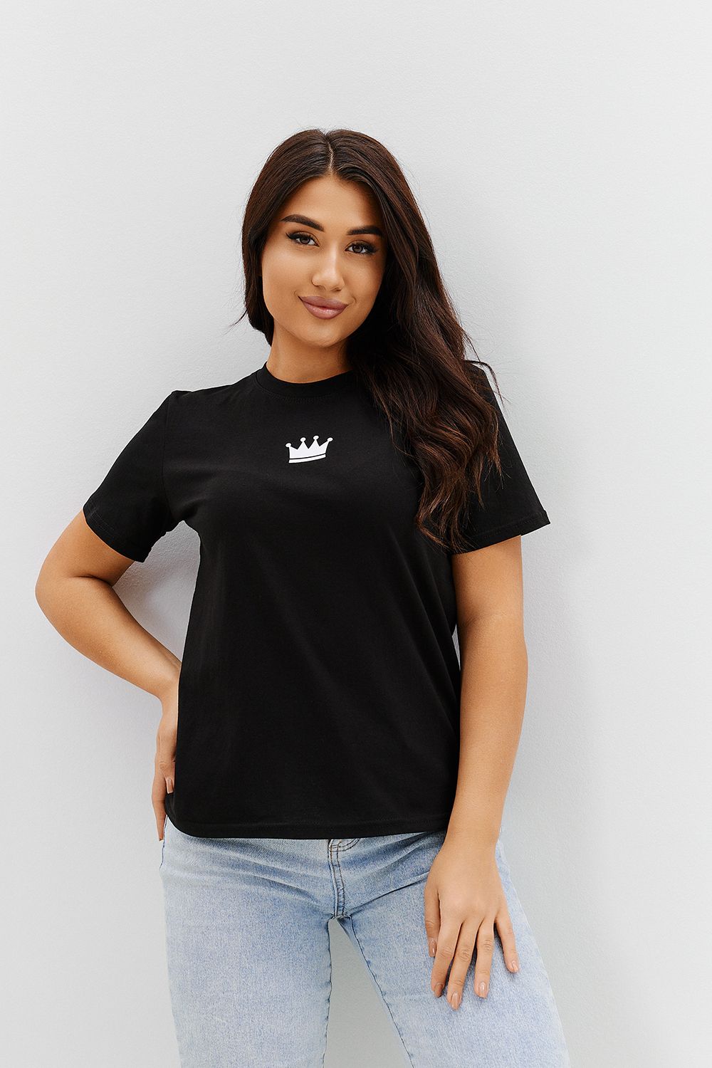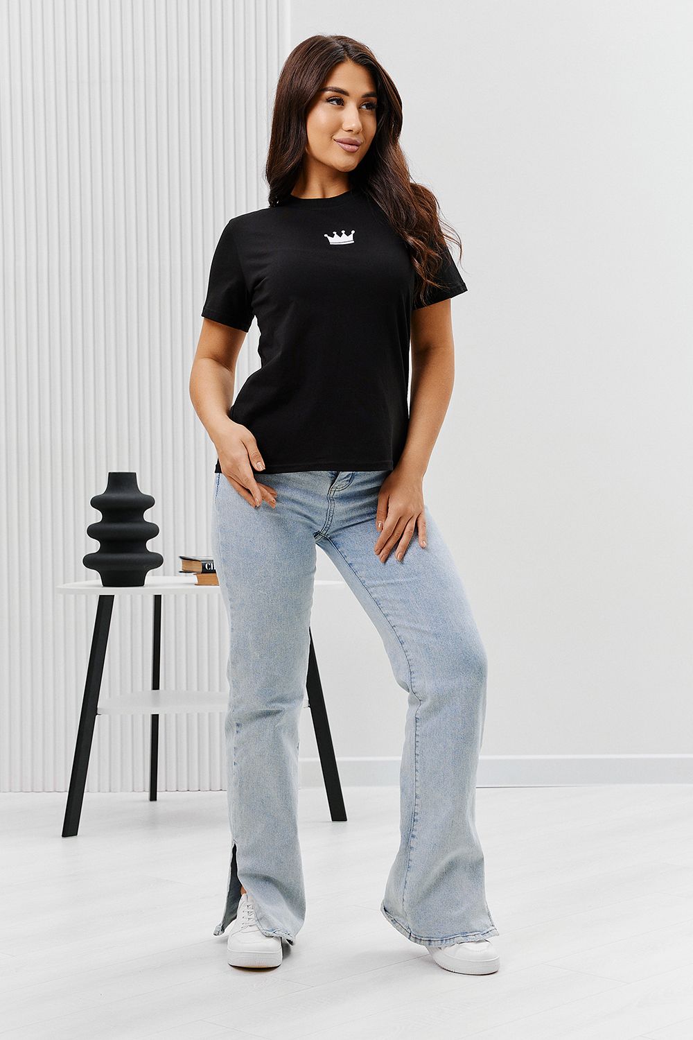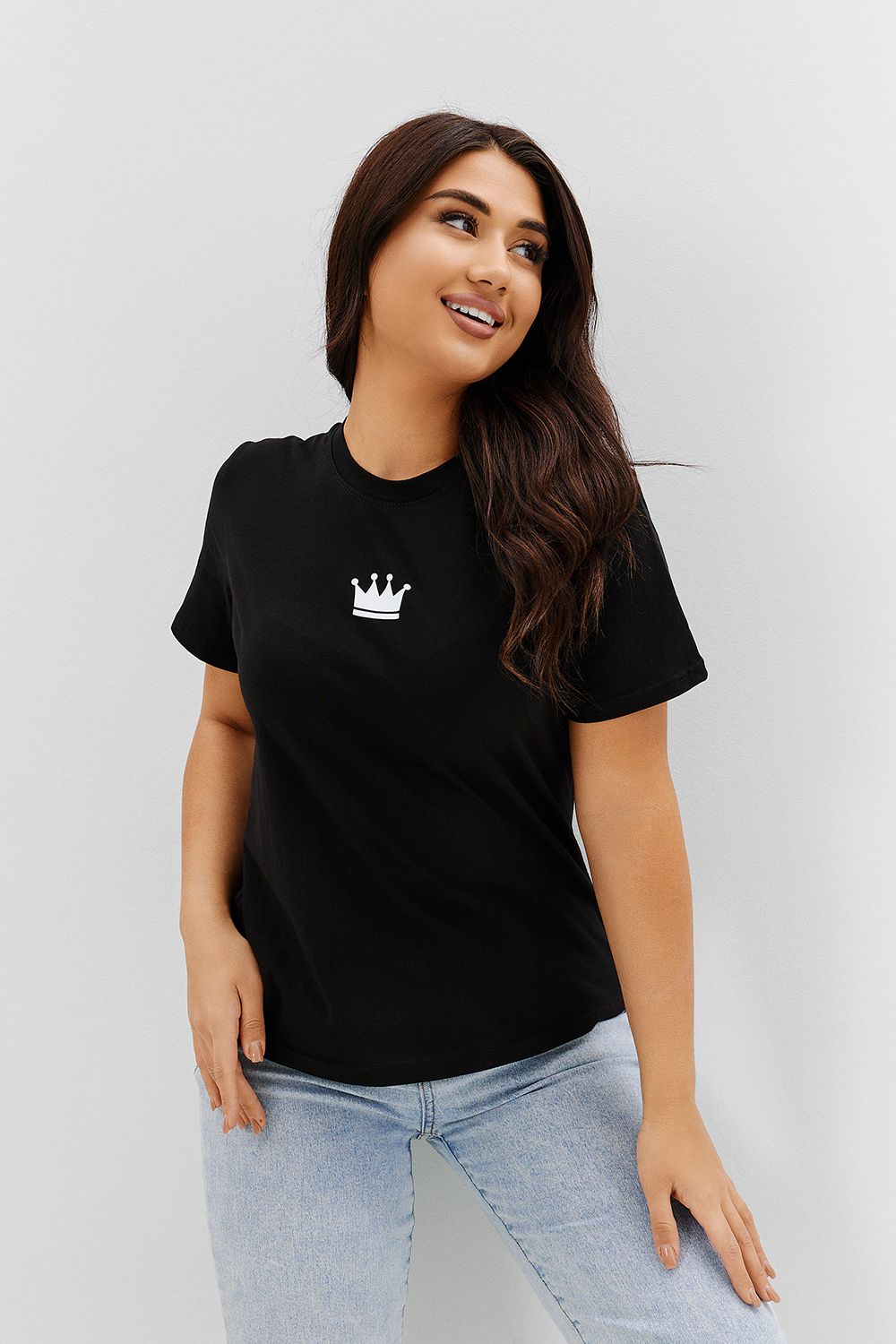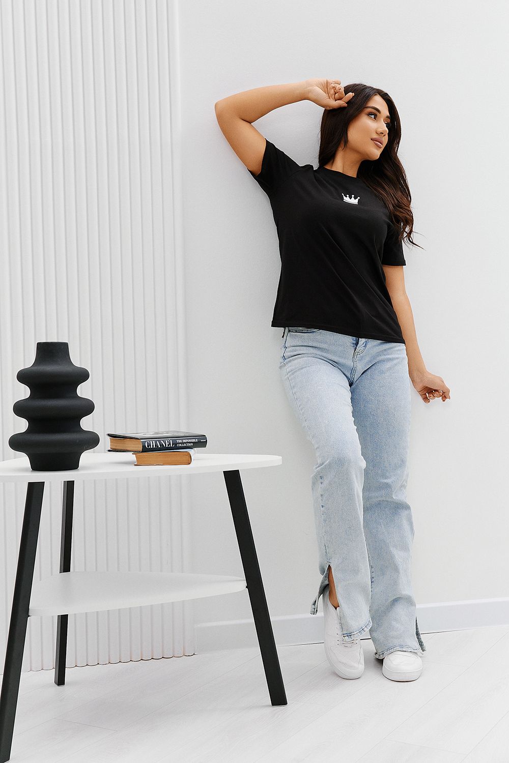 Футболка женская - это классика женского гардероба любой девушки. Это базовая модель с ярким принтом отлично смотрится с джинсами, юбками, брюками. Прямой силуэт, втачной рукав, горловина округлой формы обработана обтачкой из основного полотна.