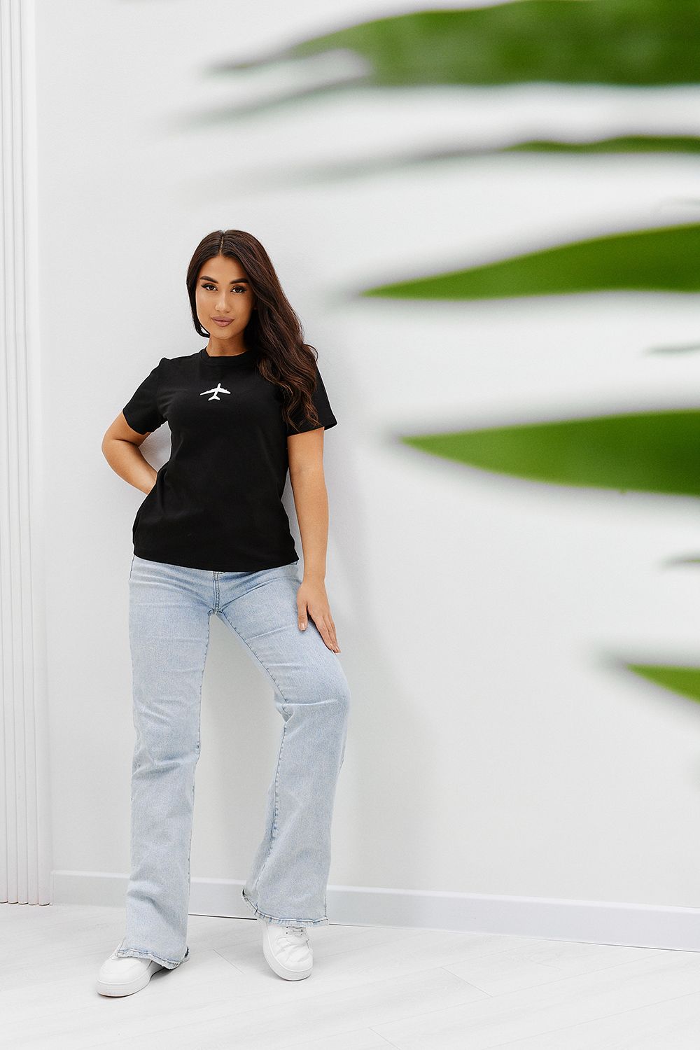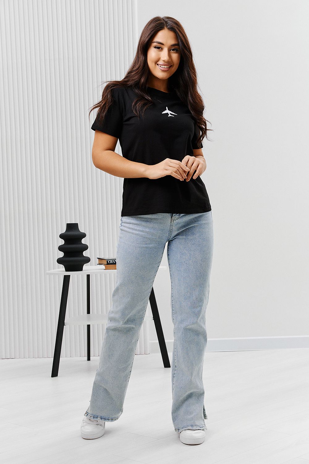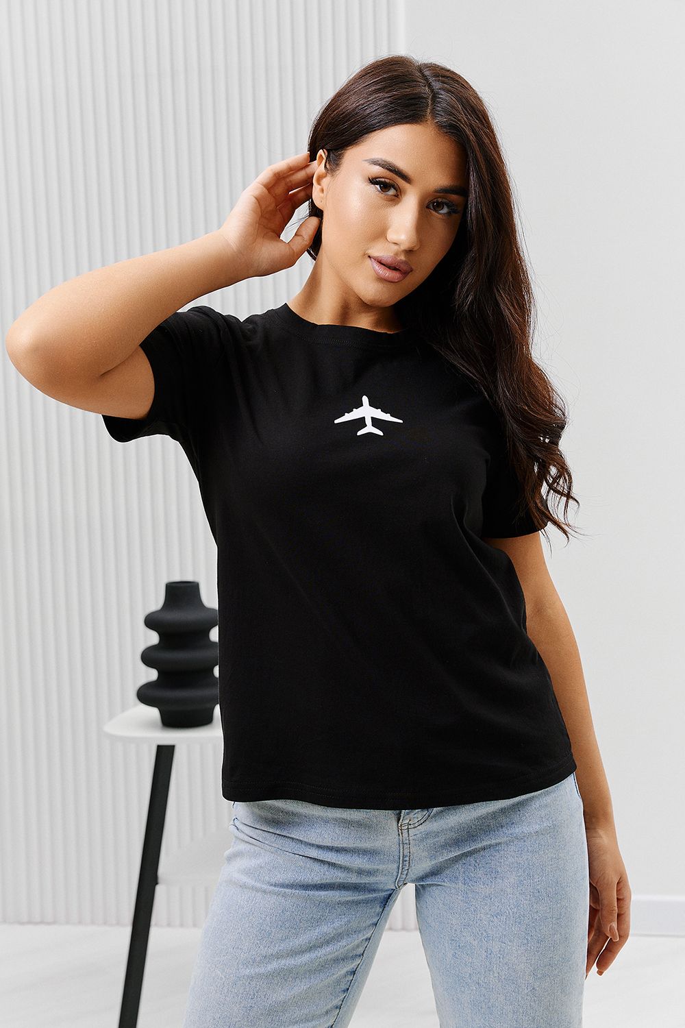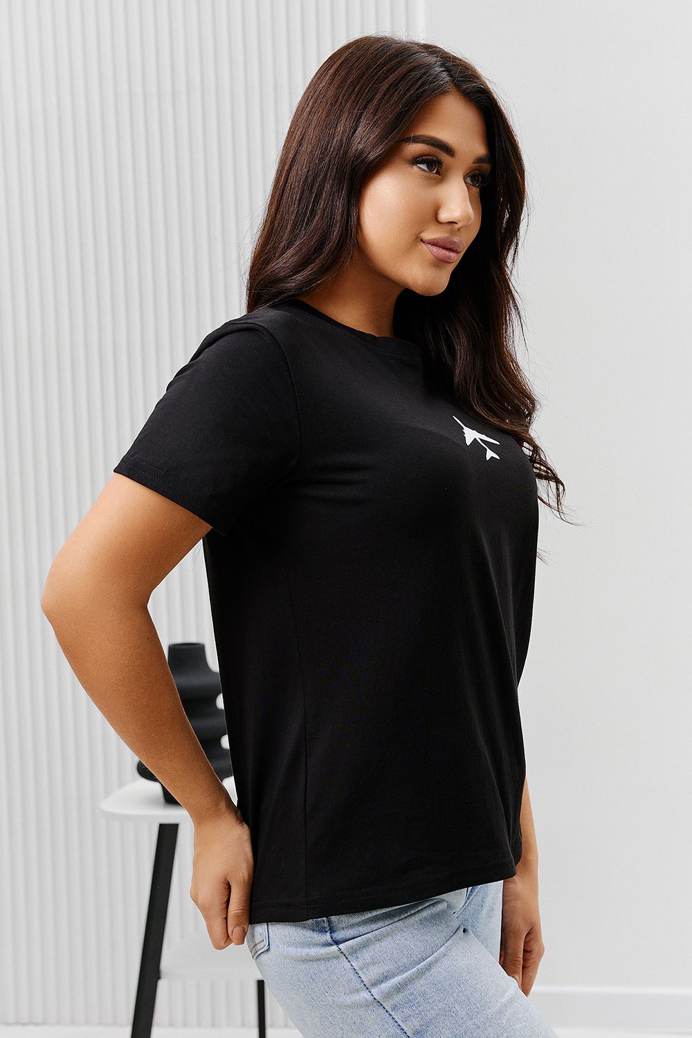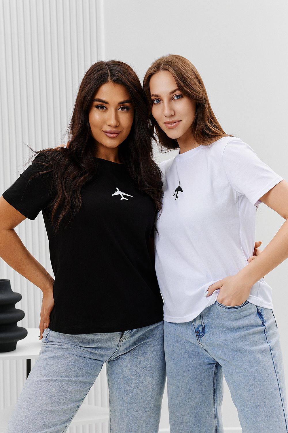 Футболка женская - это классика женского гардероба любой девушки. Это базовая модель с ярким принтом отлично смотрится с джинсами, юбками, брюками. Прямой силуэт, втачной рукав, горловина округлой формы обработана обтачкой из основного полотна.