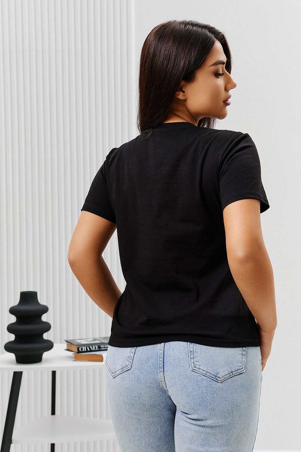 Футболка женская - это классика женского гардероба любой девушки. Это базовая модель с ярким принтом отлично смотрится с джинсами, юбками, брюками. Прямой силуэт, втачной рукав, горловина округлой формы обработана обтачкой из основного полотна.
