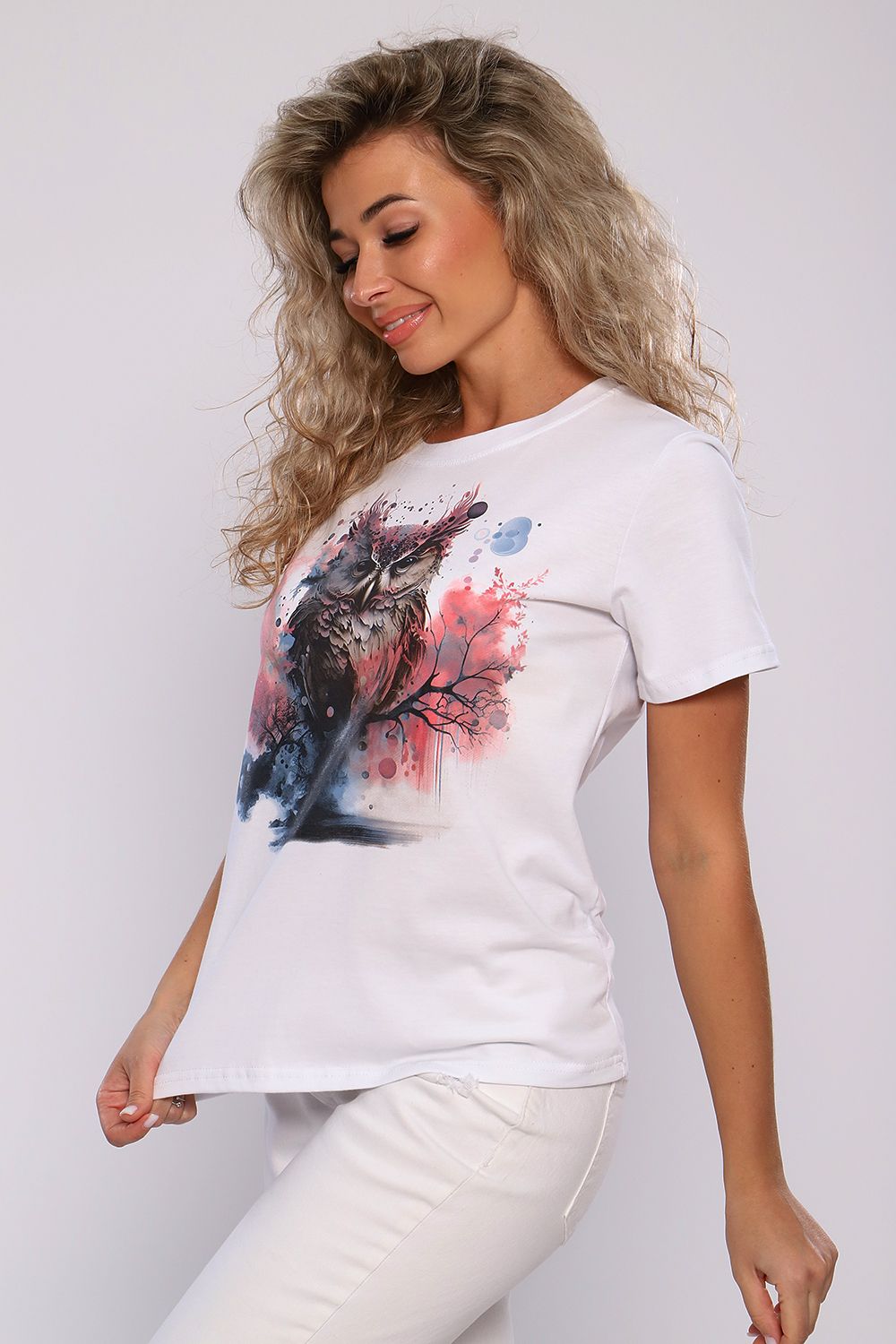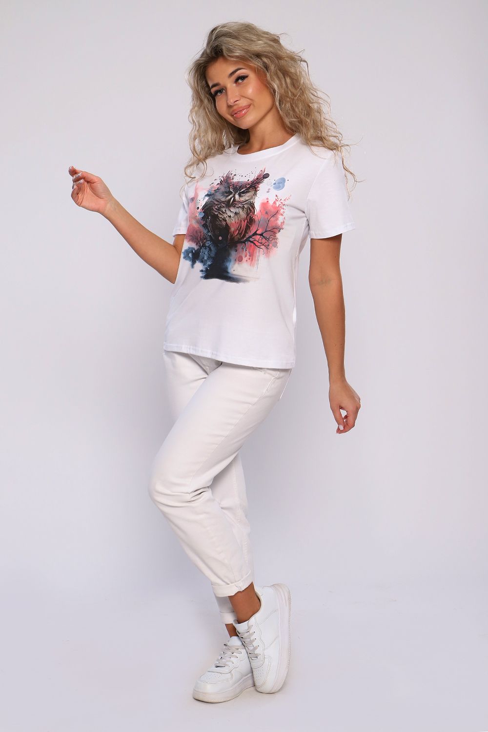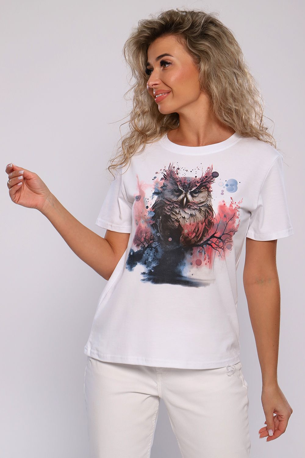 Футболка классического фасона, прямого кроя, с коротким рукавом и округлым вырезом. Декорирована принтом. Универсальная модель футболки отлично подойдет для любого образа и станет необходимой вещью в вашем гардеробе. Ткань кулирка пенье, плотность 160 г.