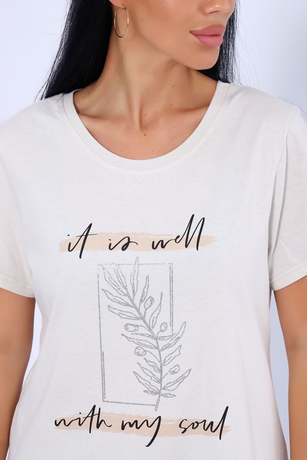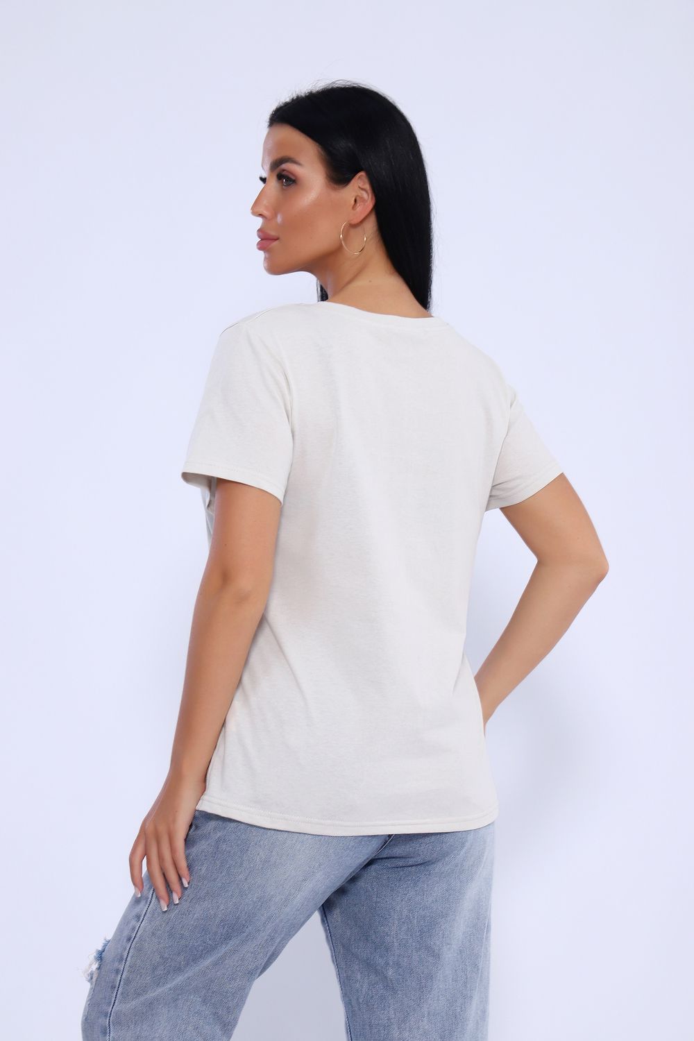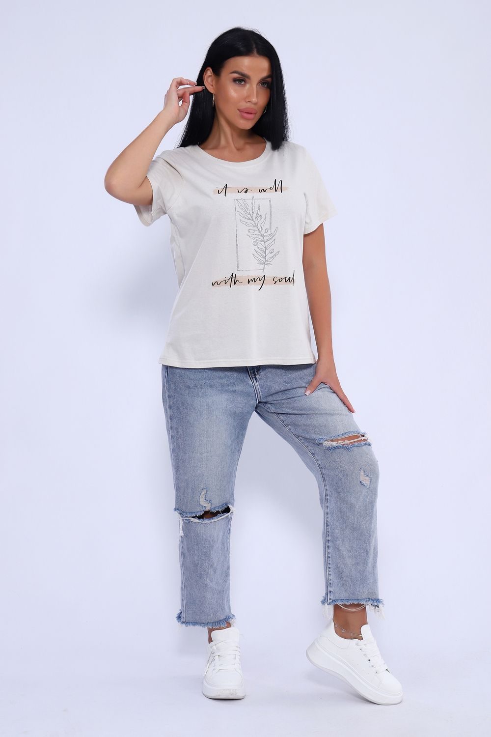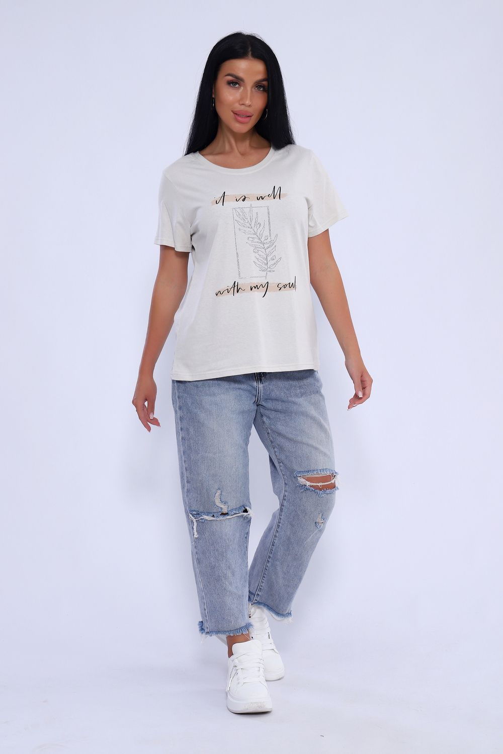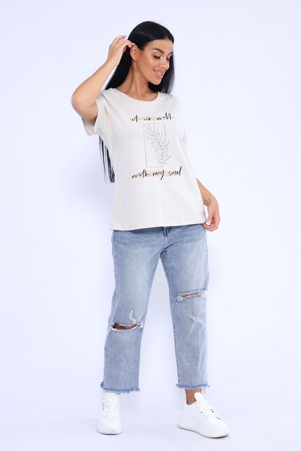 Прекрасный вариант для летнего отдыха и комфортного "лука" на каждый день! Нежные, пастельные расцветки и принт с "французским блеском" придают стиль и шарм. Футболка изготовлена из мягкого 100% хлопка. Фасон приталенный. Горловина обработана обтачкой с последующей отстрочкой. Рукава и низ изделия в подгибку.