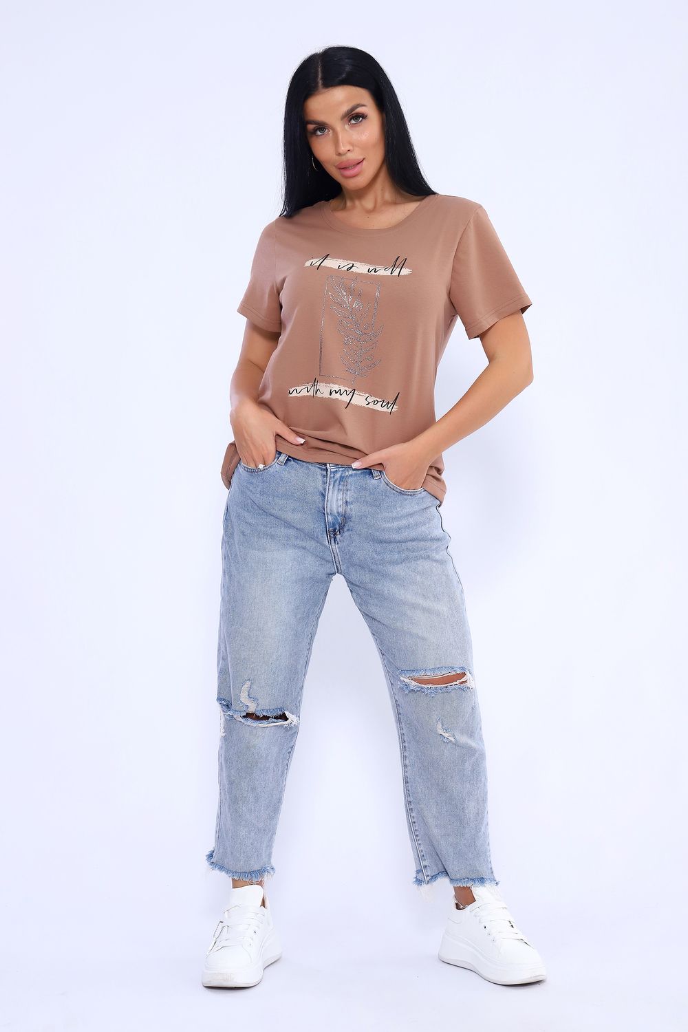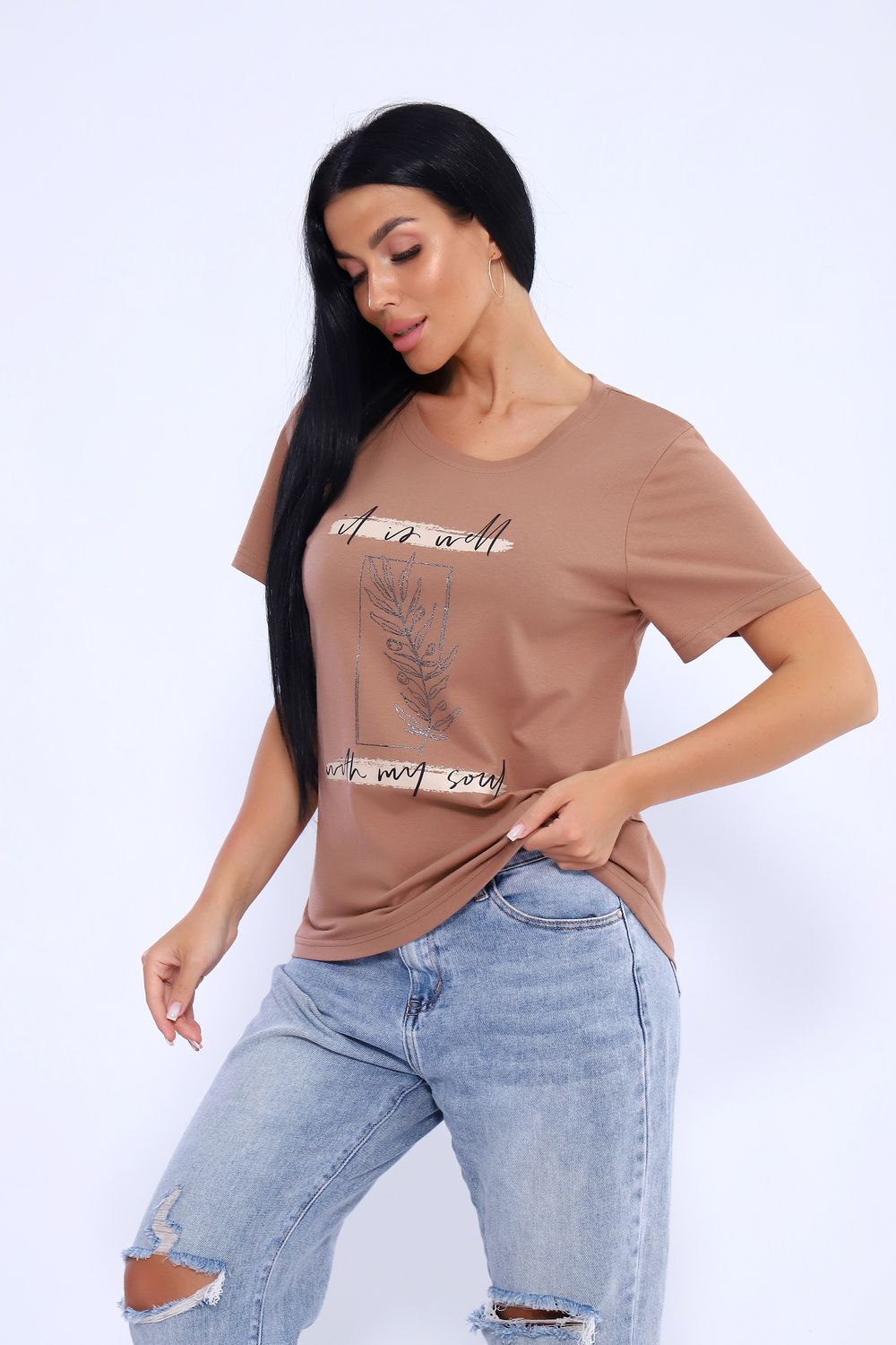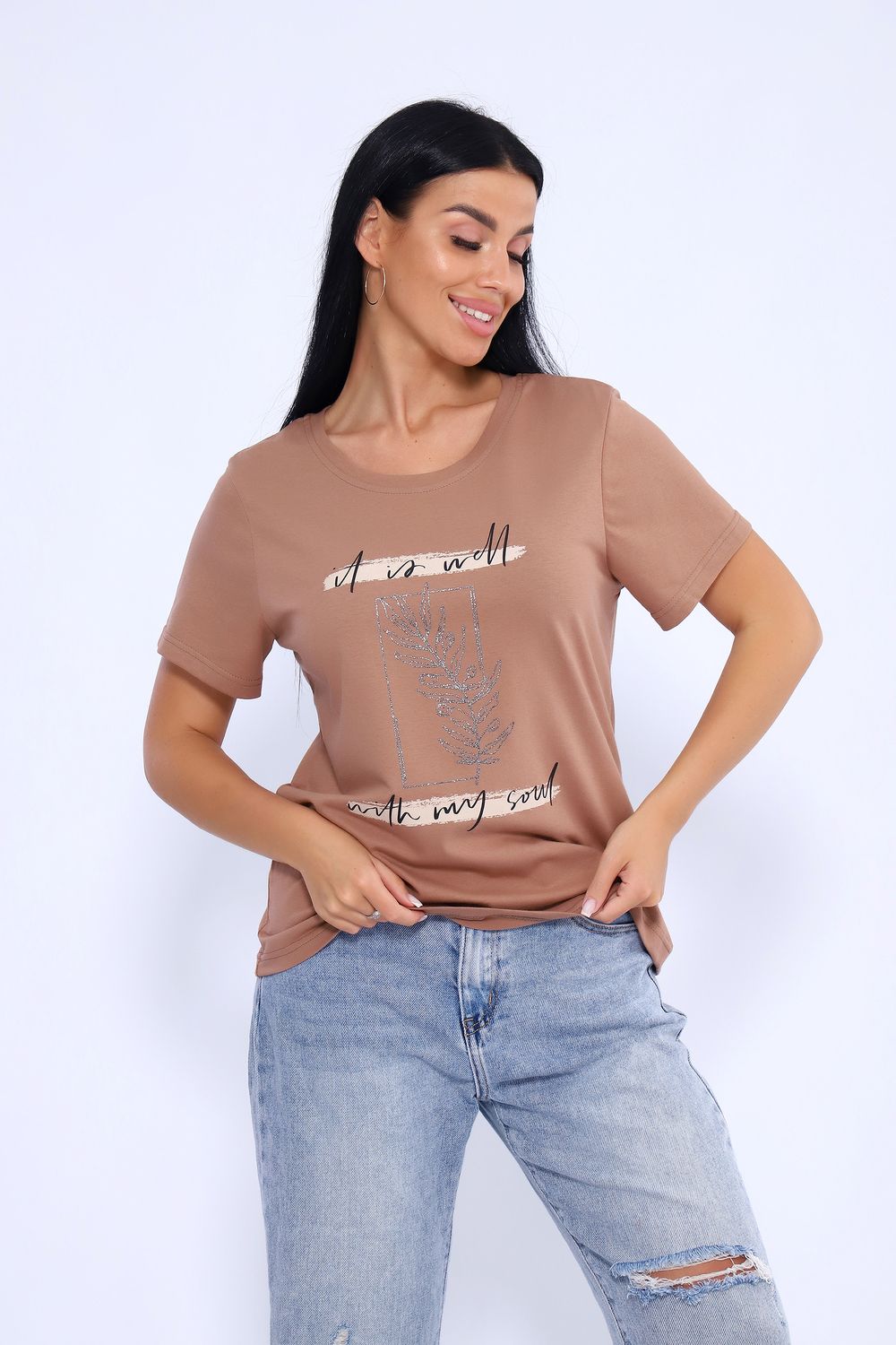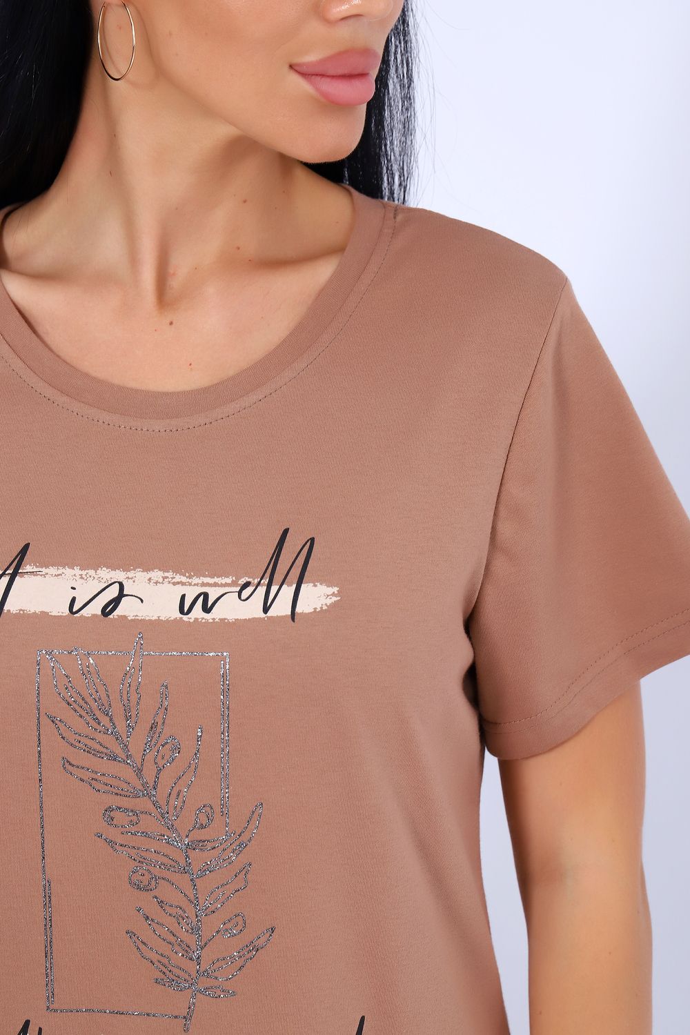 Футболка 80036 - шоколад/серебро
