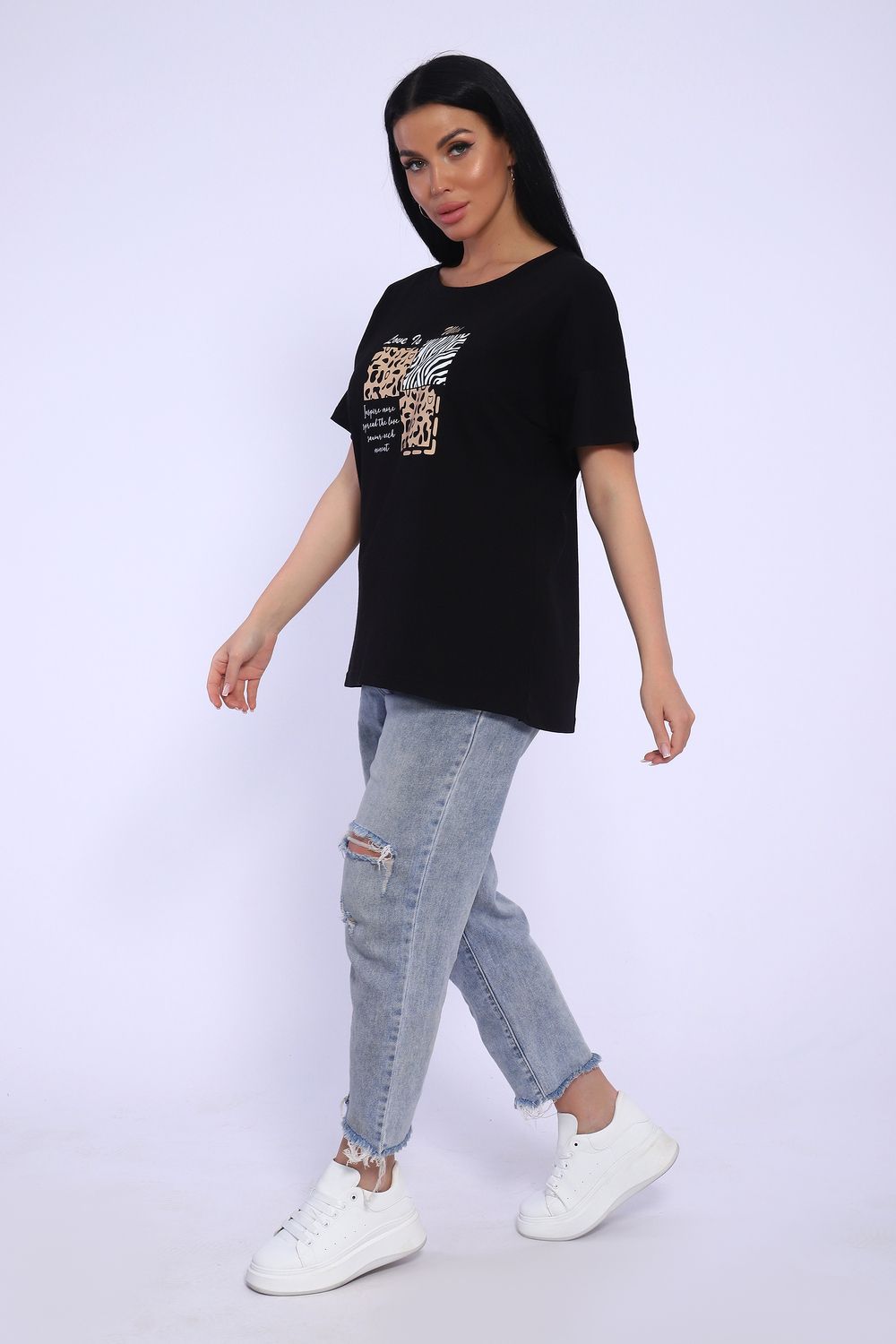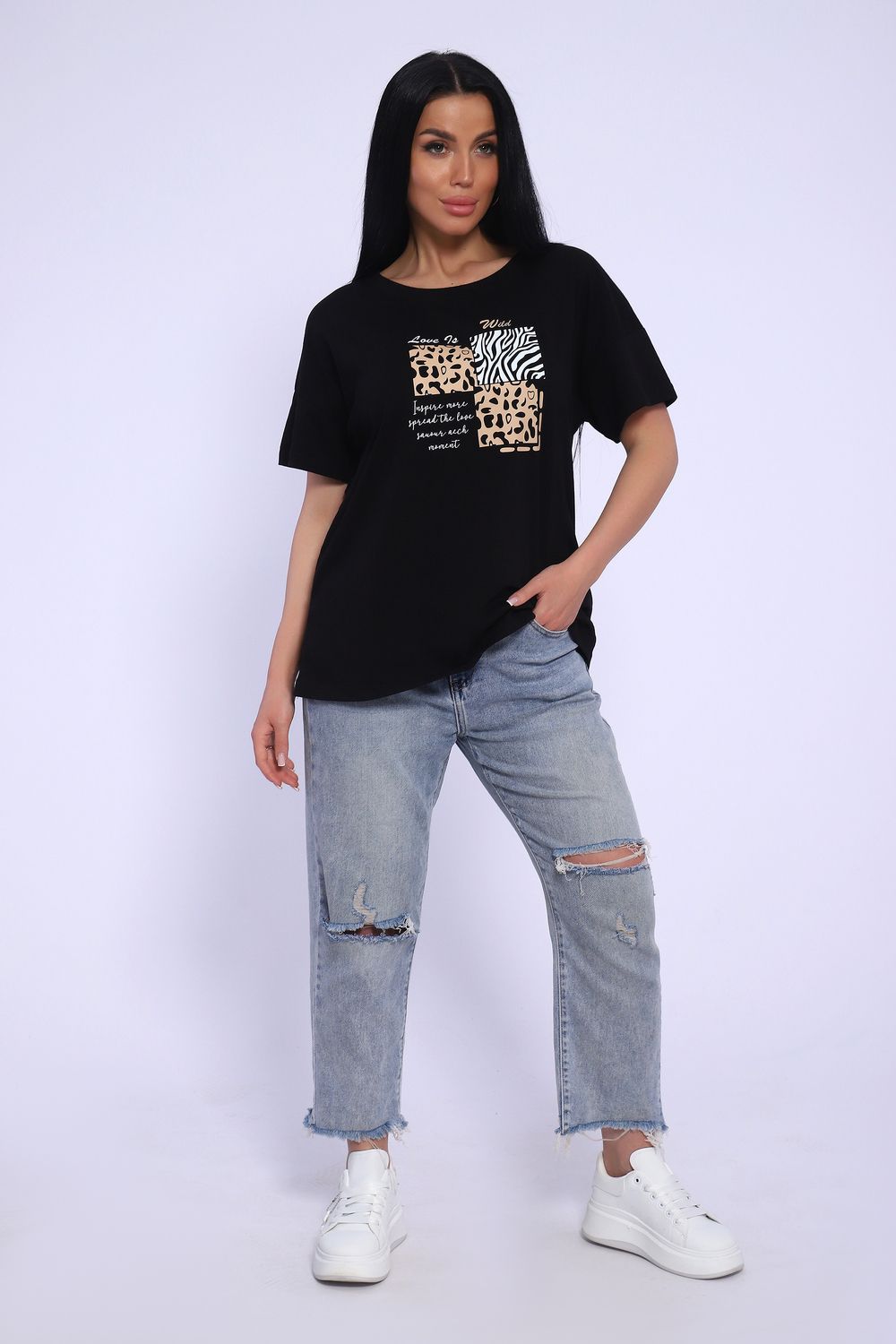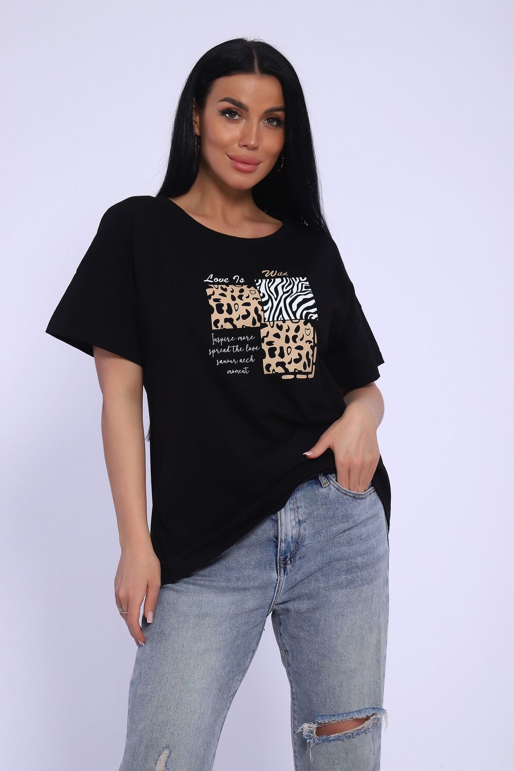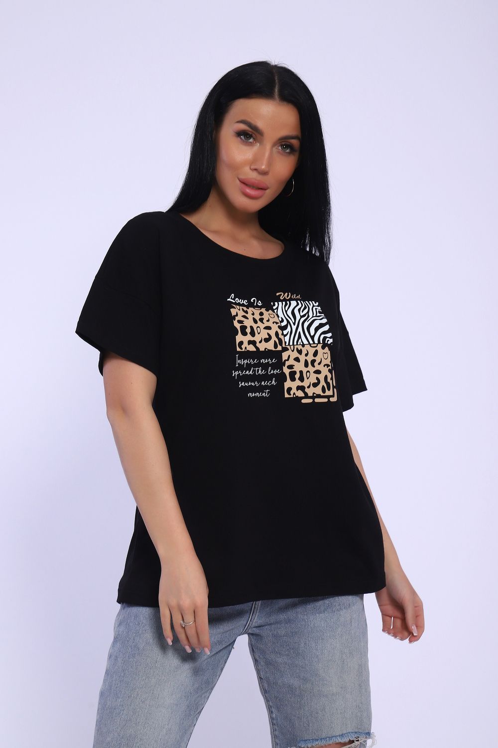Футболка женская с коротким рукавом, со спущенным плечом, в стиле оверсайз. Данная модель выполнена из трикотажного полотна кулирка (хлопок). Это модель станет незаменимой частью гардероба, отлично подойдет для повседневной носки, для прогулок и отдыха.