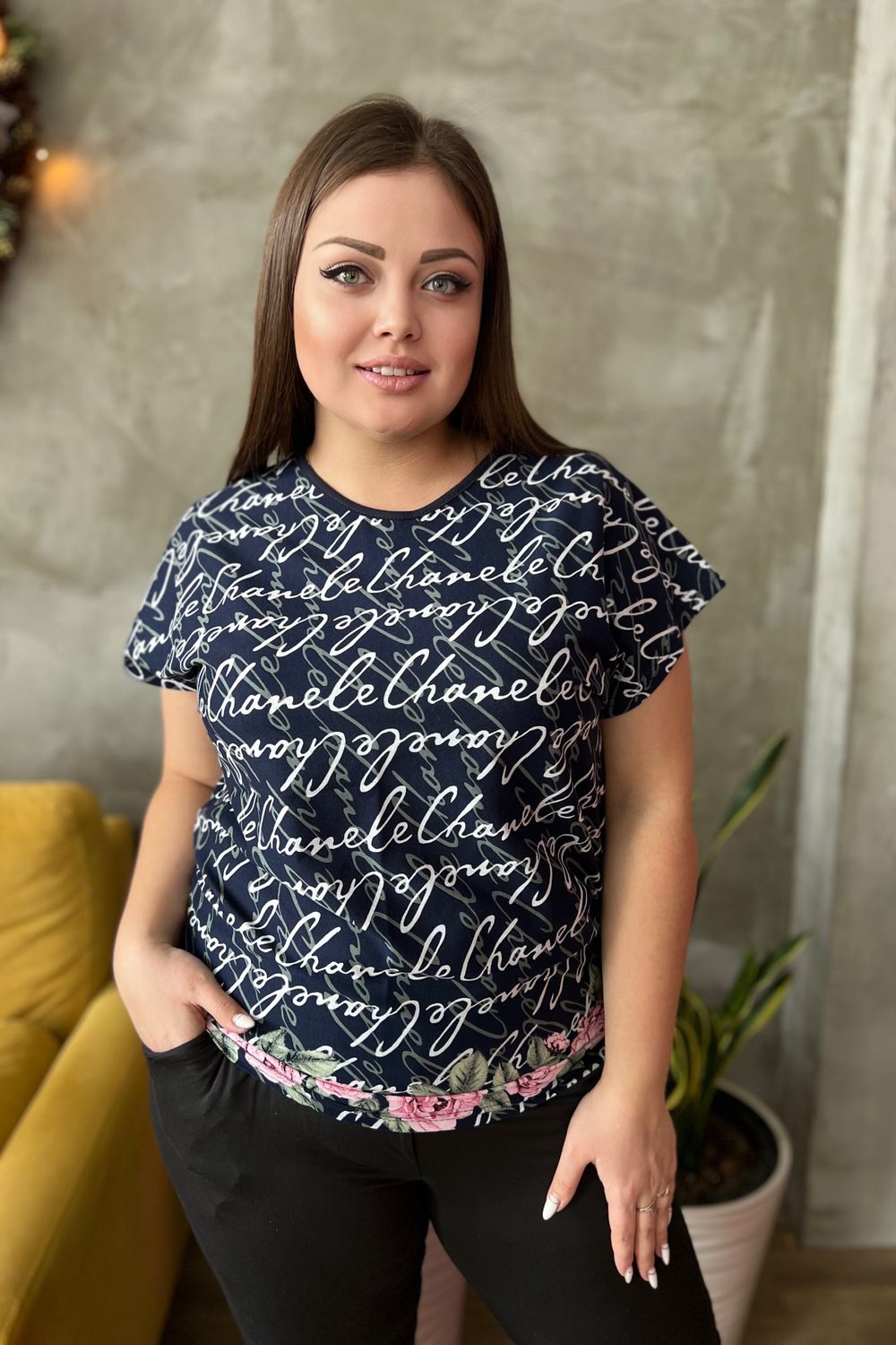 Футболка женская прямого силуэта с цельнокроенным коротким рукавом. Горловина круглая.