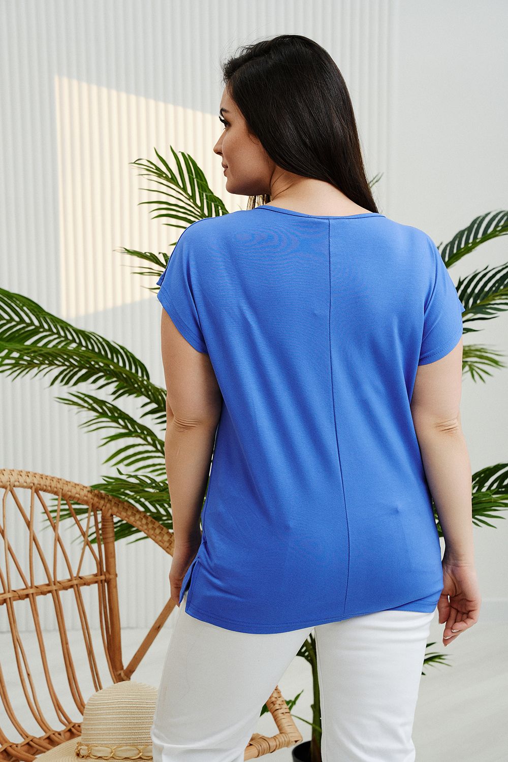Футболка женская прямого силуэта с разрезами в боковом шве. Y-образный вырез горловины. Рукав цельнокроенный короткий. На полочке стильный принт.