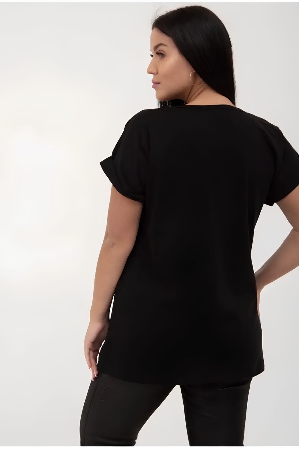 Футболка без рисунка с отворотами на рукавах, хлопок 100%, Арт. 561 - черный