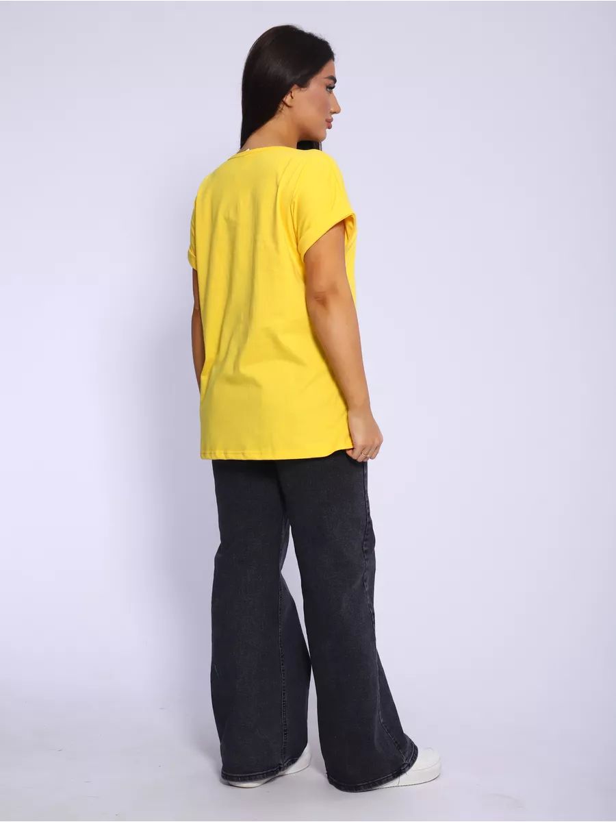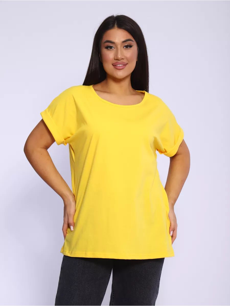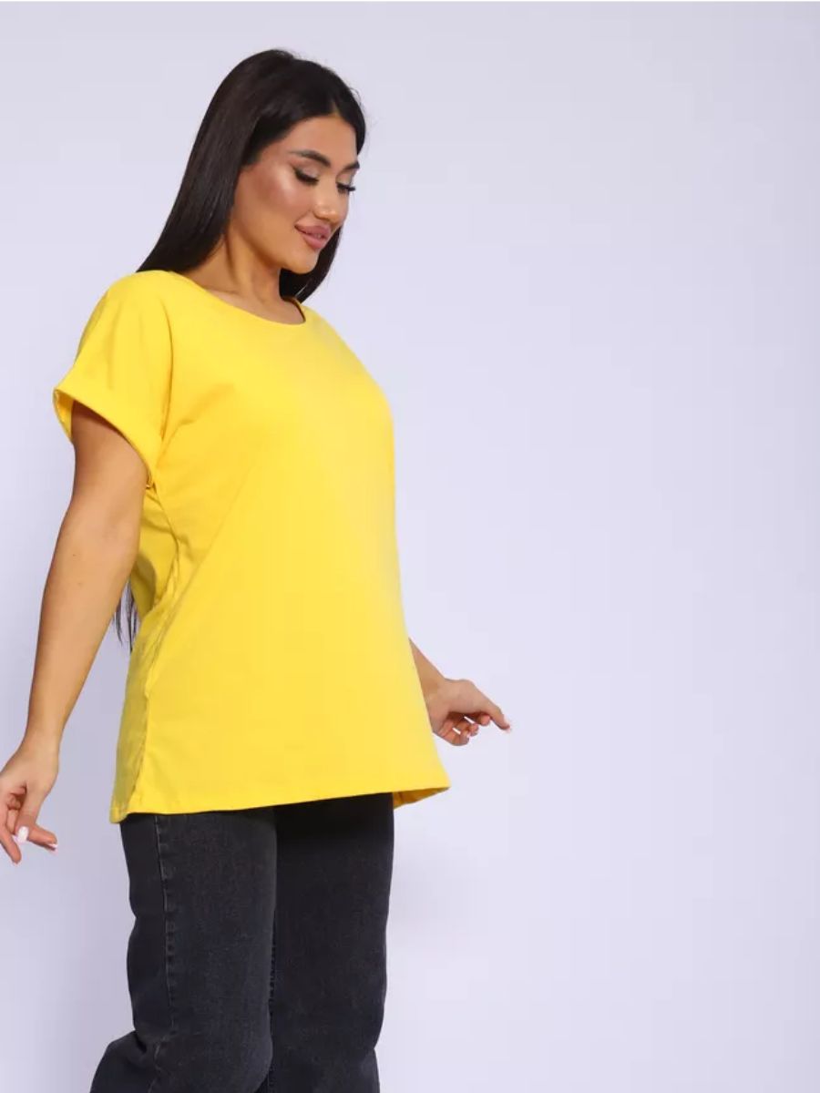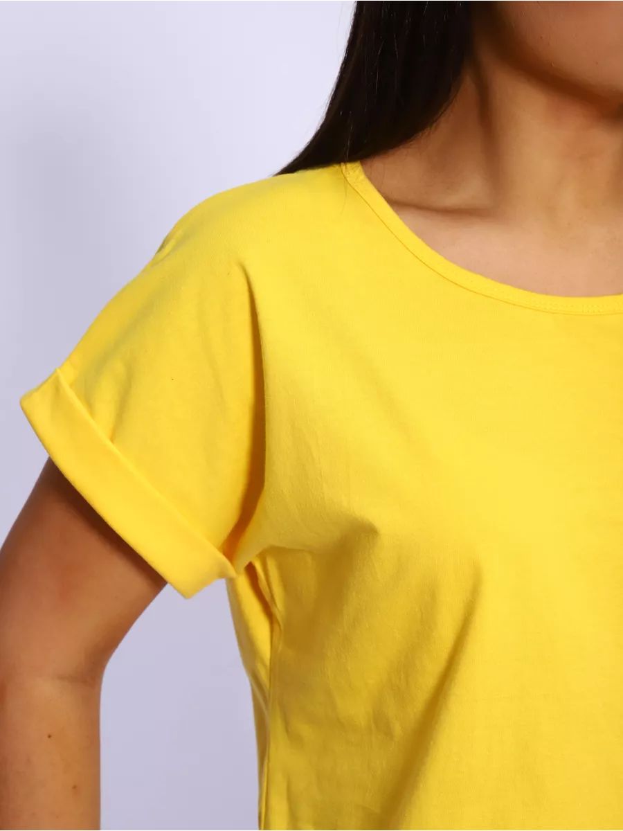 Футболка без рисунка с отворотами на рукавах, хлопок 100%, Арт. 561 - желтый