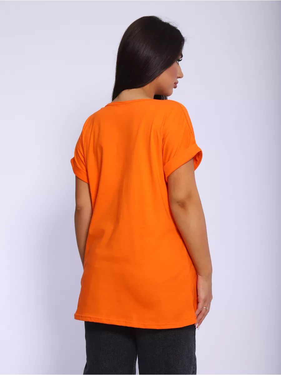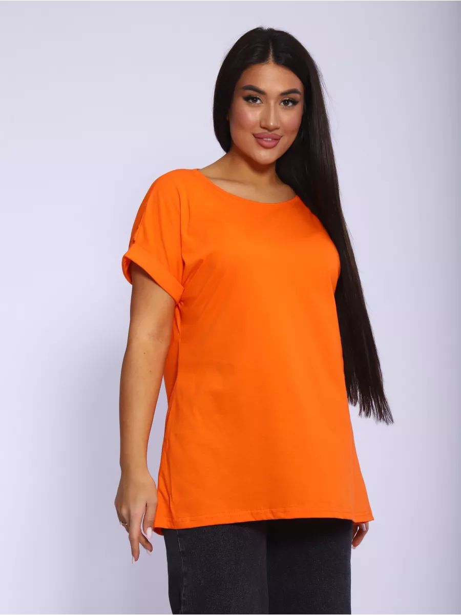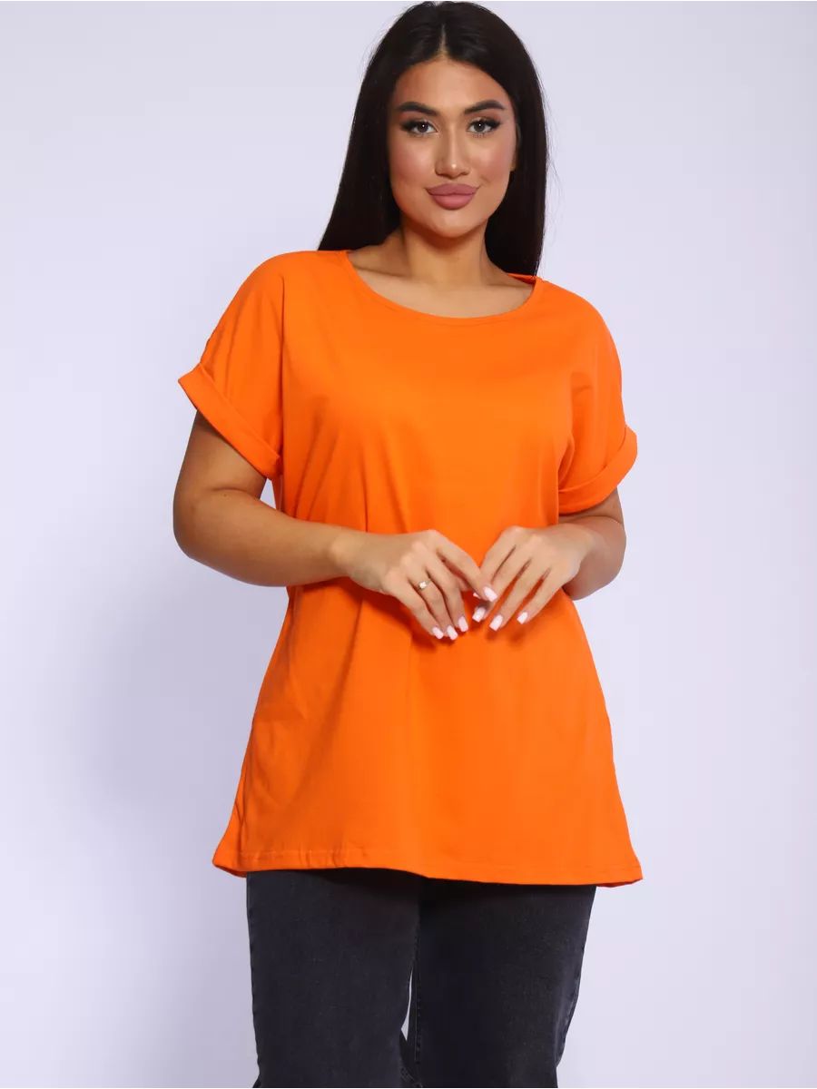 Футболка без рисунка с отворотами на рукавах, хлопок 100%, Арт. 561 - оранжевый