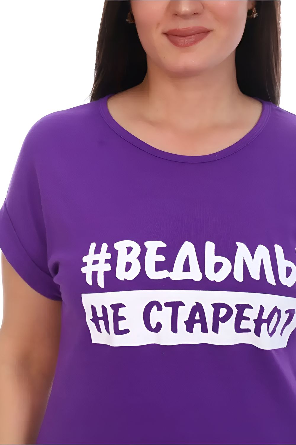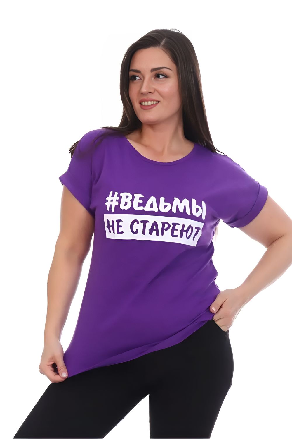 Футболка хлопок с отворотами и надписью "Ведьмы не стареют". Арт. 720 - фиолетовый