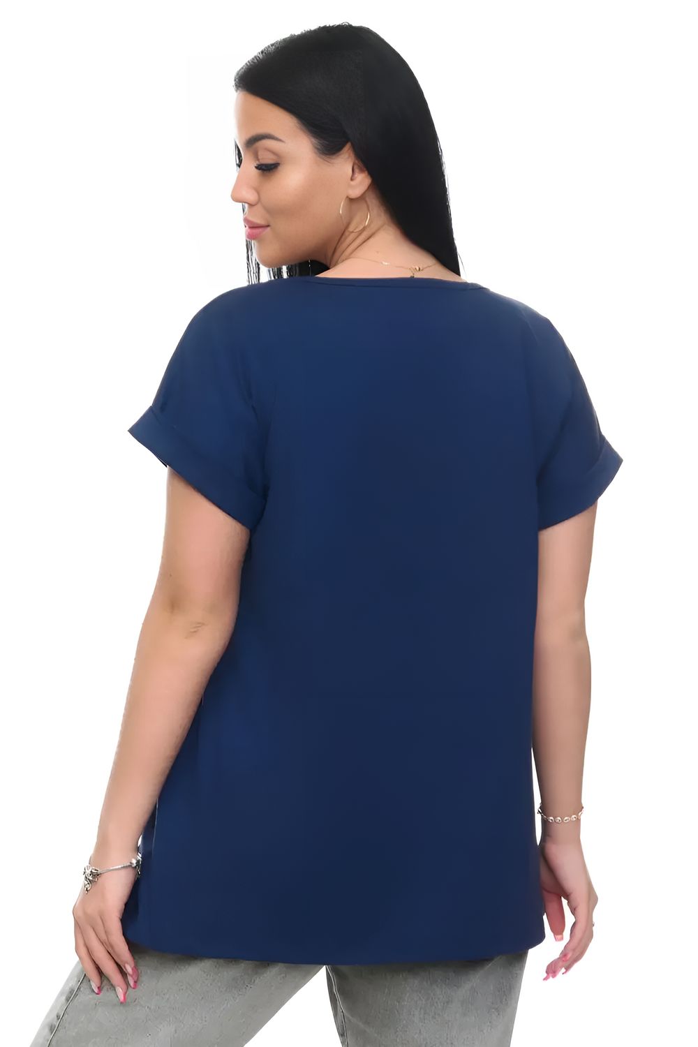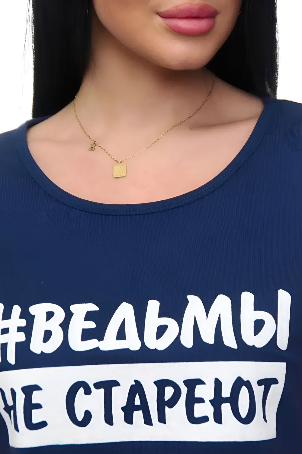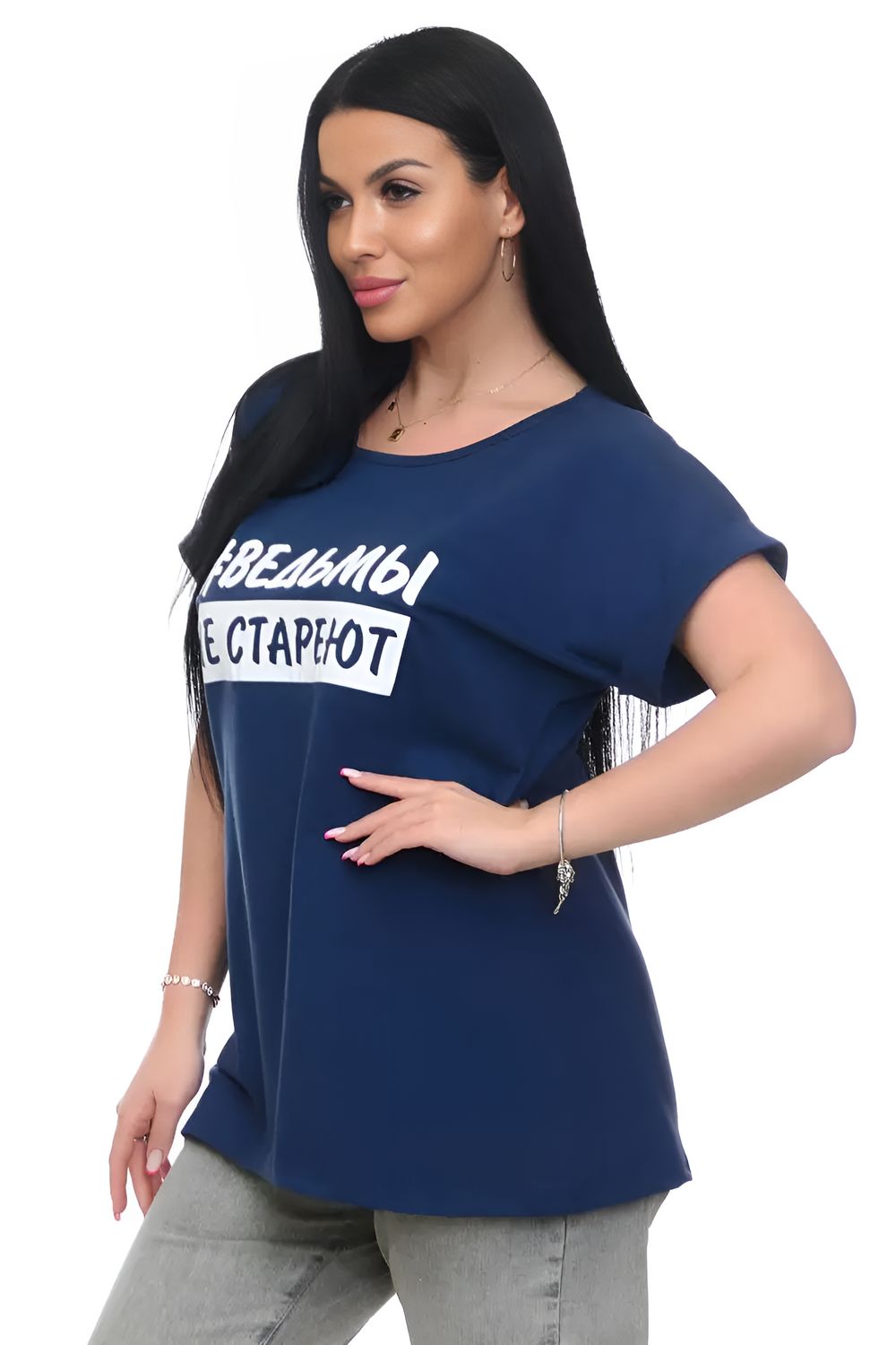 Футболка хлопок с отворотами и надписью "Ведьмы не стареют". Арт. 720 - индиго