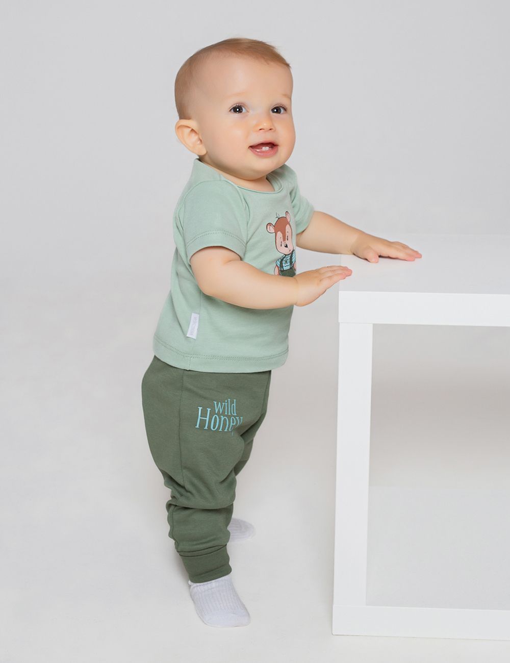 Футболка из коллекции «Одди» предназначена для новорожденных и малышей, выполнена из интерлока (100% хлопок), материал средней плотности, нежный и эластичный, пропускает воздух и сохраняет тепло. Застежка на плече позволит в считанные секунды переодеть малыша. Стильный принт, нанесённый методом шелкографии на ткани. Модель будет идеально сочетаться со штанишками из одноимённой коллекции.