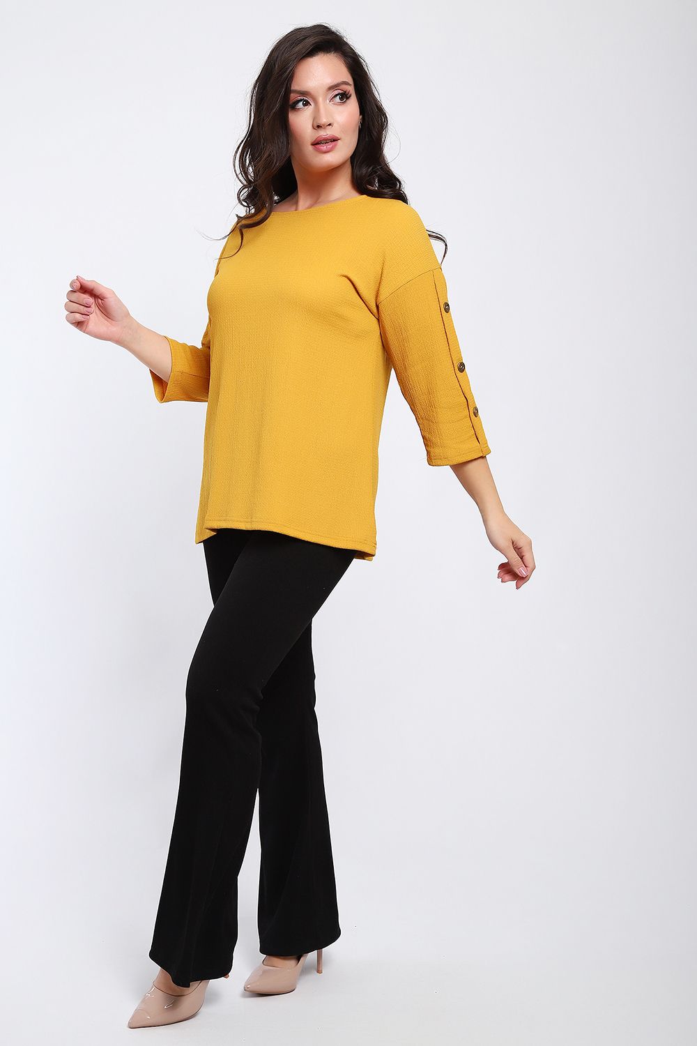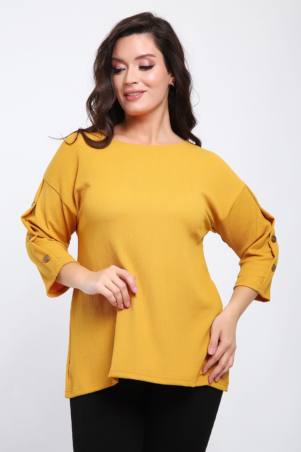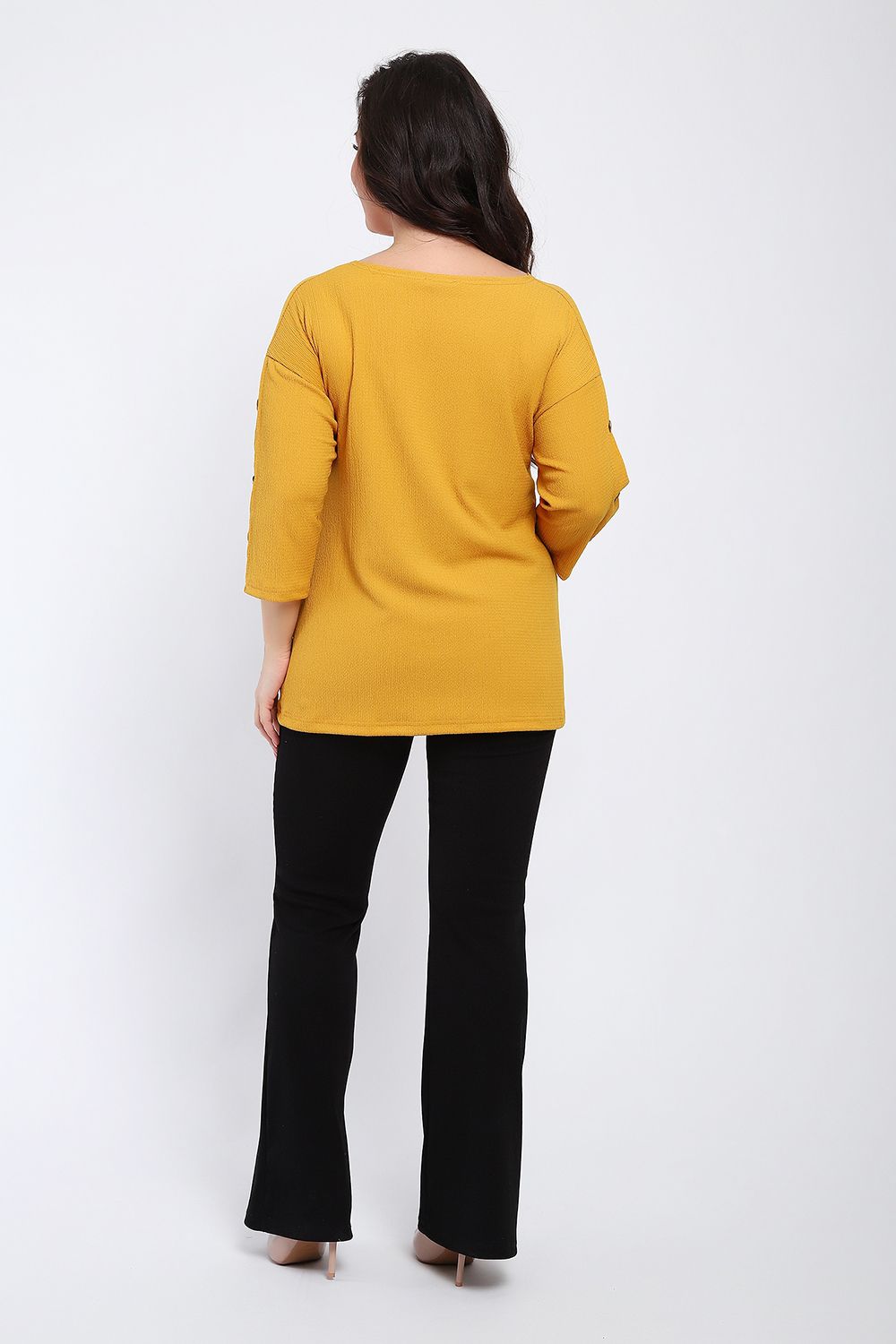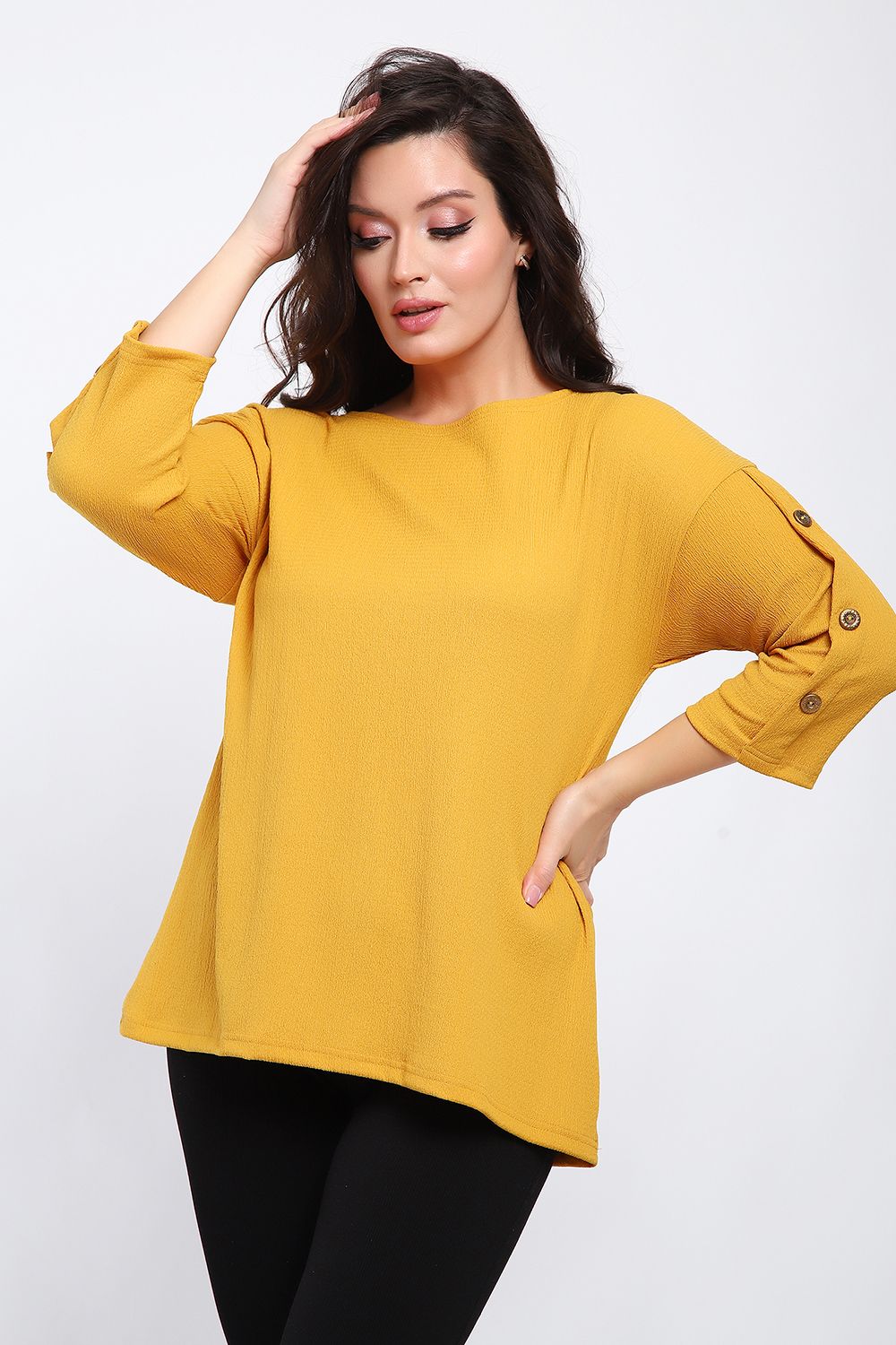 Футболка женская свободного прилегания с рукавами 3/4, украшенная пуговицами на рукавах.