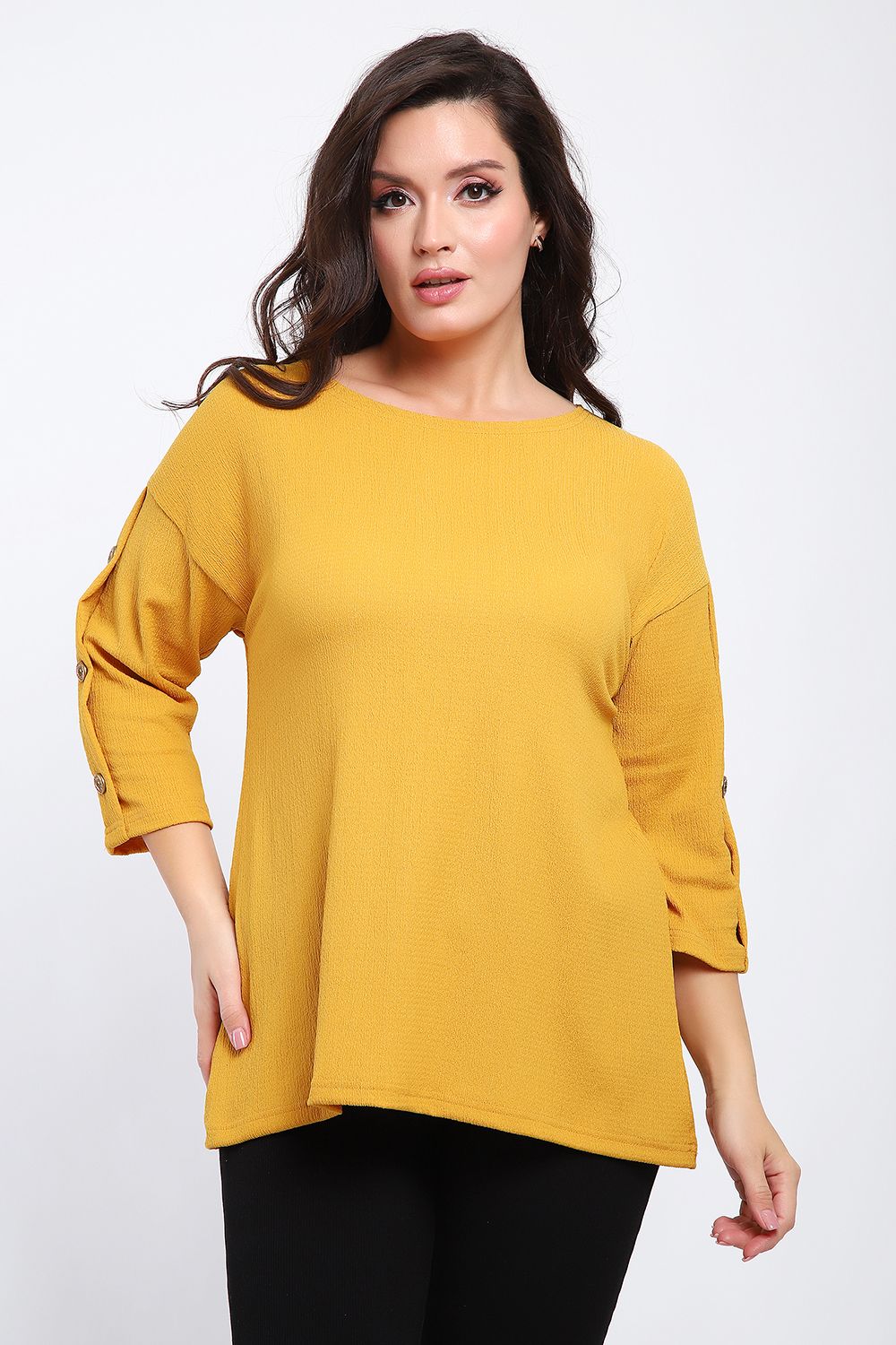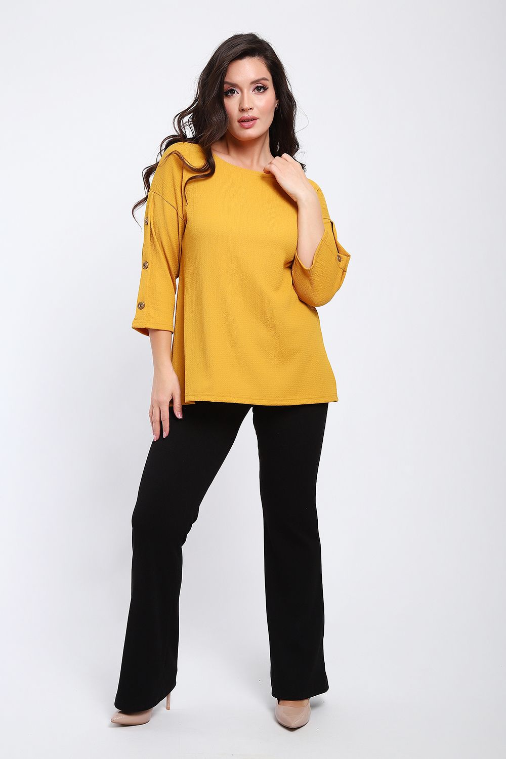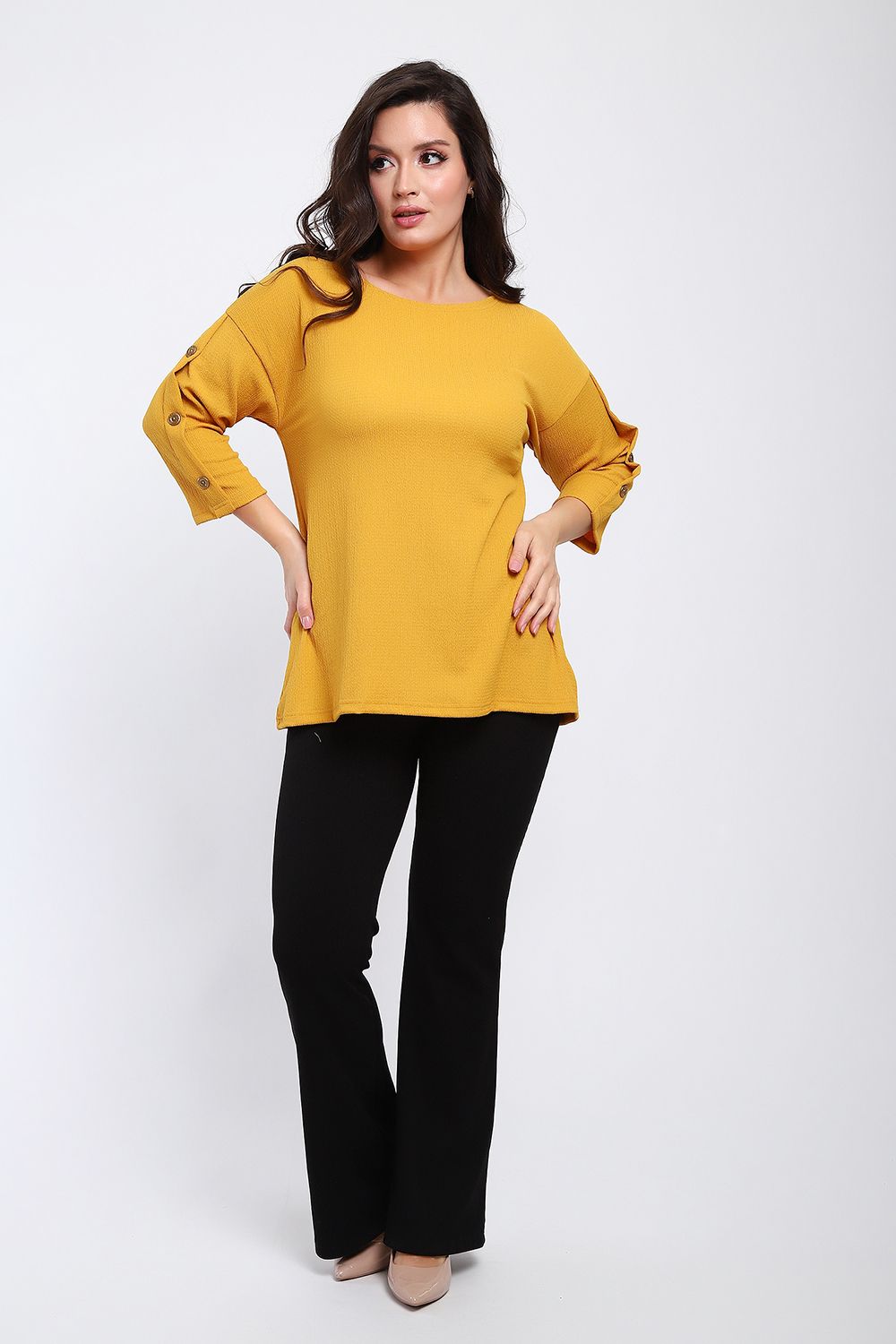 Футболка женская свободного прилегания с рукавами 3/4, украшенная пуговицами на рукавах.