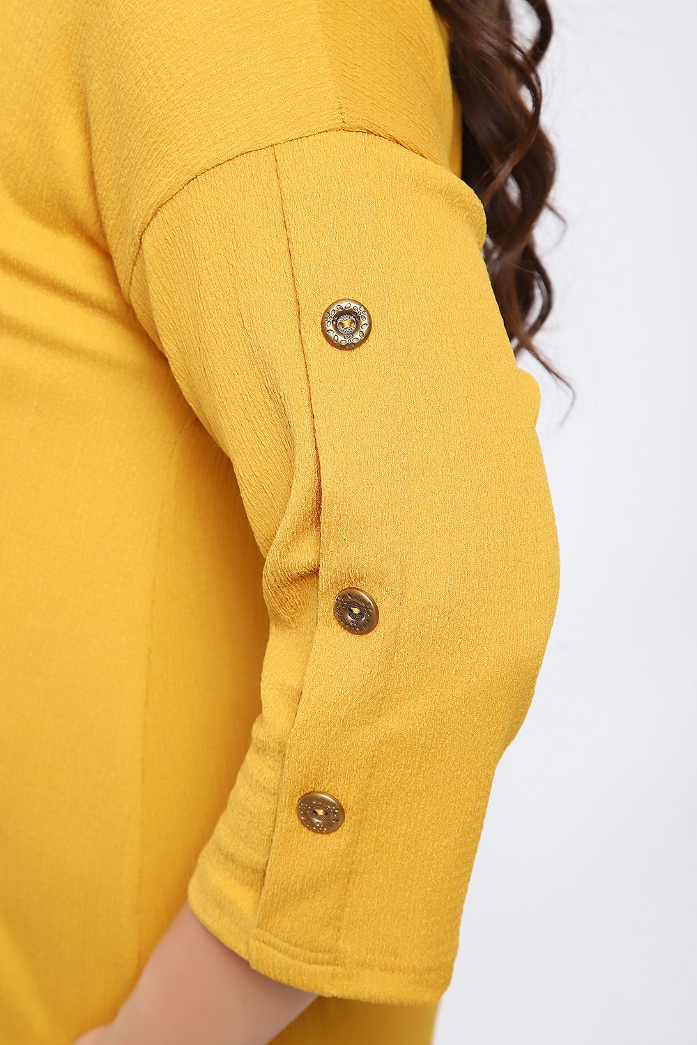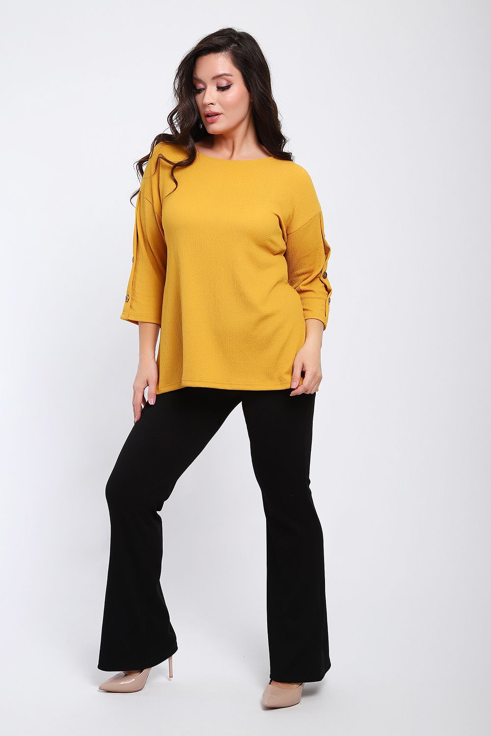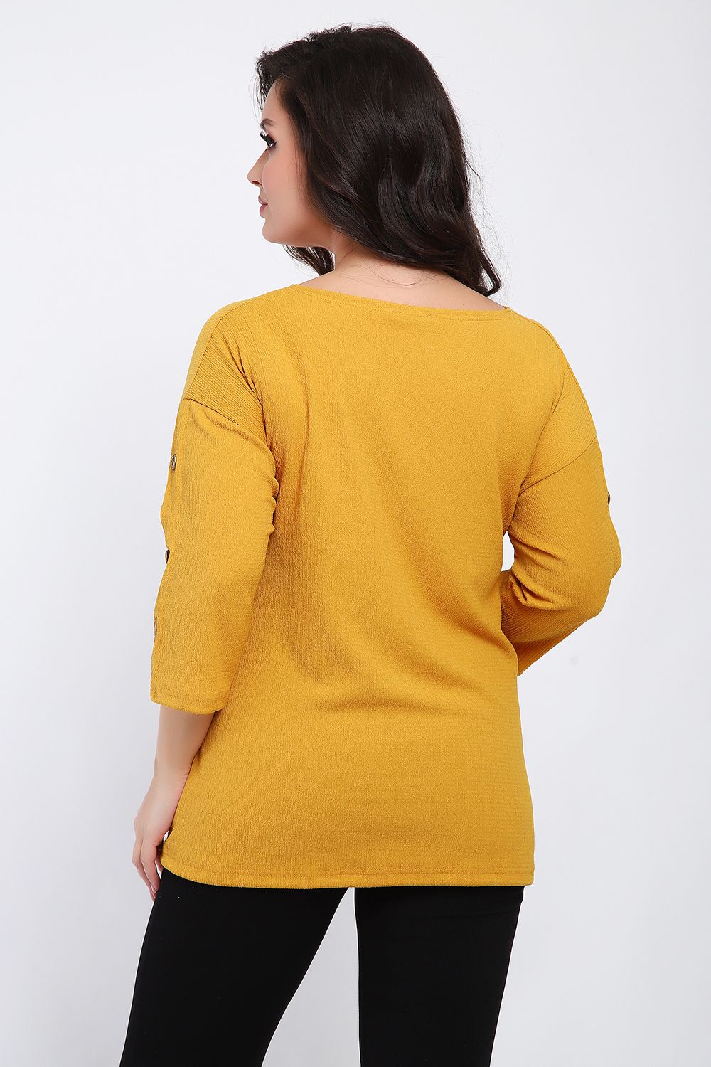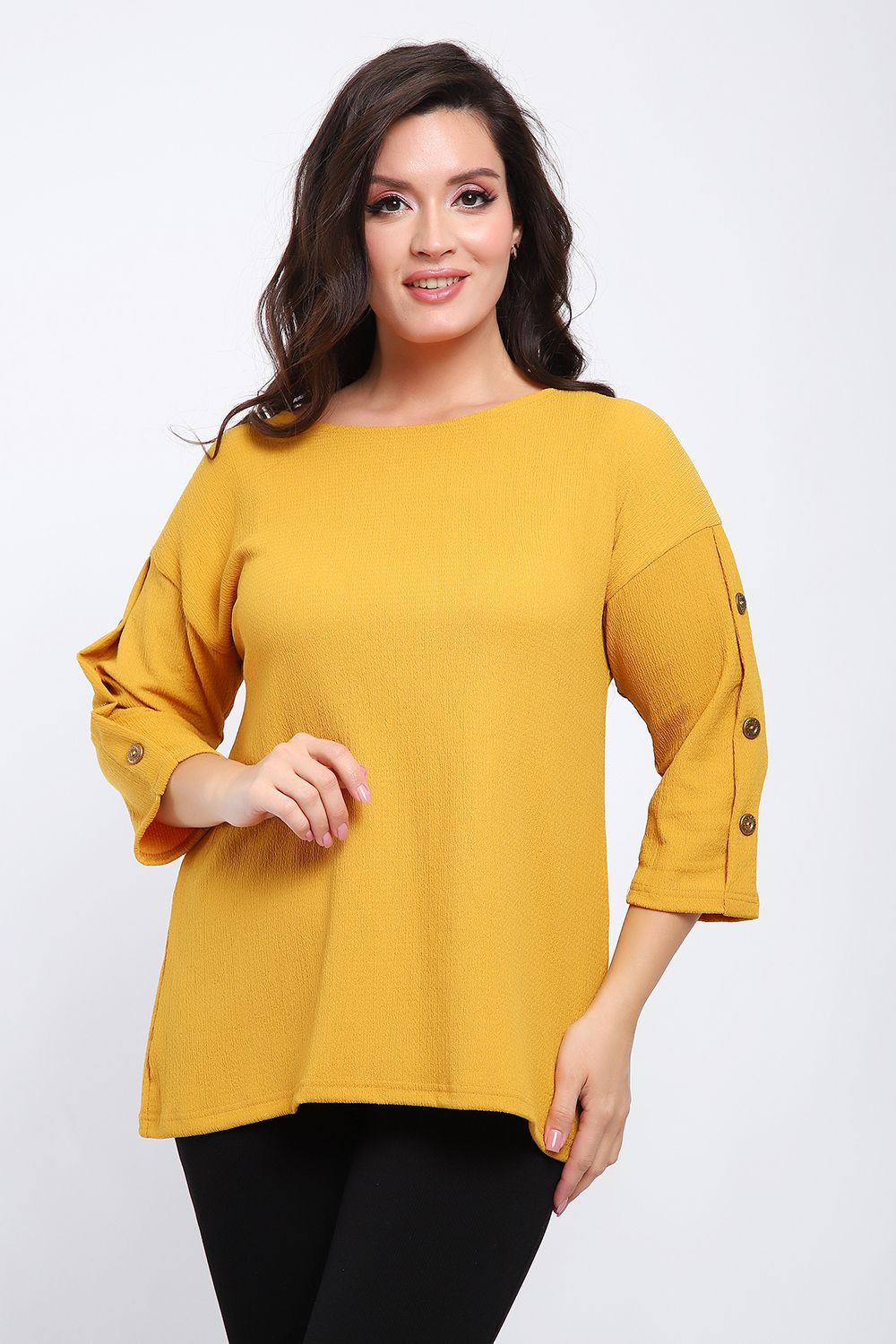Футболка женская свободного прилегания с рукавами 3/4, украшенная пуговицами на рукавах.