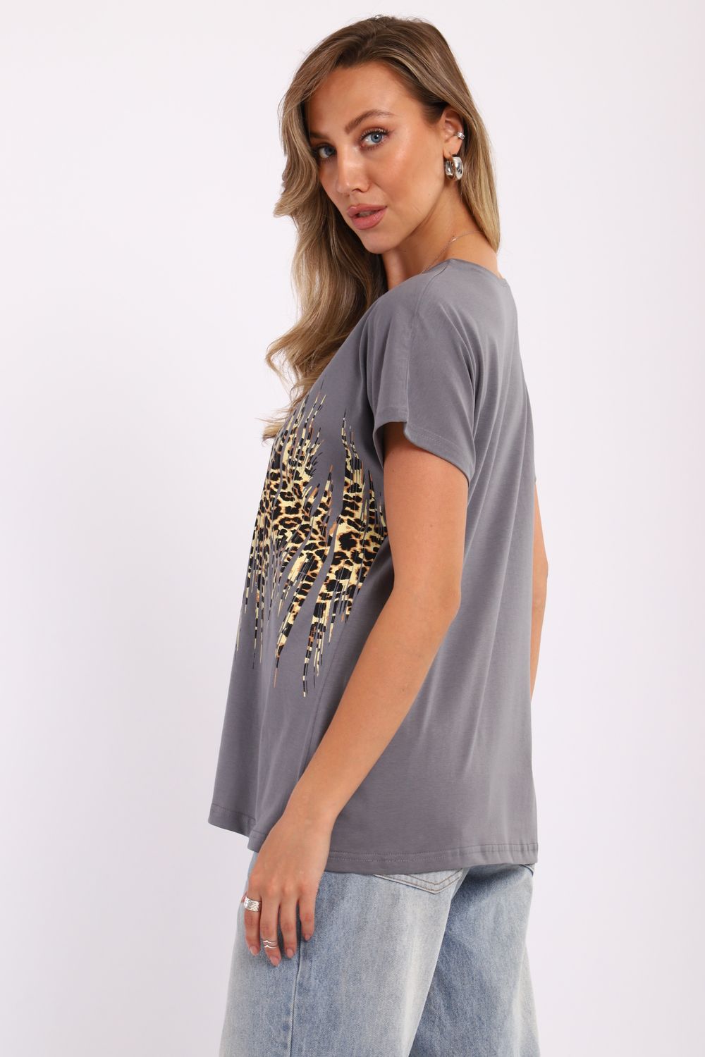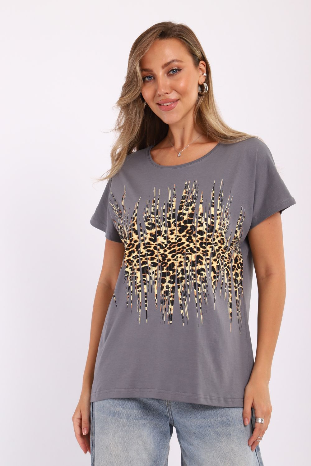 Представляем стильную и комфортную футболку, идеально подходящую для домашнего ношения или летних выходов. Изготовленная из высококачественного хлопка, эта нарядная модель обеспечивает невероятное ощущение комфорта и свободы движений. Футболка выполнена в нежных оттенках, что придает ей свежесть и гармонию. Удлиненная конструкция подчеркивает силуэт, создавая стильный образ. Дизайн дополнен ярким принтом, который включает цветочные элементы и графические акценты. Это придает изделию оригинальность и делает его отличным выбором для модных образов. Свободный крой позволяет сочетать эту модель с различными вещами: от джинсов до легких шорт. Короткие рукава обеспечивают дополнительную вентиляцию, что делает ее идеальной для жарких летних дней. Текстура материала приятна на ощупь и обеспечивает комфорт в носке на протяжении всего дня. Это изделие отличается высоким качеством пошива, что гарантирует долговечность и устойчивость к износу. Премиум материал сохраняет свои свойства даже после множества стирок, оставаясь ярким и привлекательным. Эта футболка — отличный выбор как для повседневной носки, так и для создания более нарядных образов с минимальными усилиями. Благодаря своим визуальным характеристикам она станет замечательным дополнением вашего гардероба и позволит вам выглядеть стильно в любой ситуации. Носите с удовольствием!